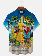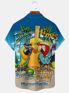 Alohadaddy Beach Vacation Blue Men's Hawaiian Shirts Parrot Stretch Wrinkle Free Seersucker Aloha Pocket Camp Shirts