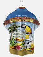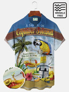 Alohadaddy Beach Vacation Blue Men's Hawaiian Shirts Parrot Stretch Wrinkle Free Seersucker Aloha Pocket Camp Shirts