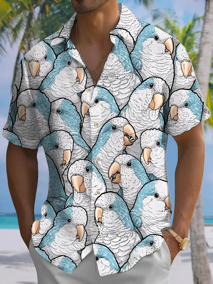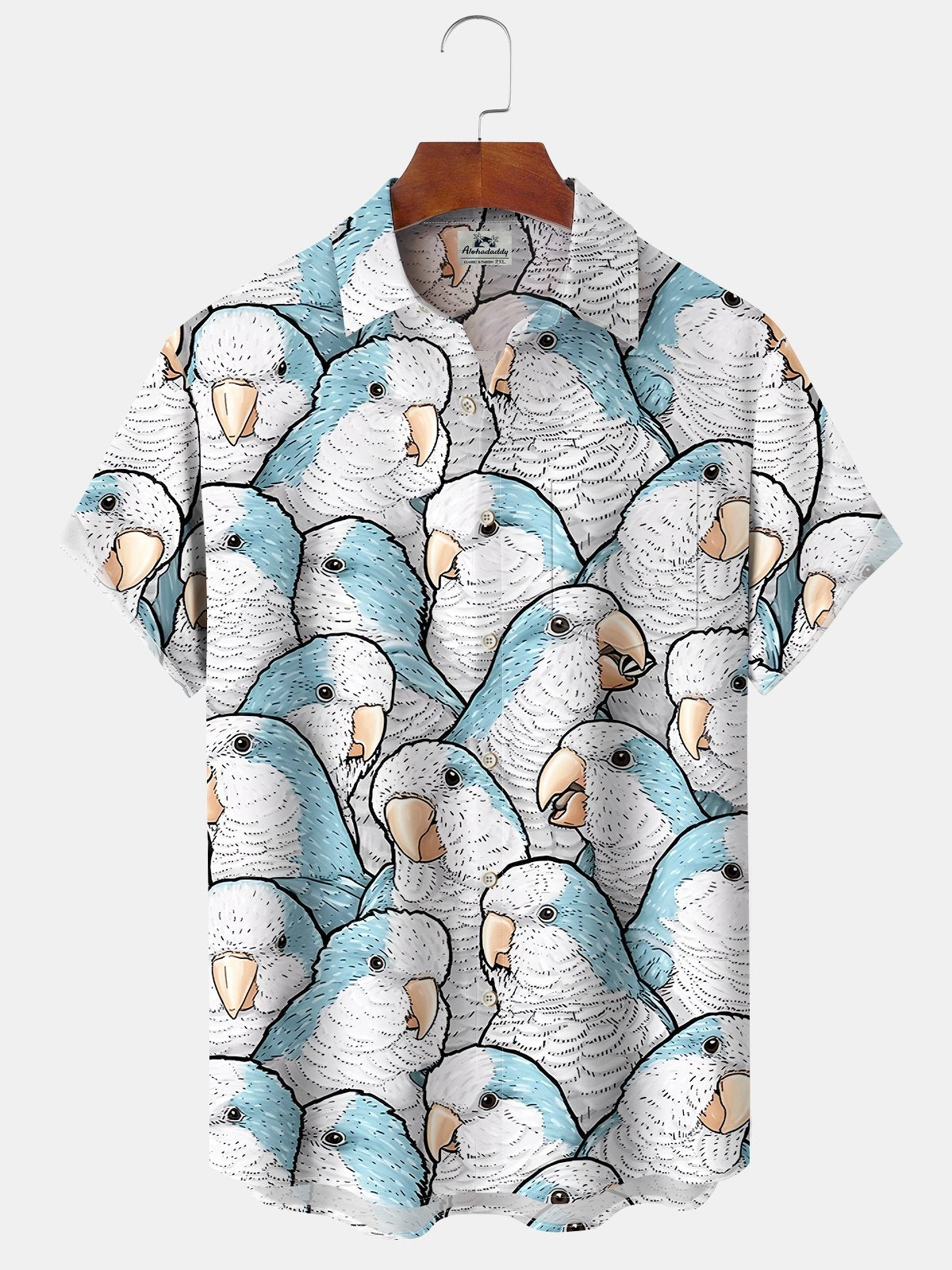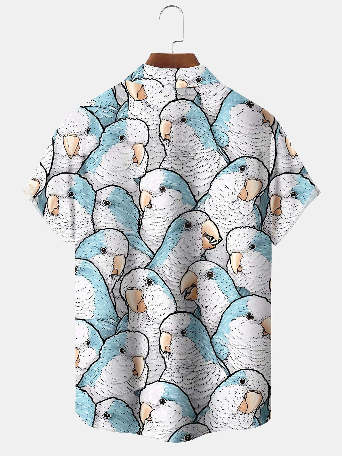 Alohadaddy Casual Collection Parrot Art Print Button Cardigan Pockets Large Size Long Short Sleeve Shirt