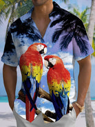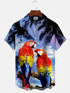 Alohadaddy Coconut Tree Parrot Beach Button Pocket Leisure Vacation Shirt