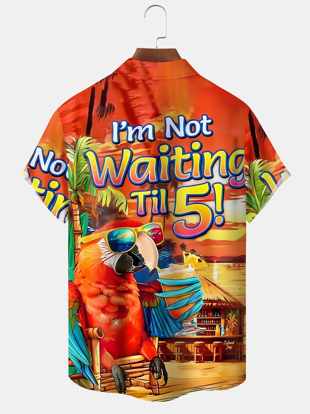 Alohadaddy Hawaiian Beach Parrot Not wait till 5 oclock Pocket Shirt