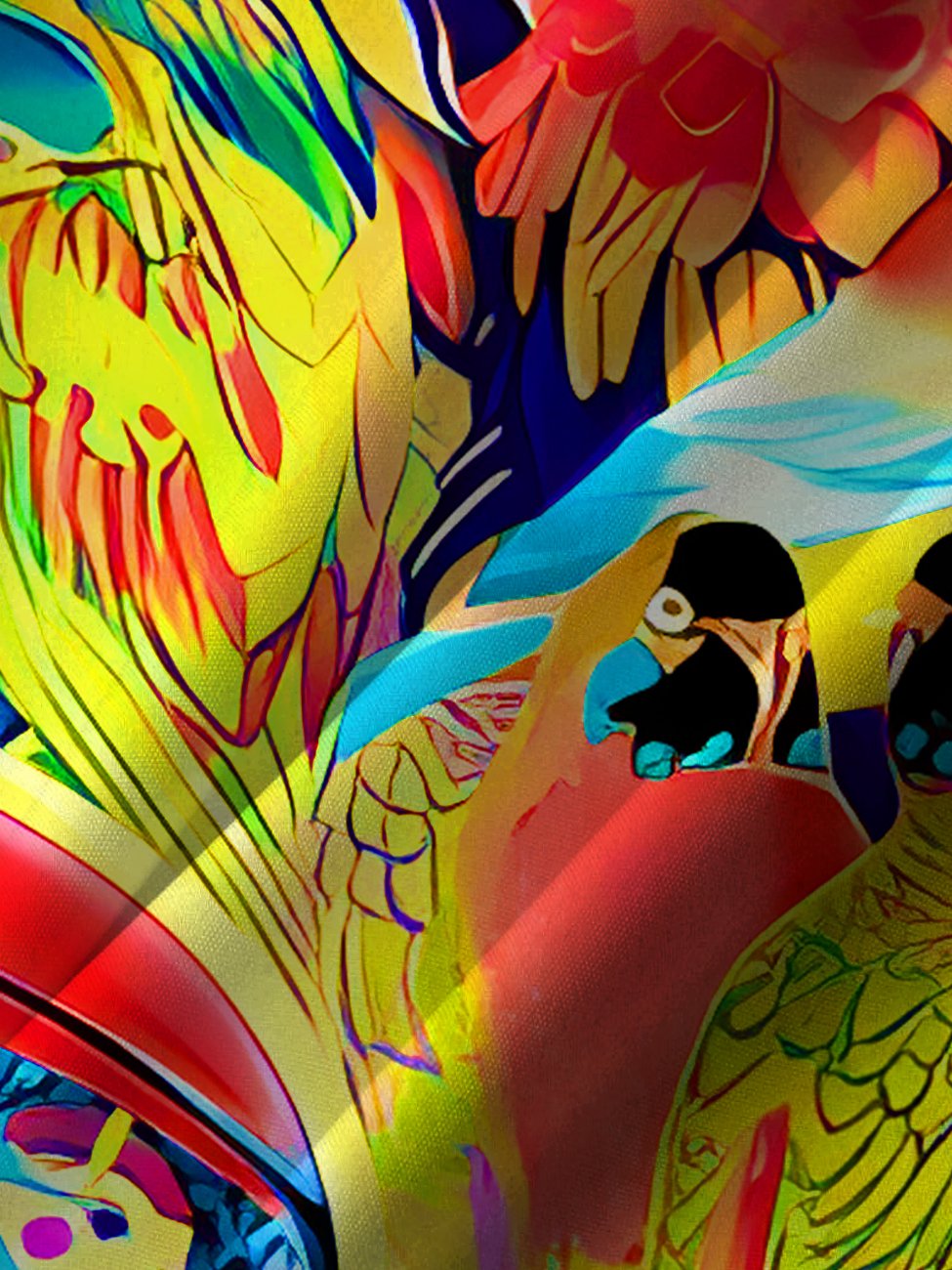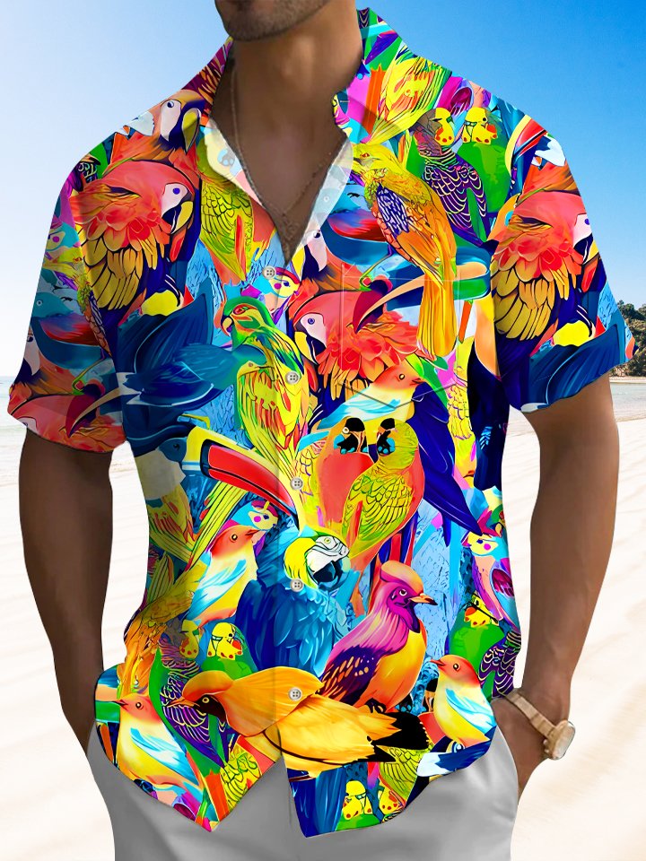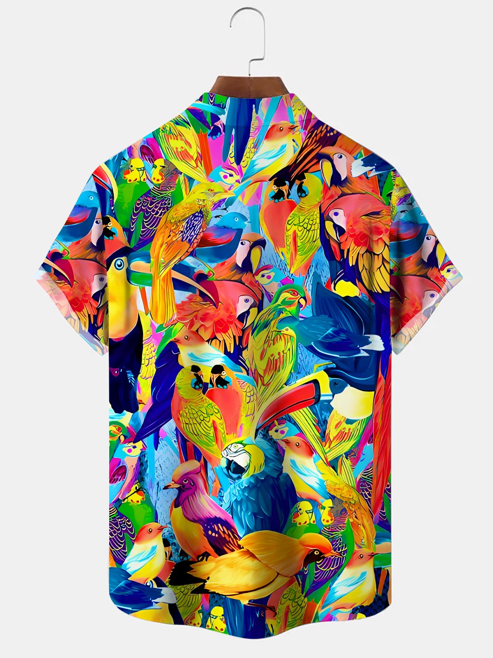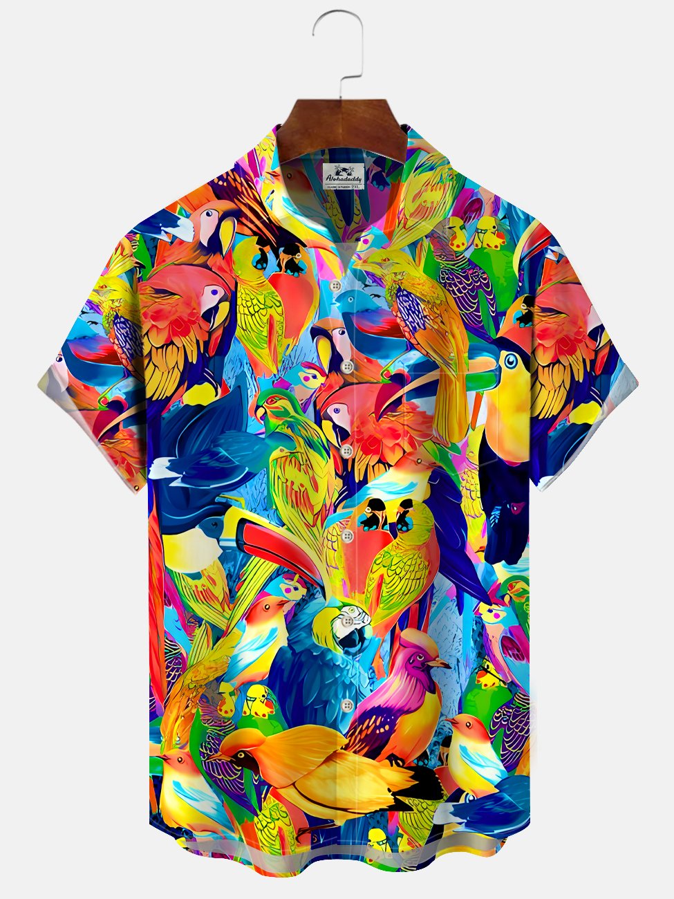 Alohadaddy Parrot Coconut Tree Button Pocket Casual Short Sleeve Stand Collar Shirt