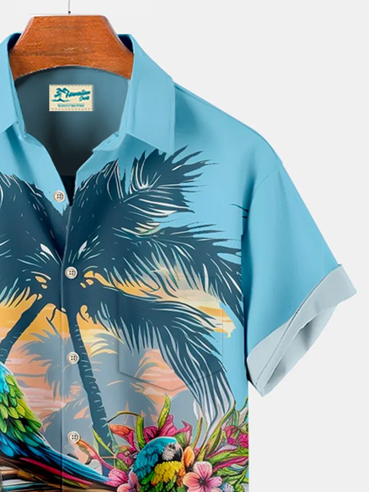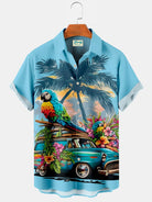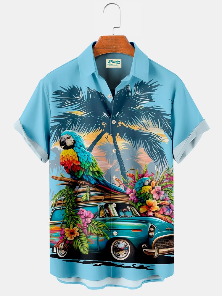 Alohadaddy Pocket Parrot Car Coconut Tree Print Beach Men's Hawaiian Big&Tall Shirt