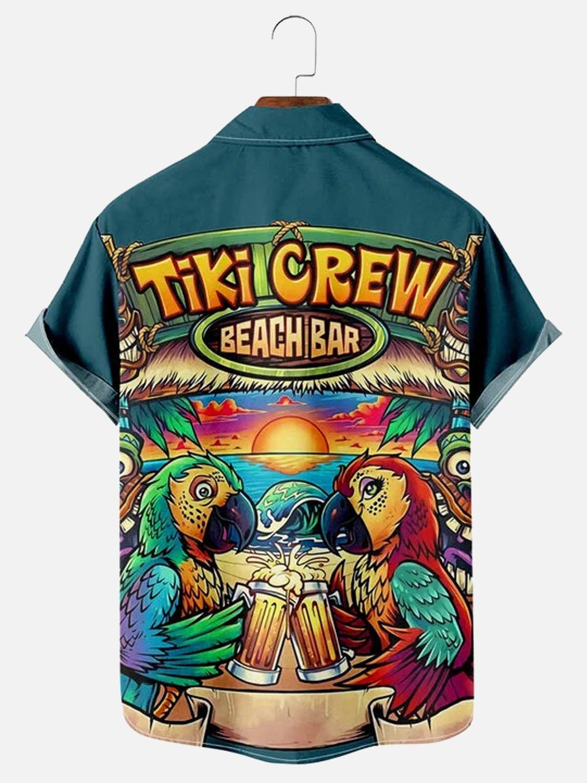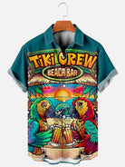 Men's Parrot Tiki Bar Print Loose Short Sleeve Hawaiian Shirt