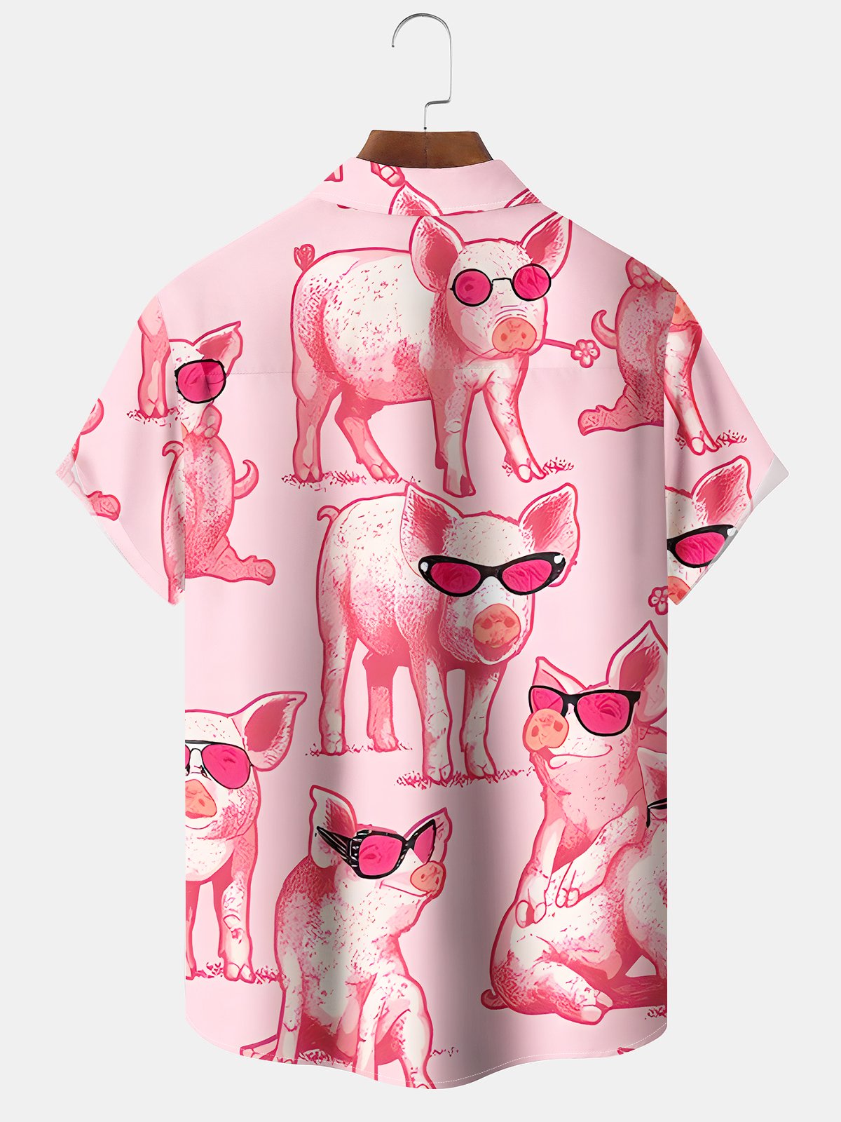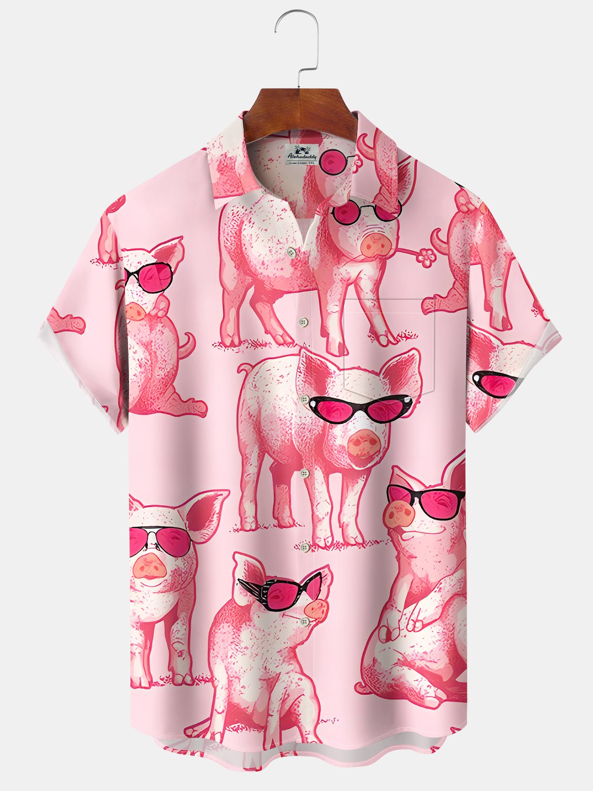 Alohadaddy® Vintage Pig Art Print Moisture Wicking Stretch Men's Shirt Big & Tall
