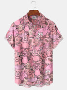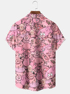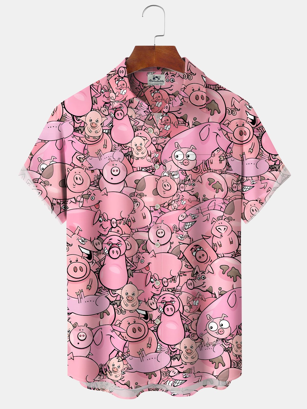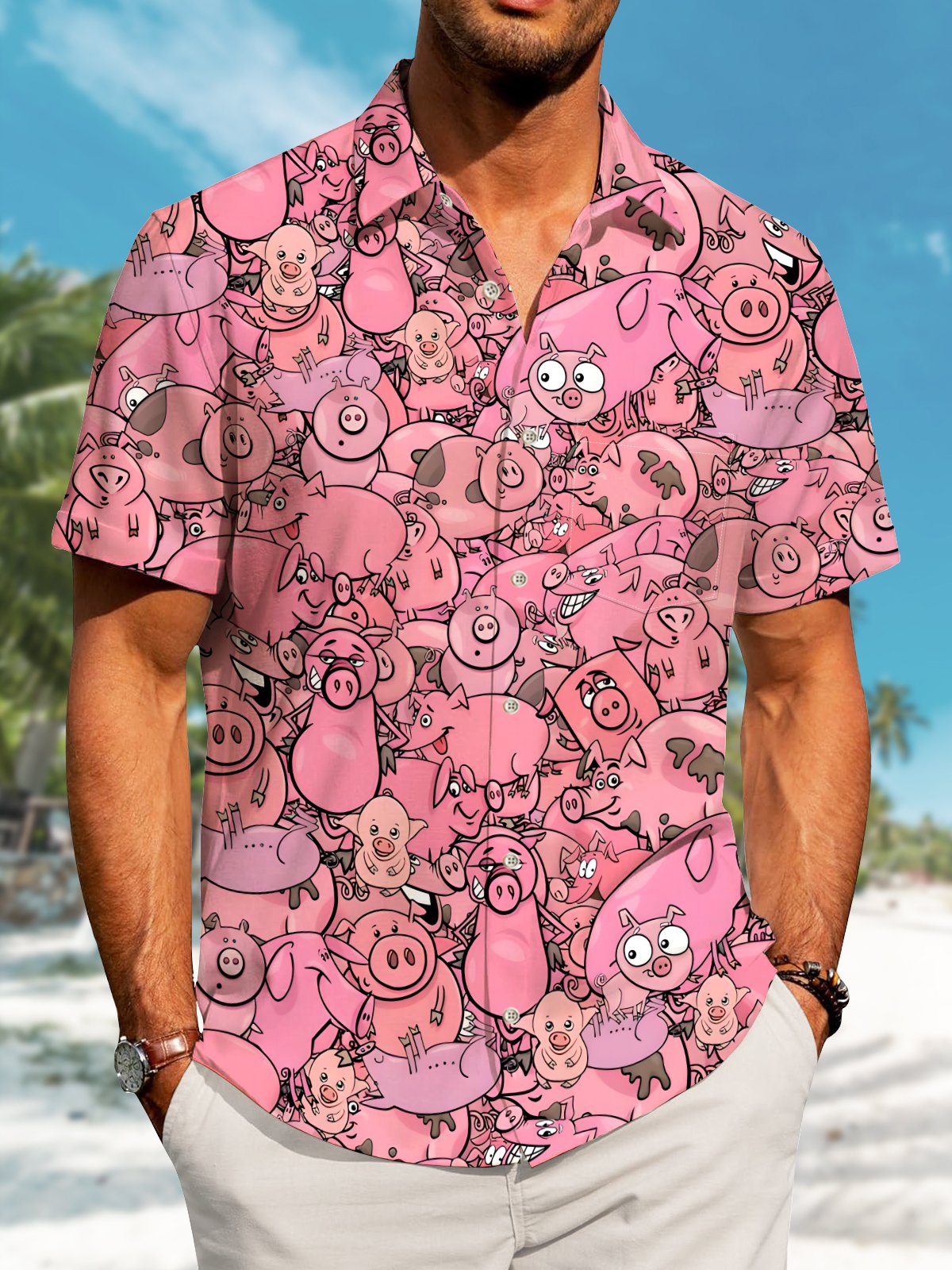 Alohadaddy Hawaiian Casual Cartoon Piggy Palm Tree Print Art Button Cardigan Pocket Stretch Large Size Long Short Sleeve Shirt