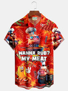 Alohadaddy I Rub My Meat Before I Stick It in BBQ Pig Print Beach Men's Hawaiian Oversized Shirt with Pockets