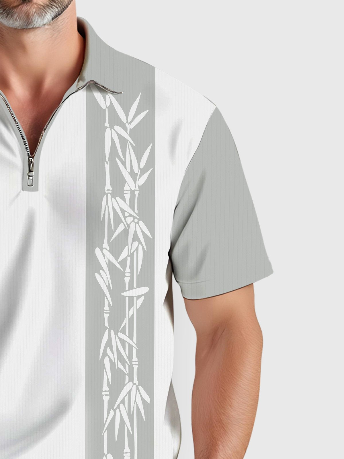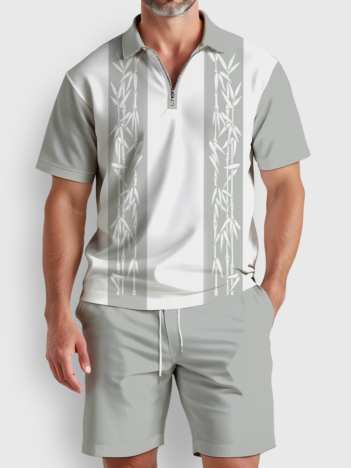 Alohadaddy® Casual Bamboo Art Print Zipper Big & Tall Men's Short Sleeve Polo Shirt Set