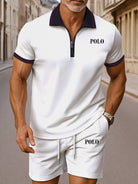 Alohadaddy® Casual Contrast Stripe Print Men's Shorts Short Sleeves Polo Shirt Set Big & Tall