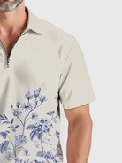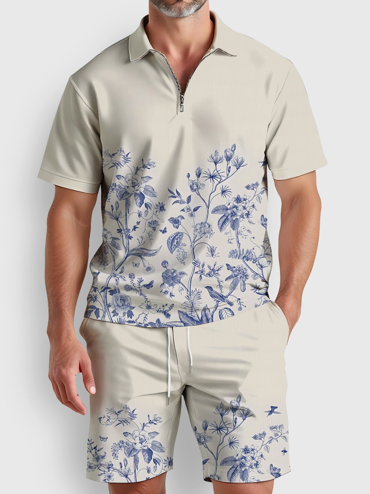 Alohadaddy® Casual Floral Gradient Print Art Zipper Big & Tall Men's Short Sleeve POLO Shirt Set