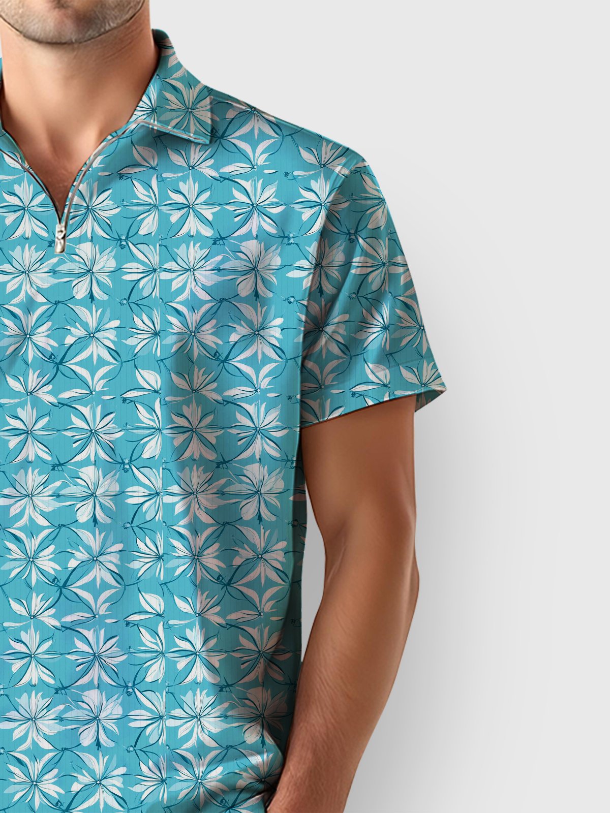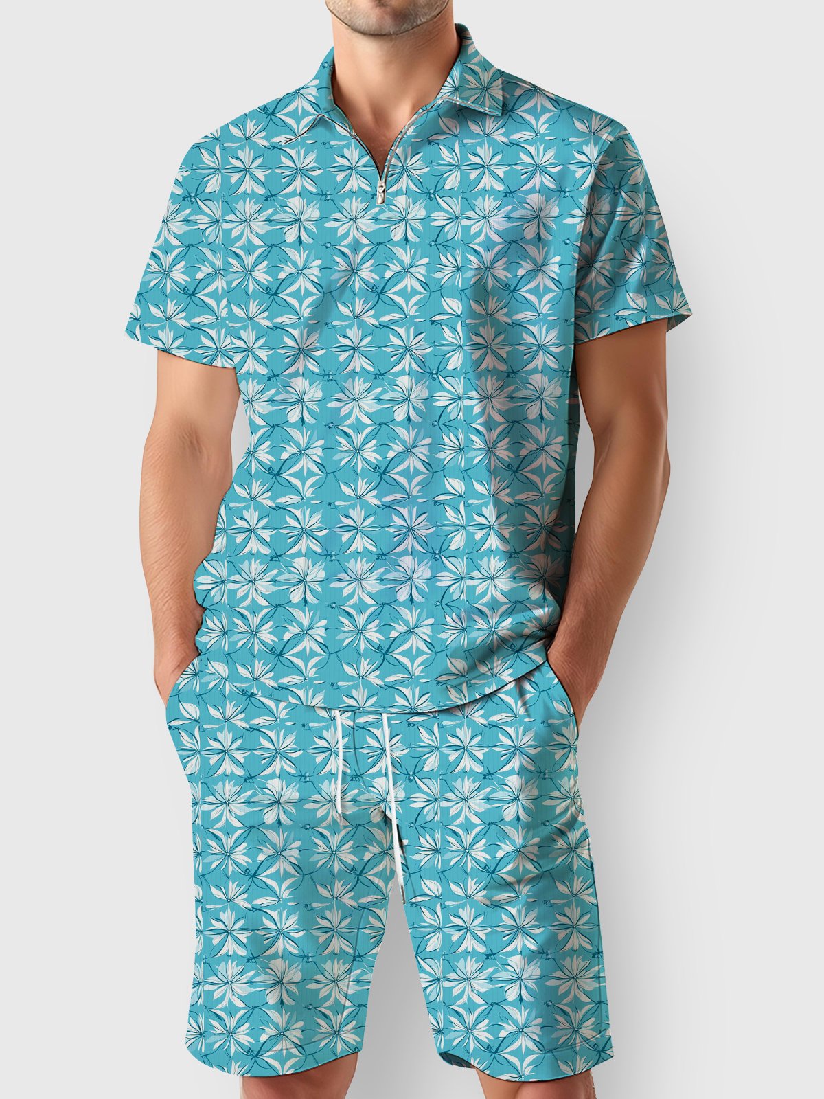 Alohadaddy® Casual Floral Printed Stretch Moisture Wicking Men's Short Sleeve Polo Shirt Set