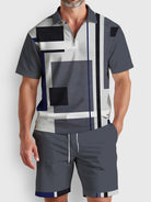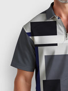 Alohadaddy® Casual Geometric Art Print Zipper Big & Tall Men's Short Sleeve POLO Shirt Set