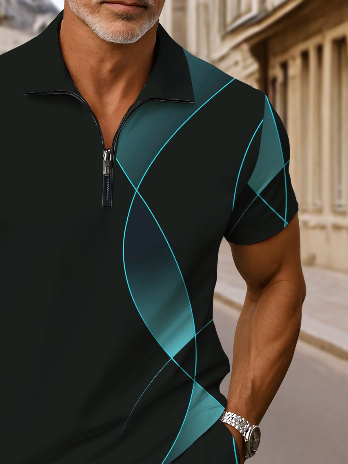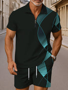 Alohadaddy® Casual Geometric Asymmetric Printed Stretch Oversized Men's Shorts Short Sleeves Polo Shirt Set