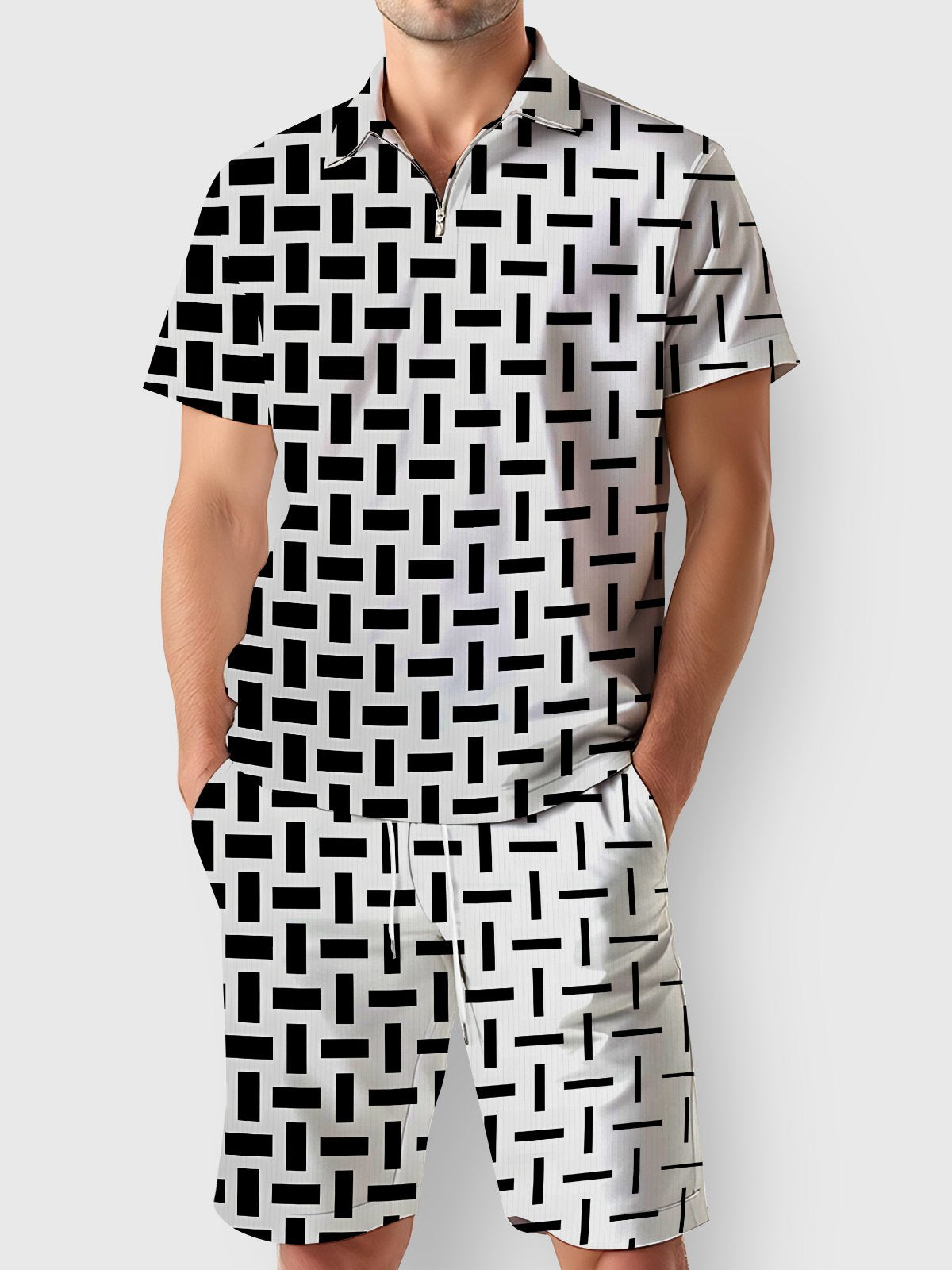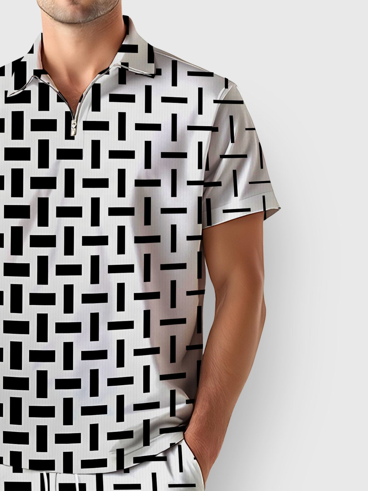 Alohadaddy® Casual Geometric Gradient Printed Stretch Moisture Wicking Men's Short Sleeve Polo Shirt Set