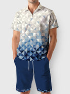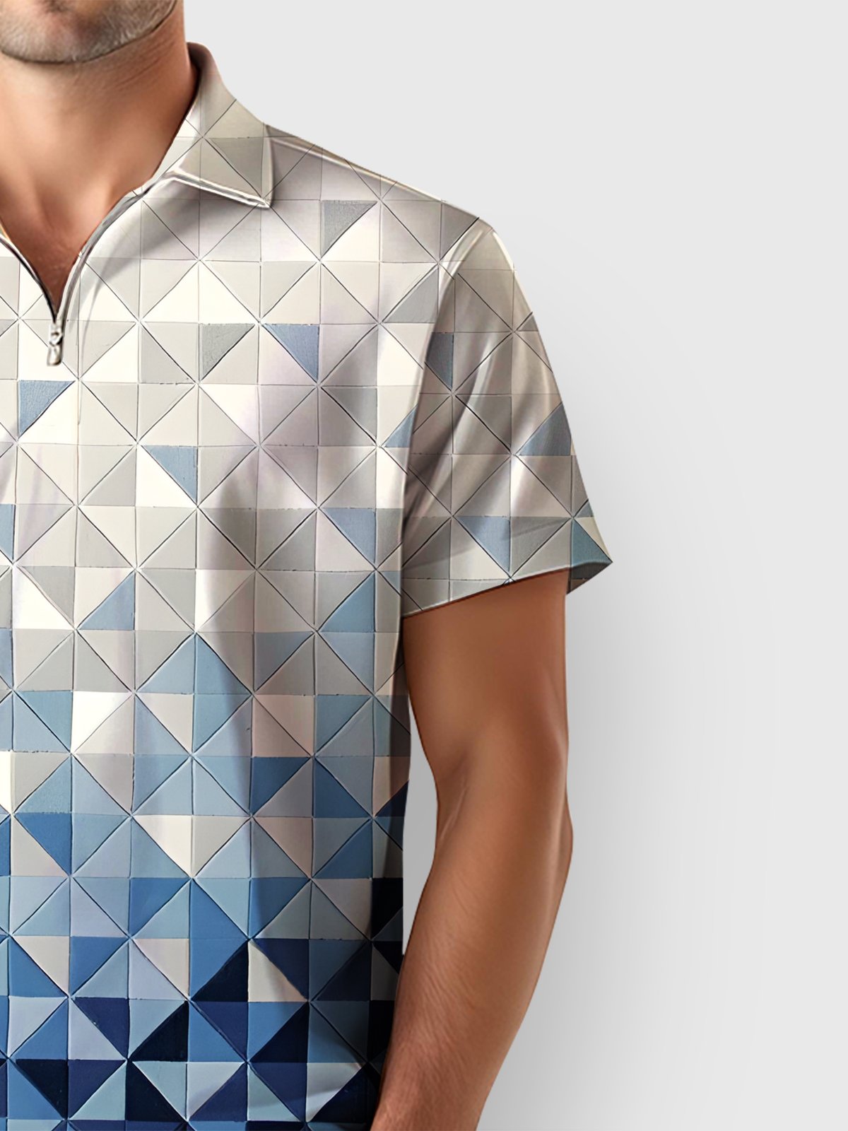 Alohadaddy® Retro Geometric Gradient Print Stretch Moisture Wicking Men's Short Sleeve Polo Shirt Set