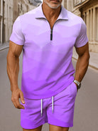 Casual Geometric Gradient Moisture Wicking Men's Shorts Short Sleeve Polo Shirt Set