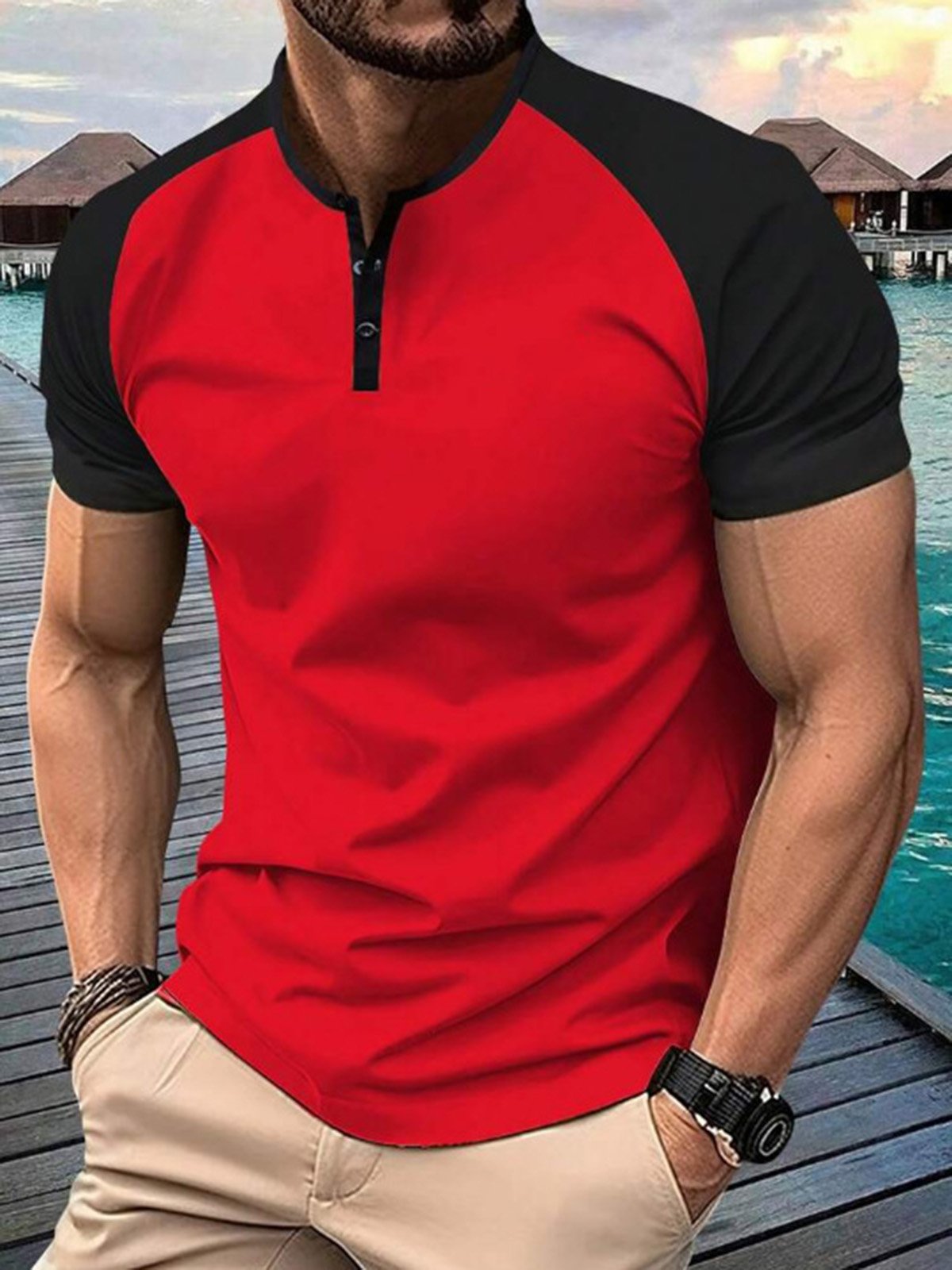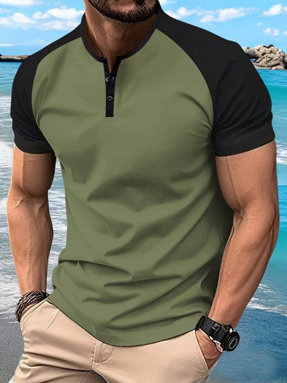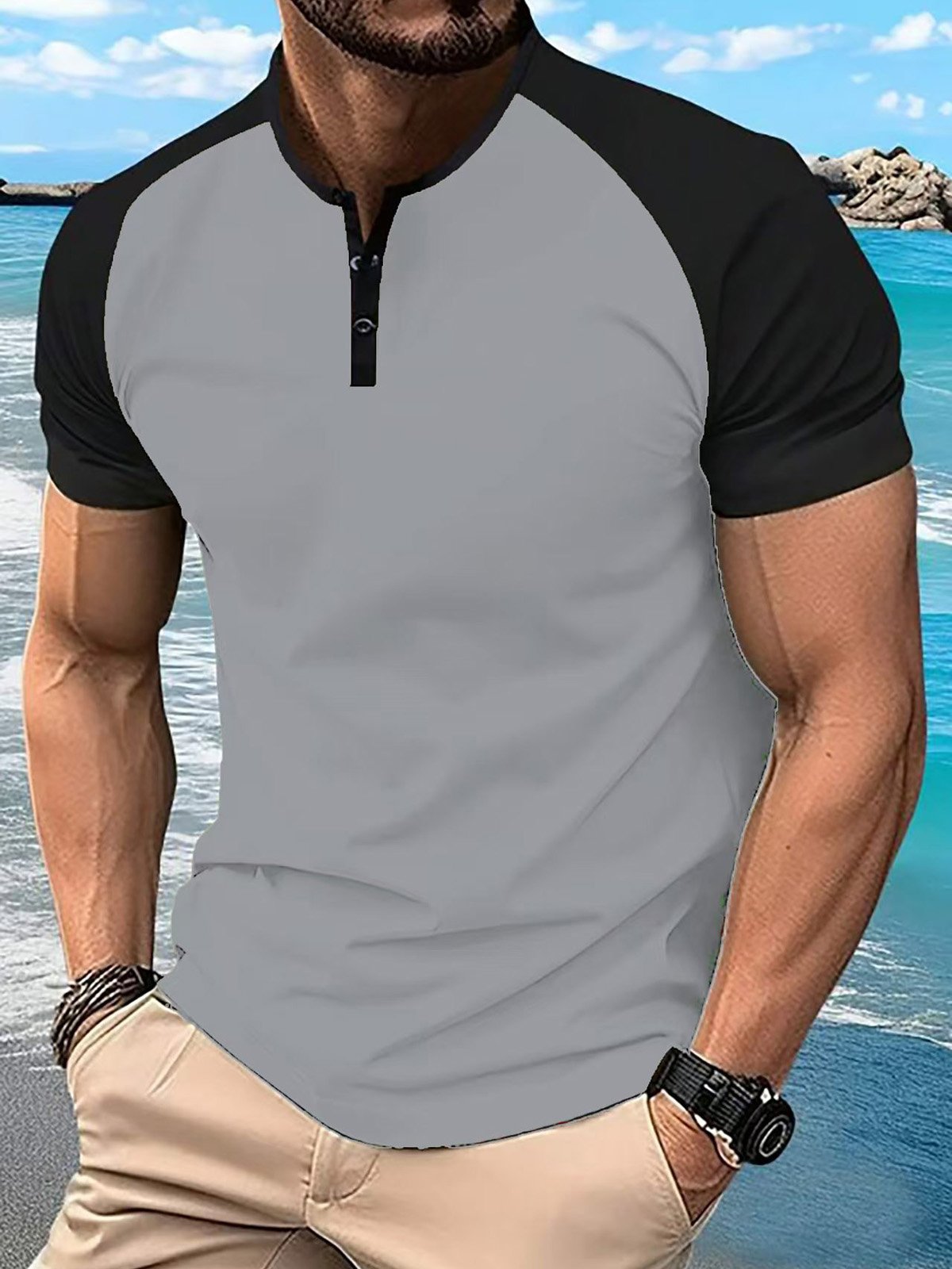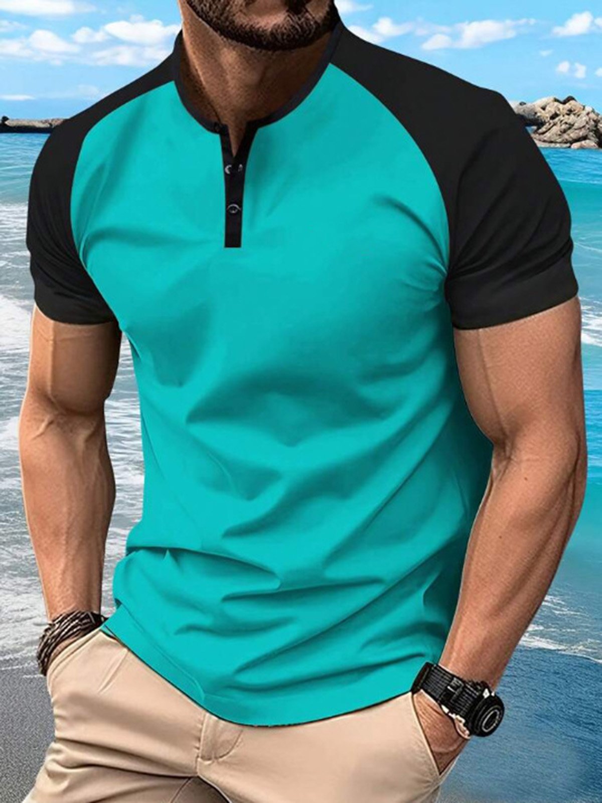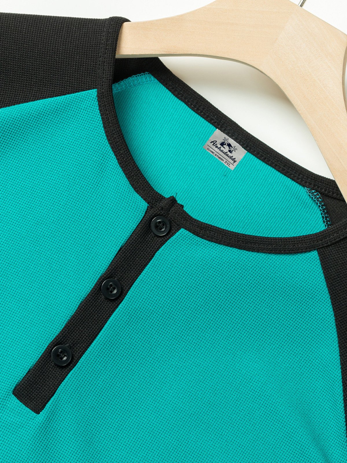 Alohadaddy® T-Shirt Men's Button Color Block Henley Collar Sport Polo Shirt