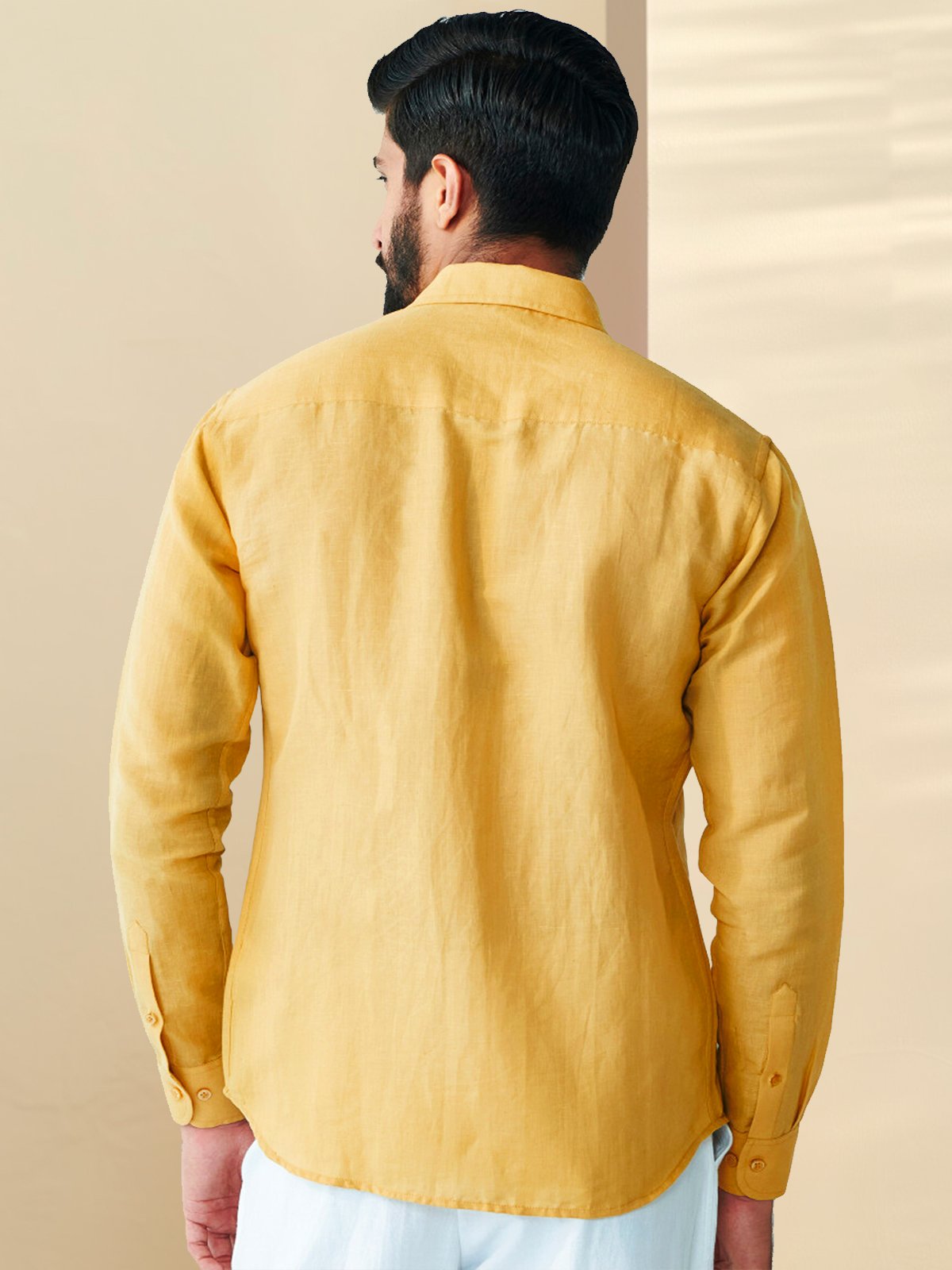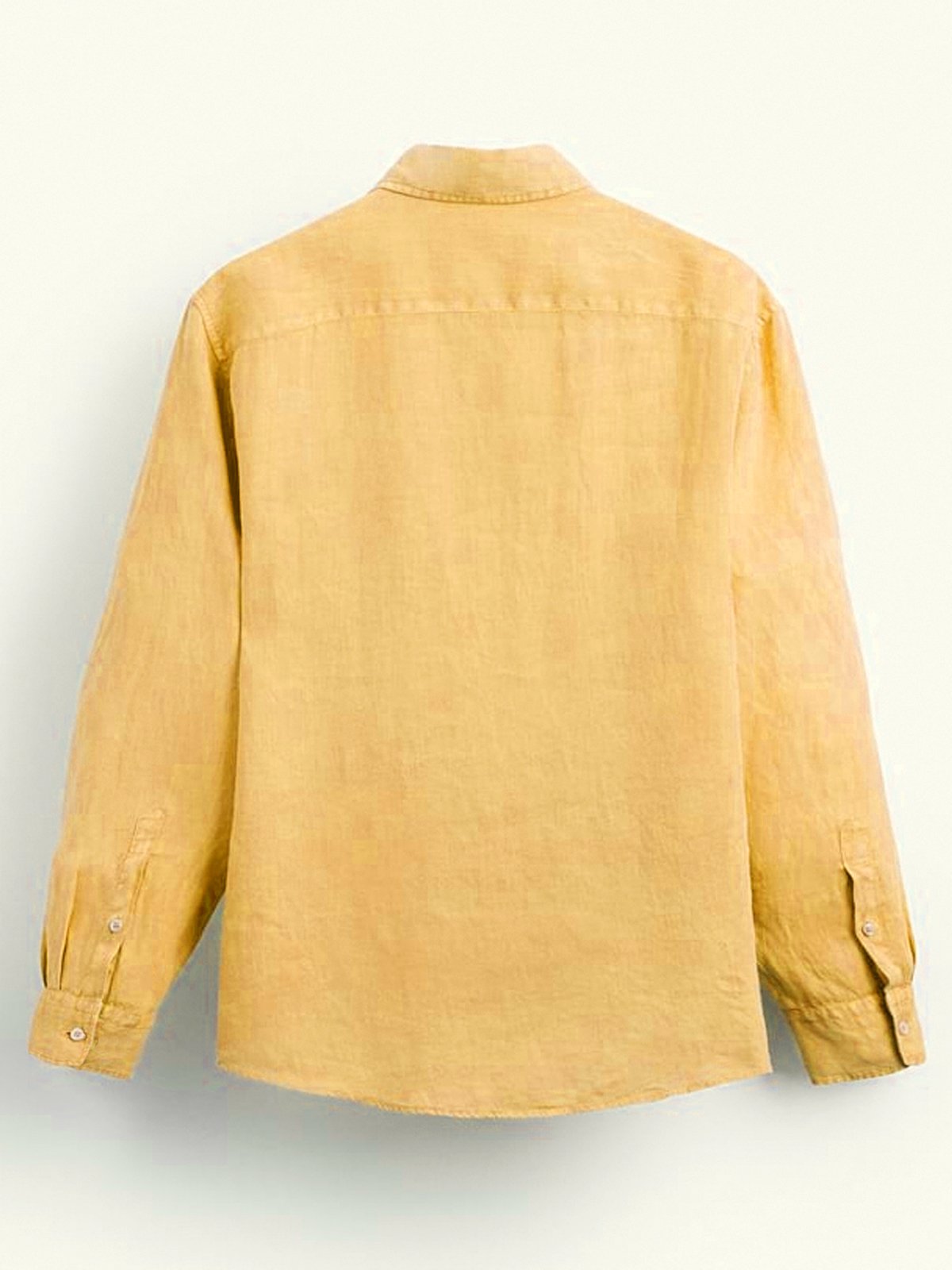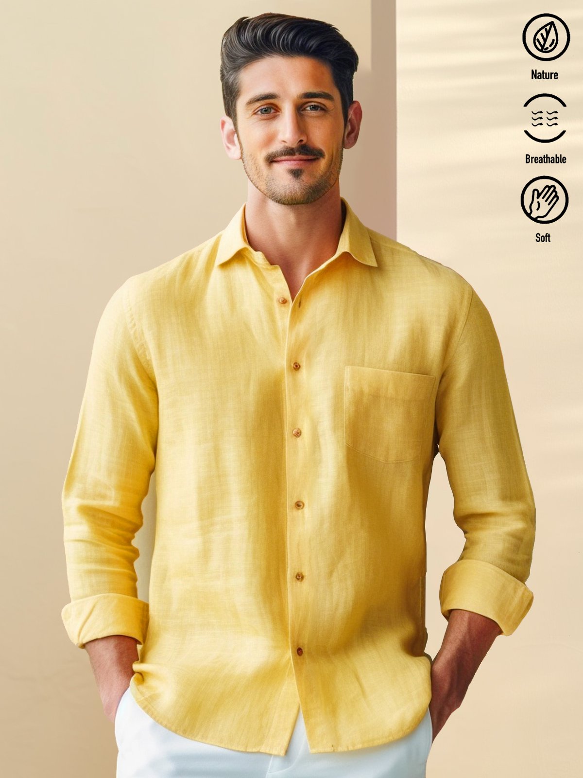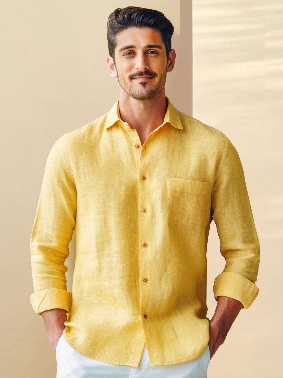 Alohadaddy Beach Vacation Yellow Men's Long Sleeve Shirts Vintage Textured Stretch Aloha Camp Pocket Basics Shirts
