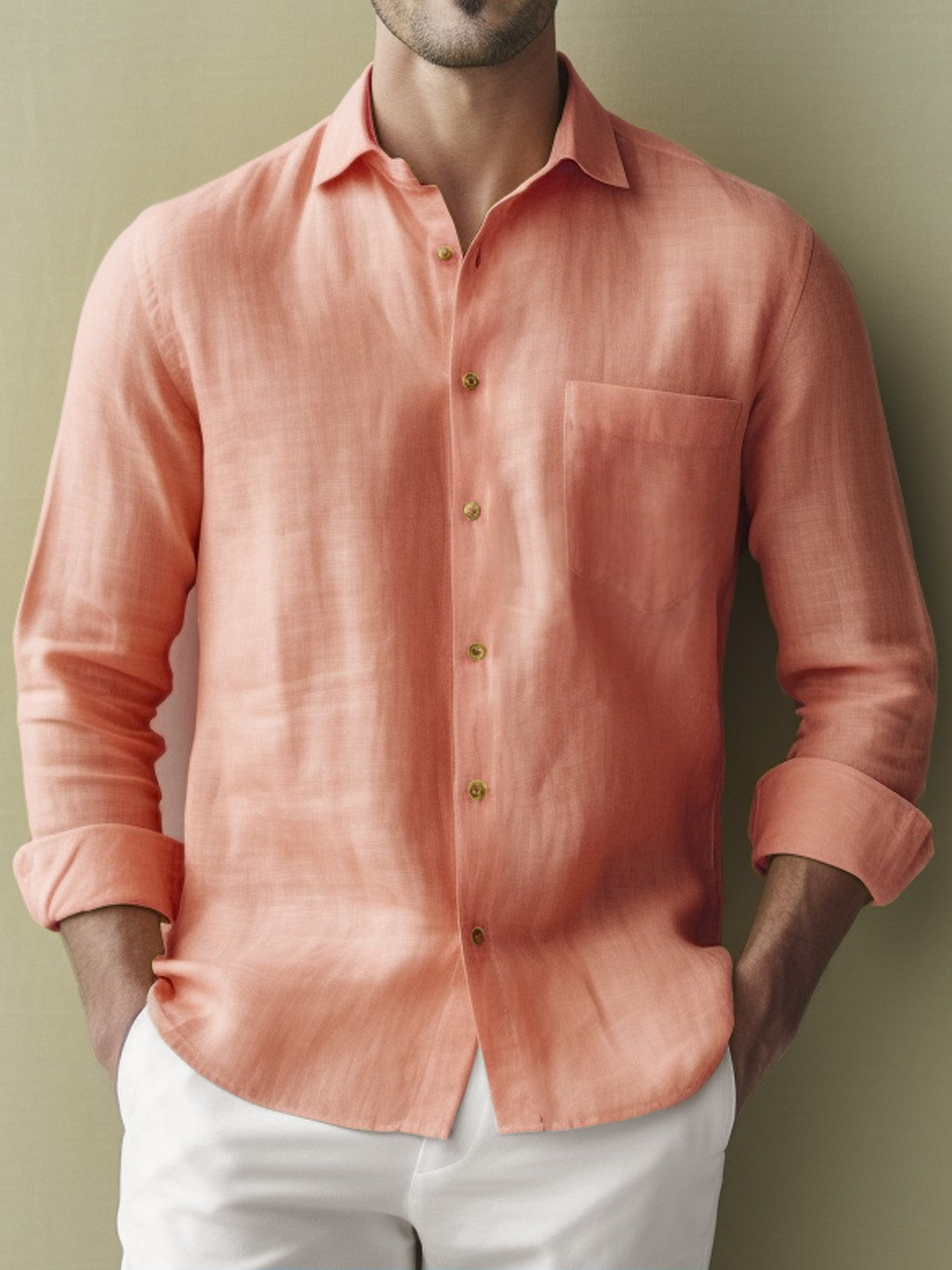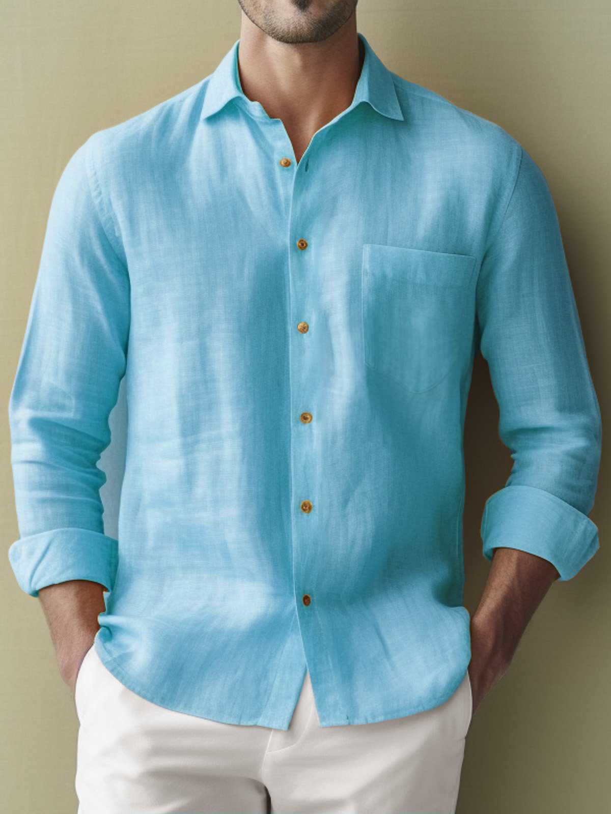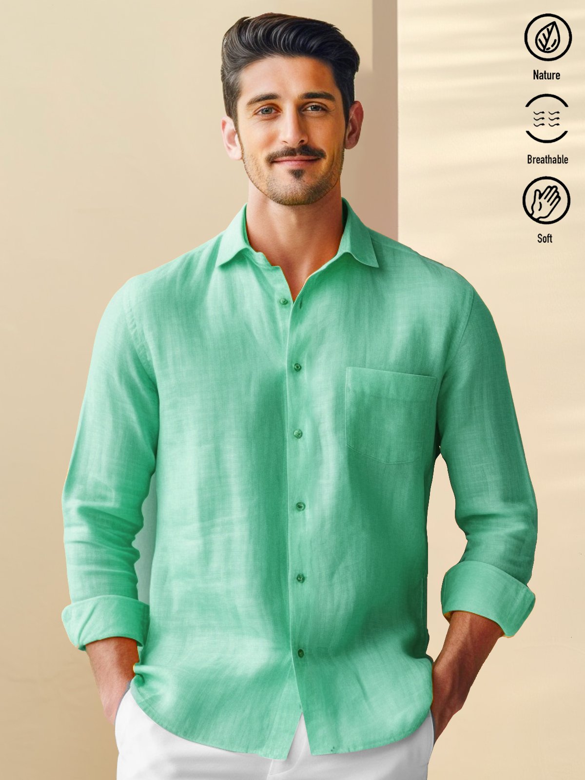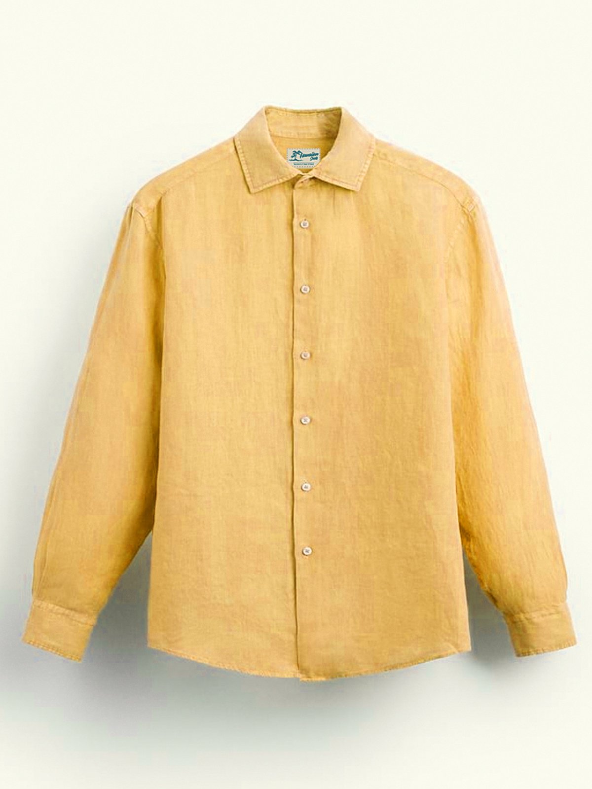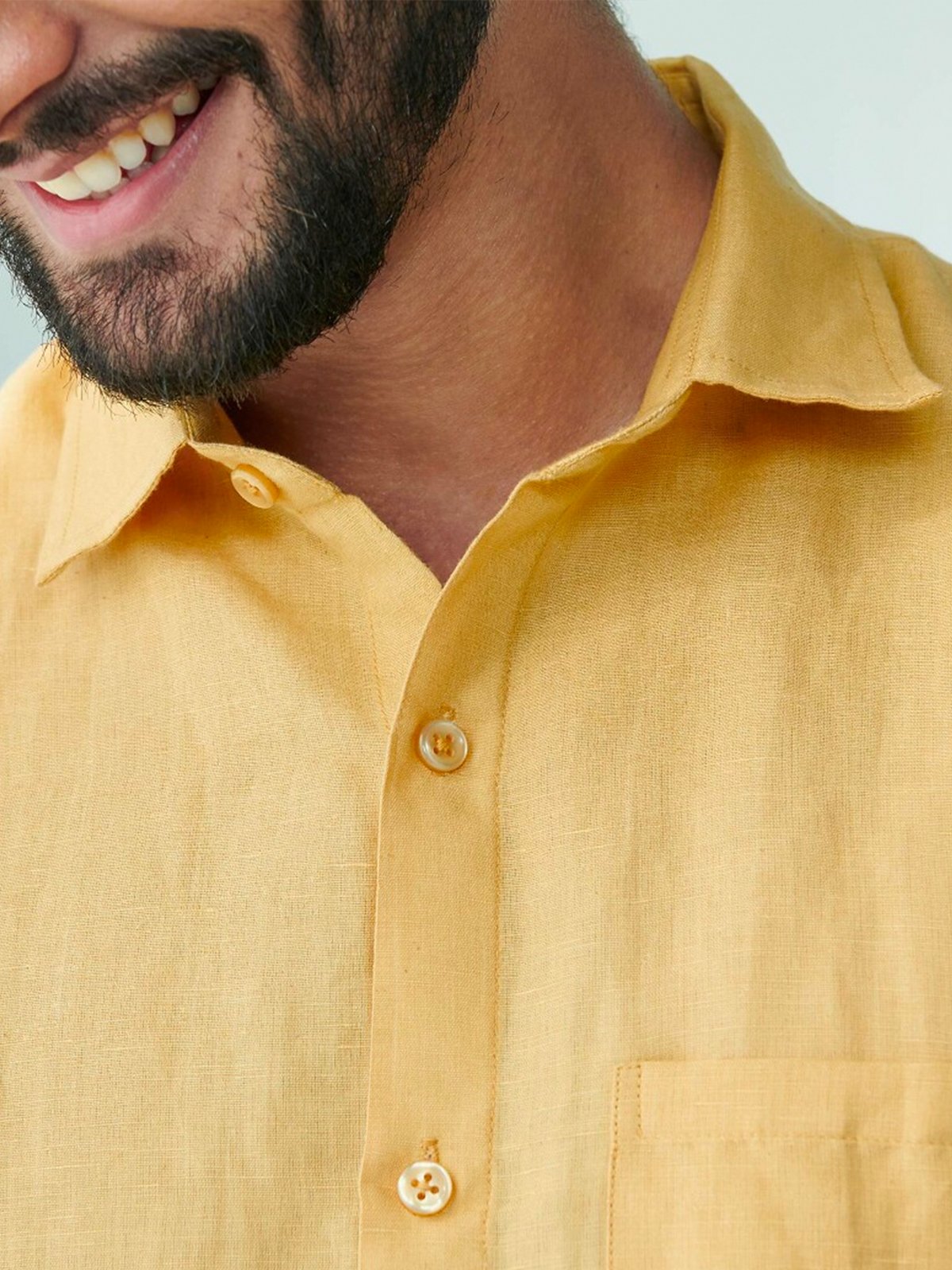 Alohadaddy Beach Vacation Yellow Men's Long Sleeve Shirts Vintage Textured Stretch Aloha Camp Pocket Basics Shirts