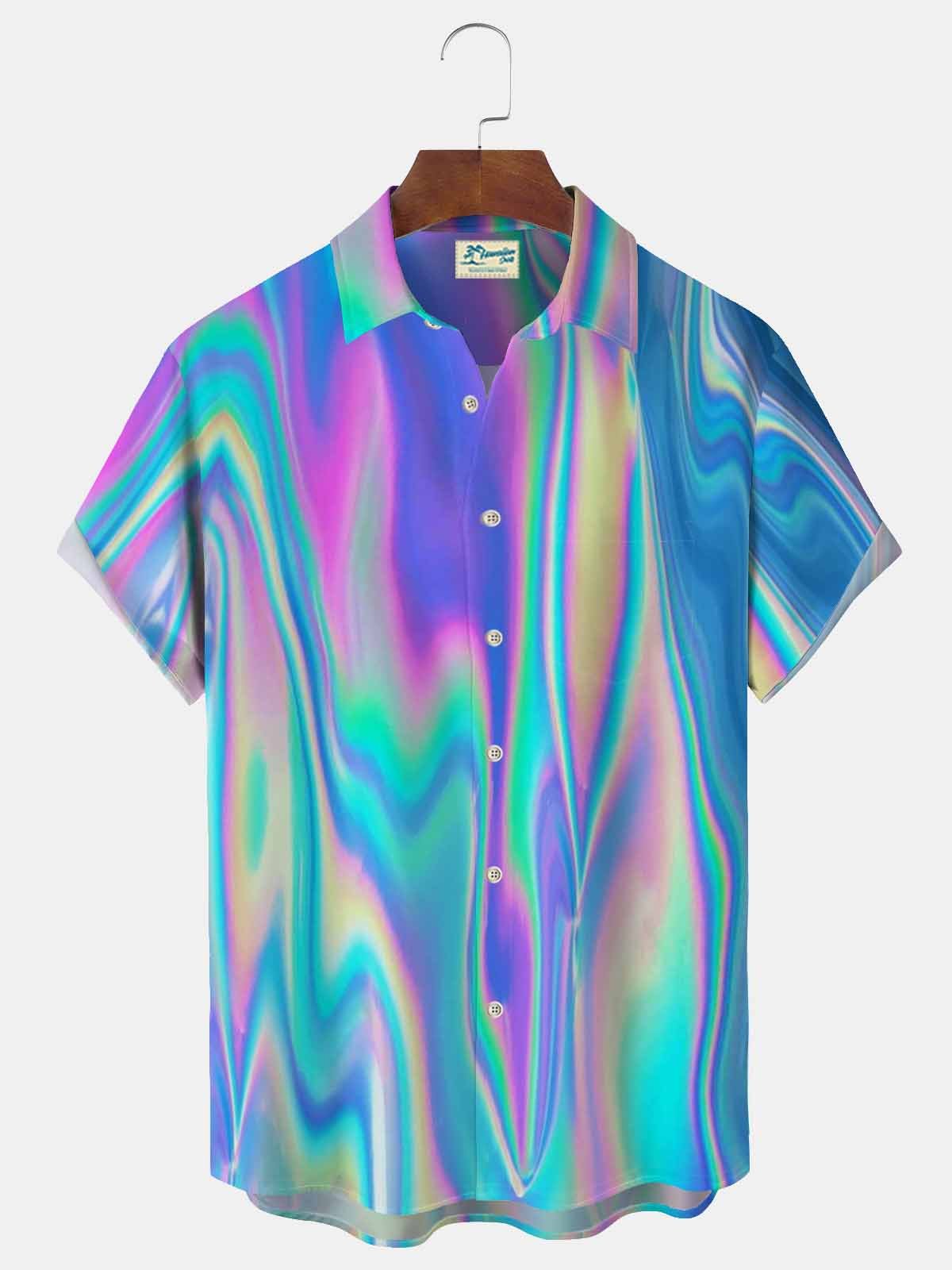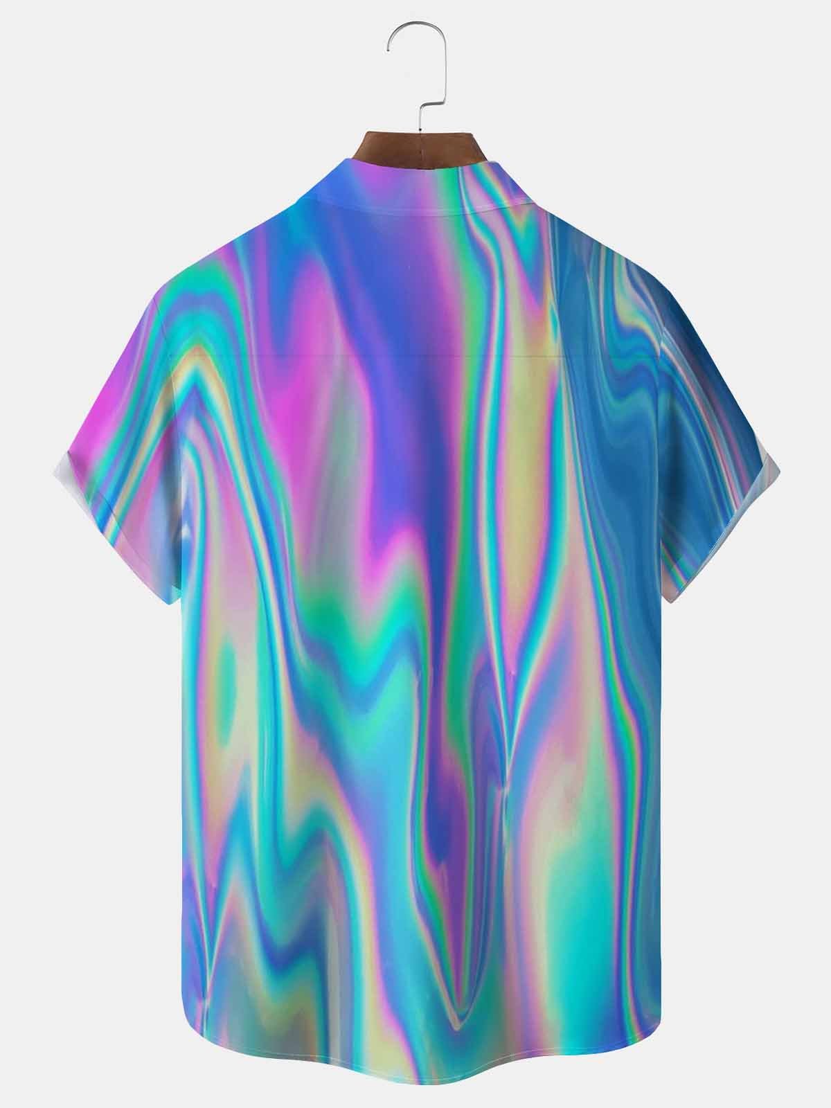 Alohadaddy Gradient Color Chest Pocket Short Sleeve Casual Shirt