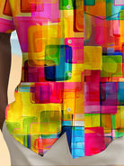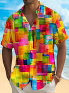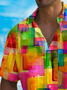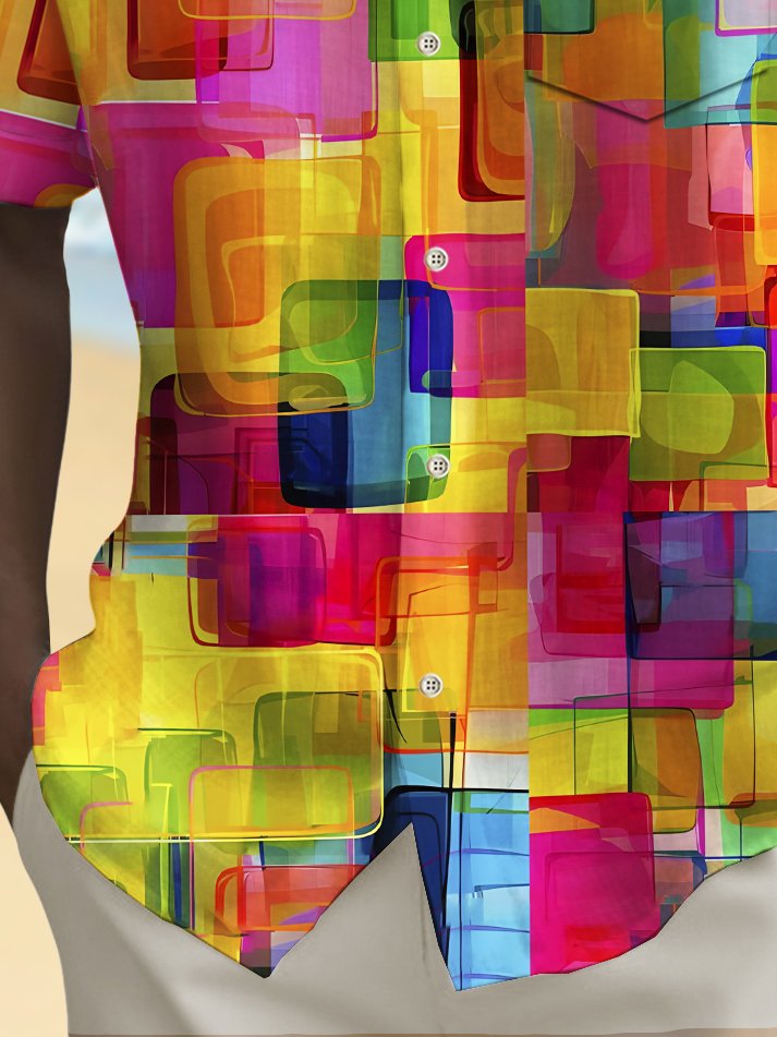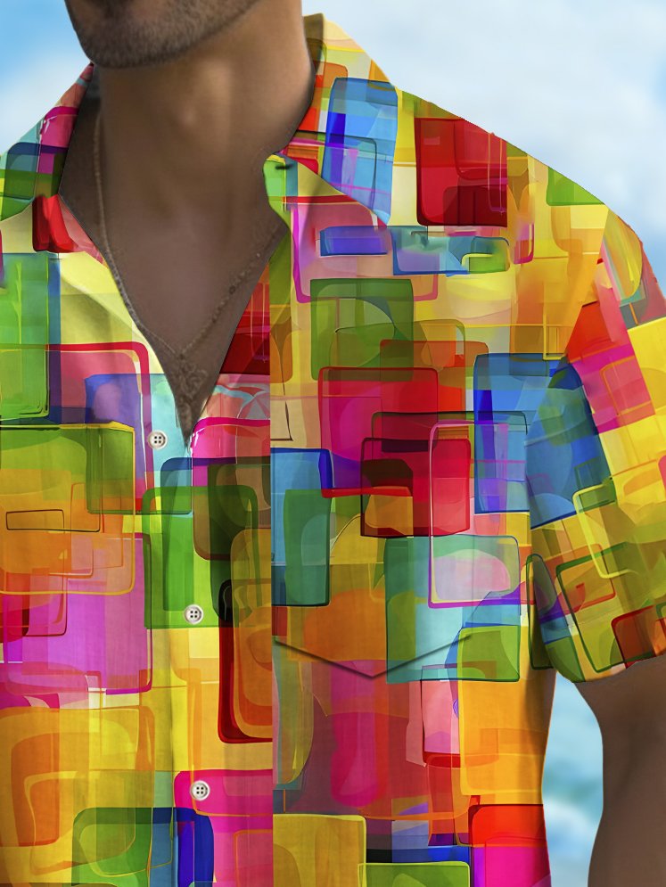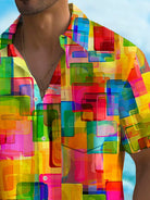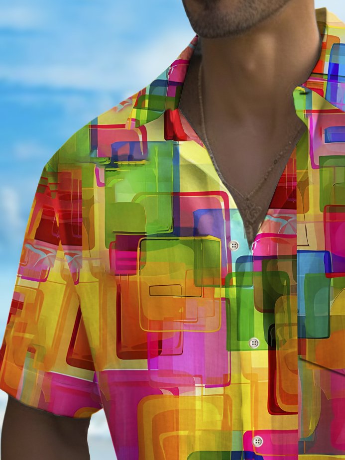 Alohadaddy Holiday Men's Pride Month Rainbow Color Geometric Print Casual Breathable Short Sleeve Shirt Big Tall