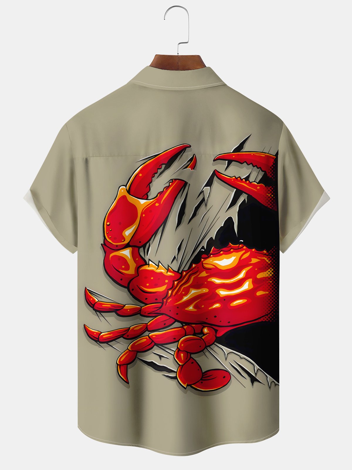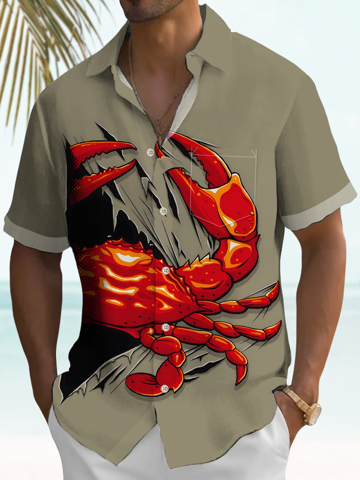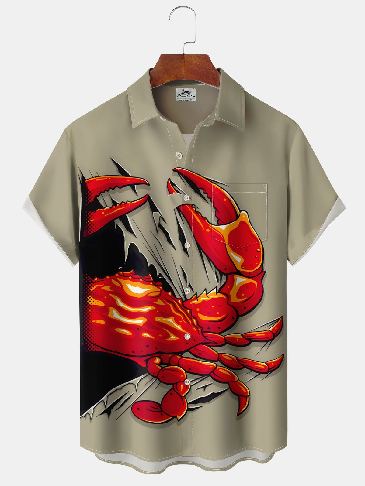 Alohadaddy Men's Vintage Holiday Crab Sea Life Hawaiian Shirt