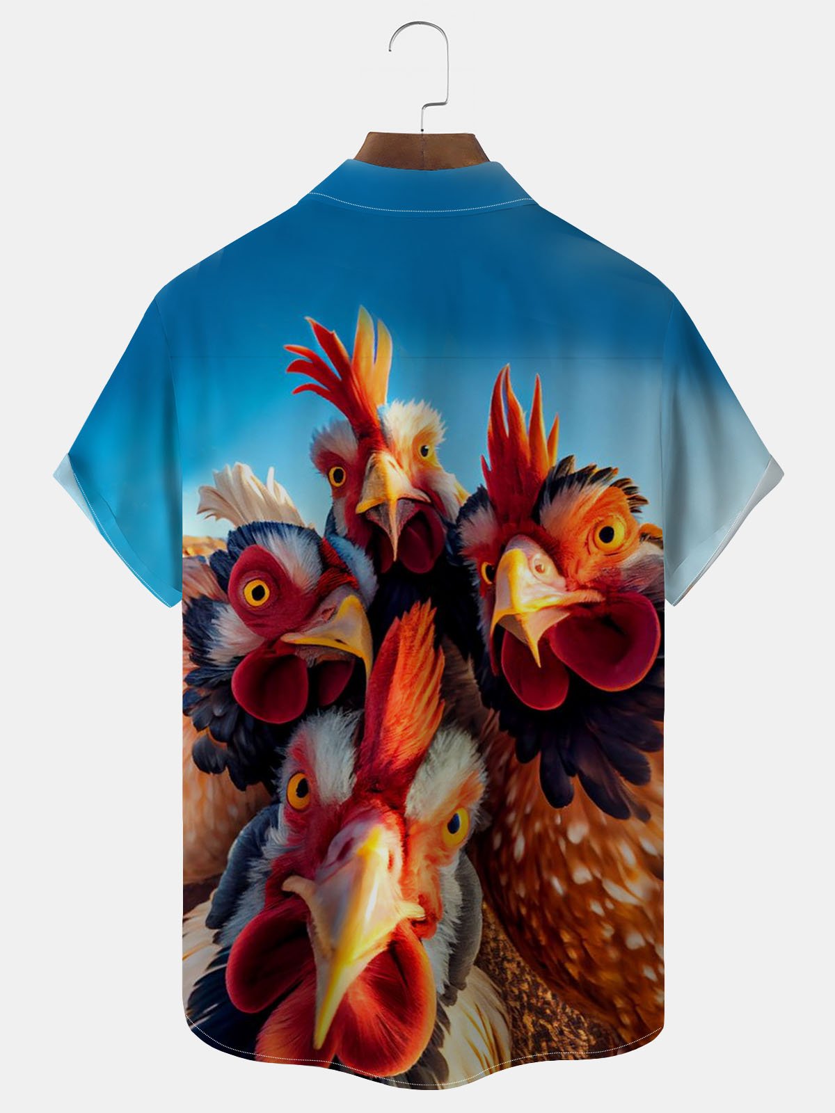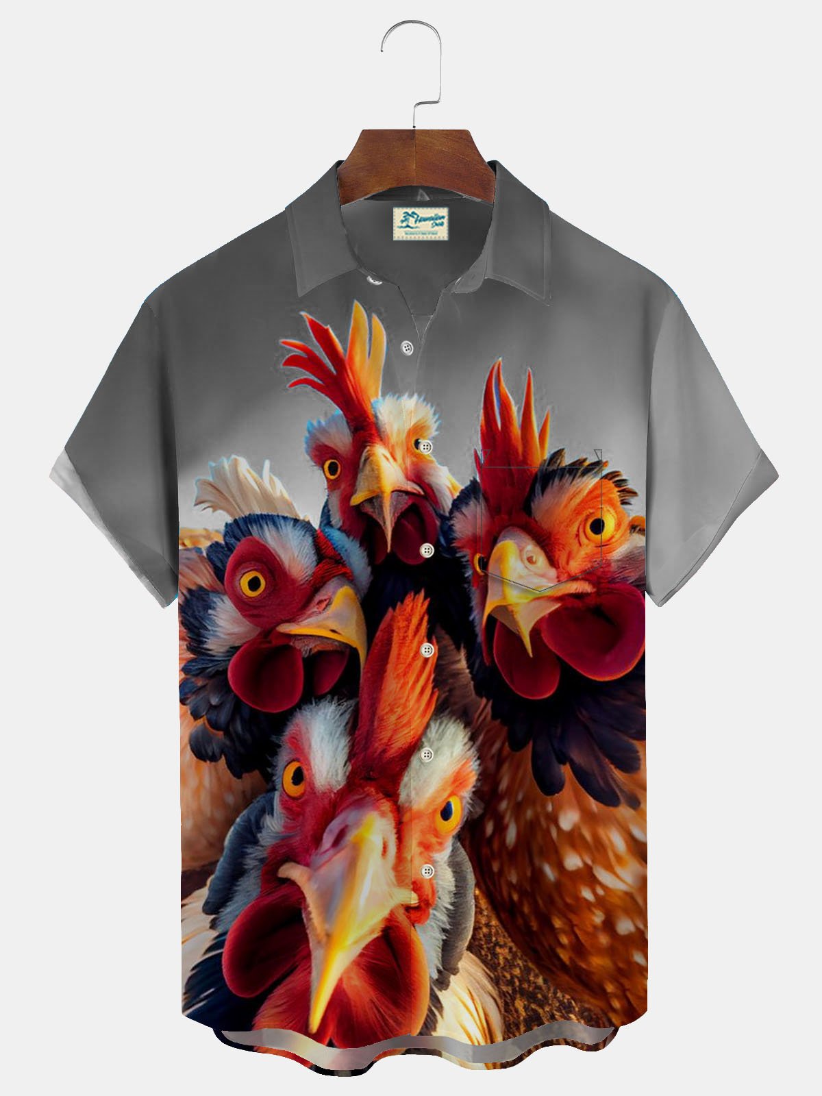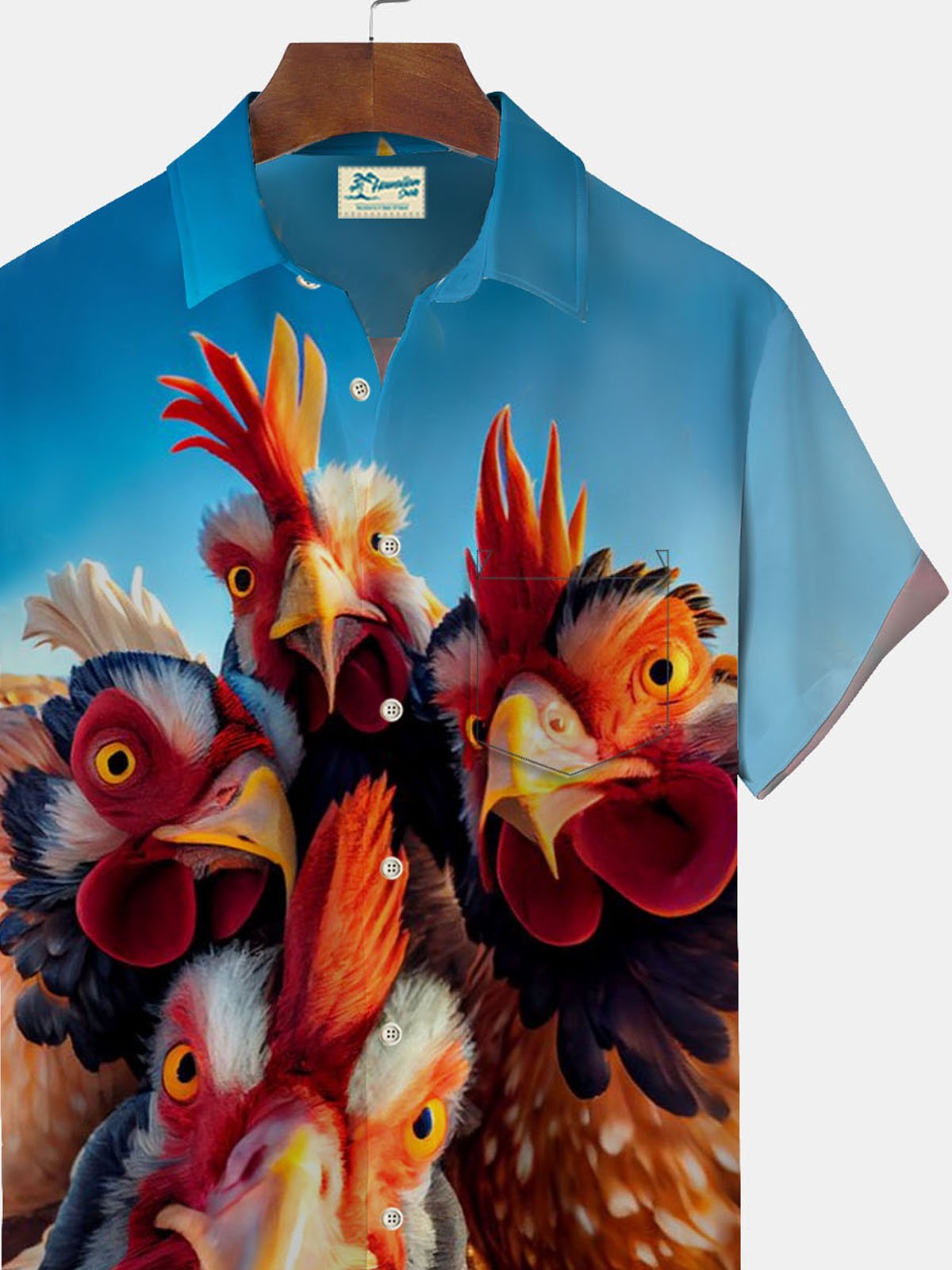 Alohadaddy Vintage Fighting Rooster Print Men's Button Pocket Shirt