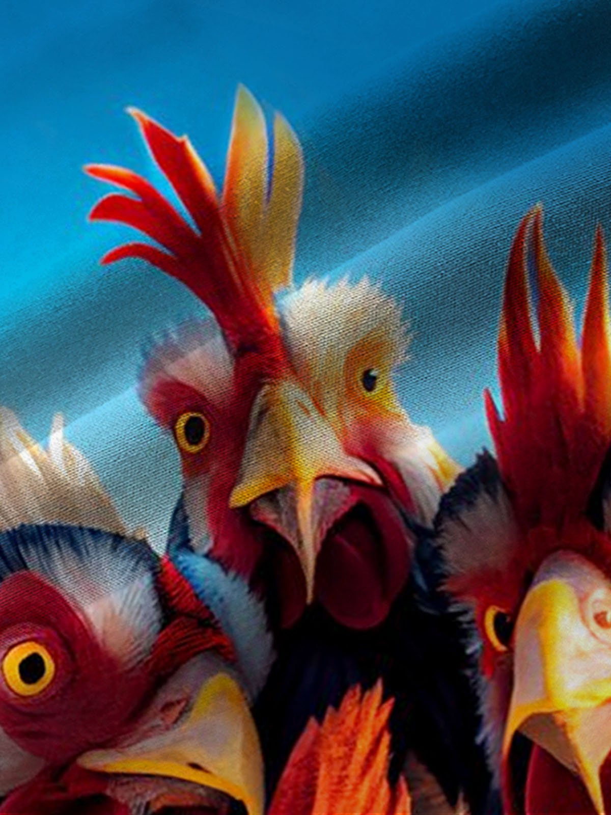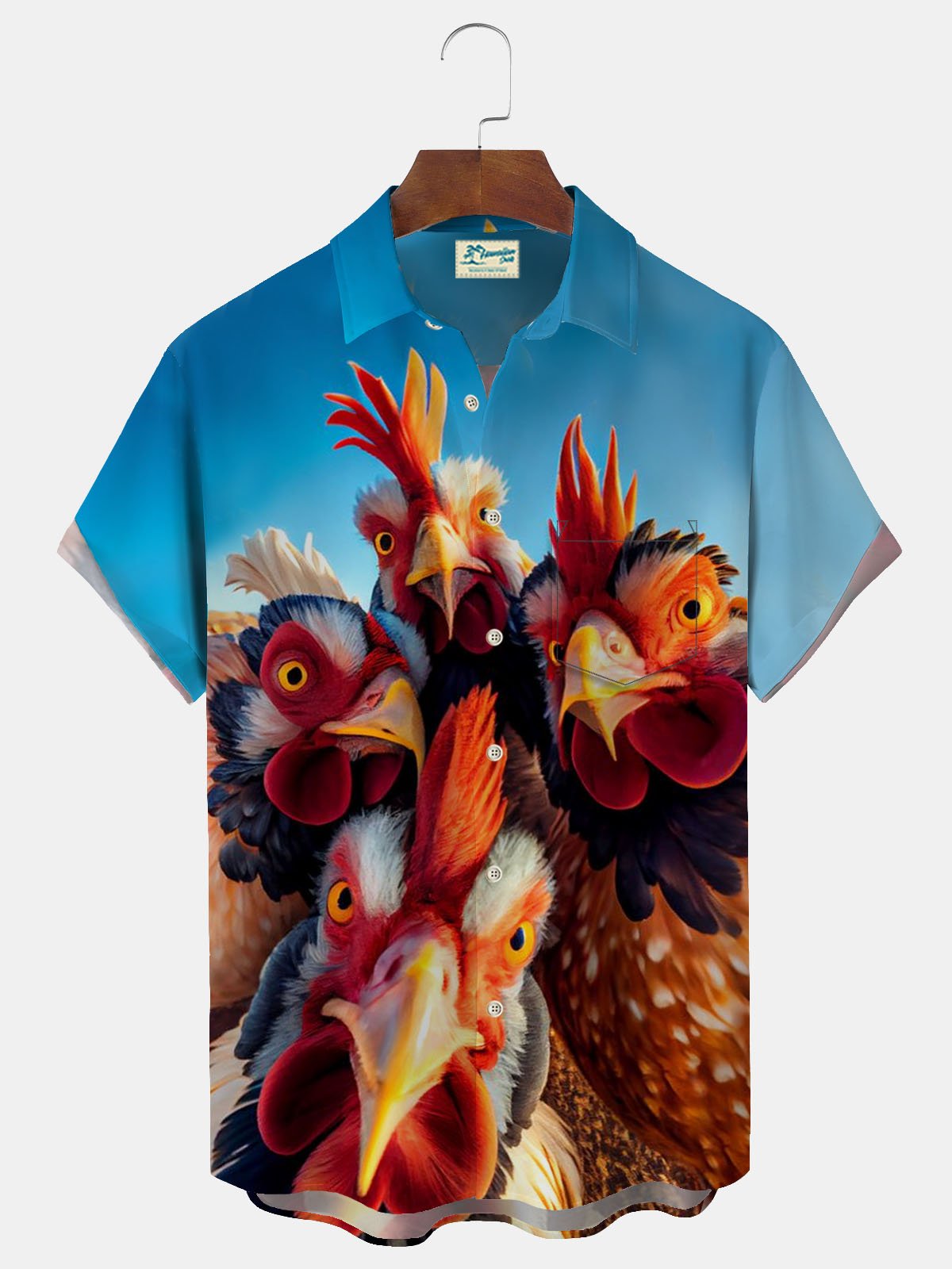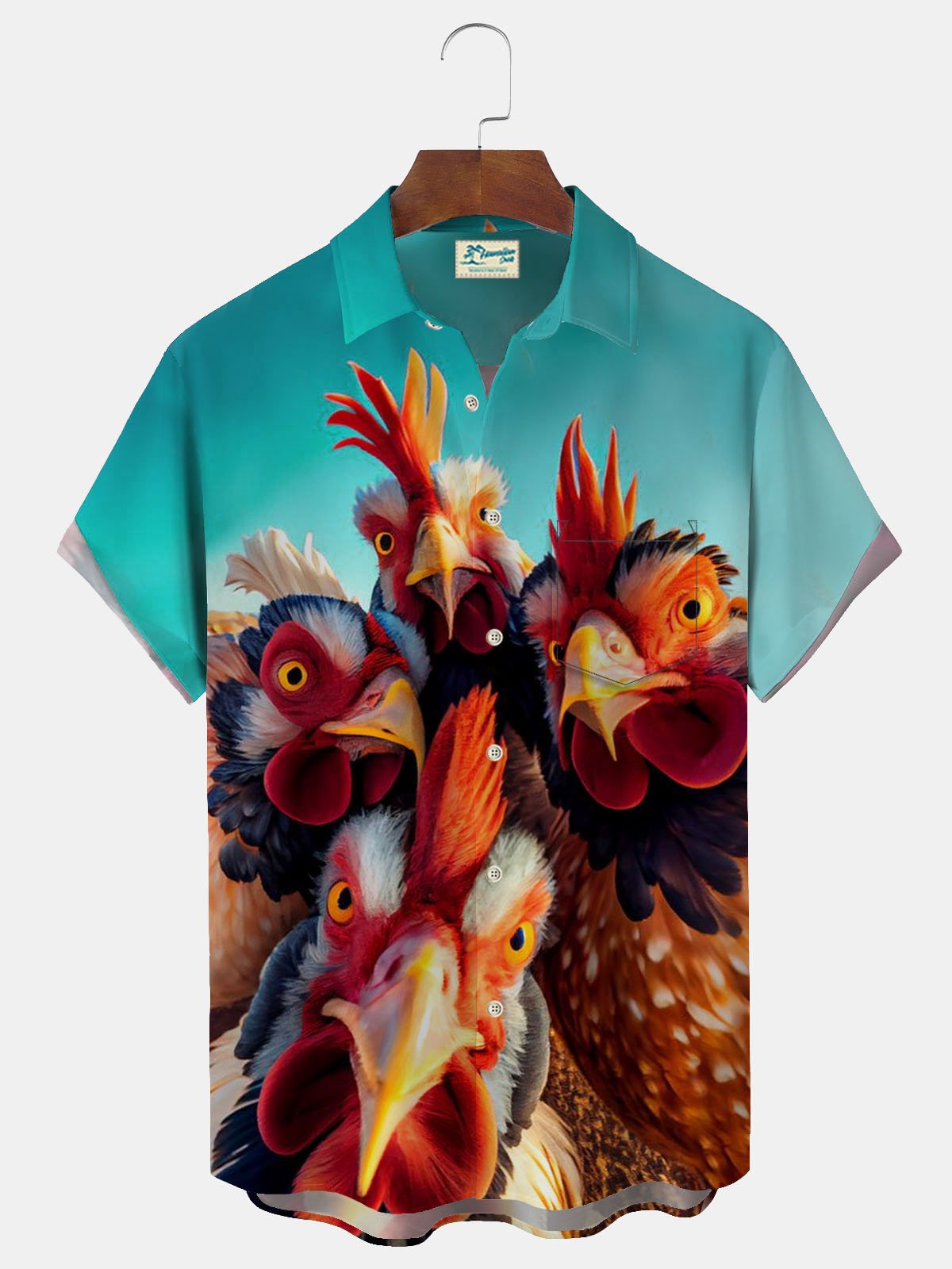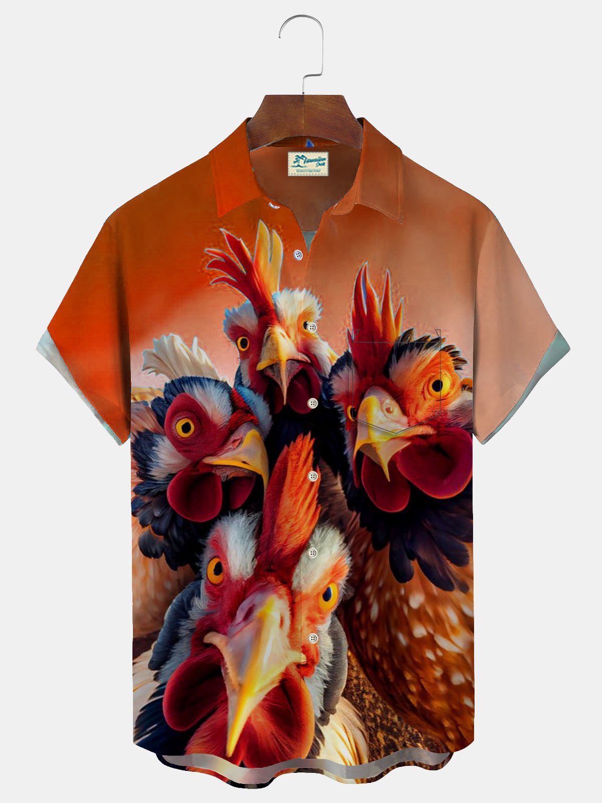 Alohadaddy Vintage Fighting Rooster Print Men's Button Pocket Shirt