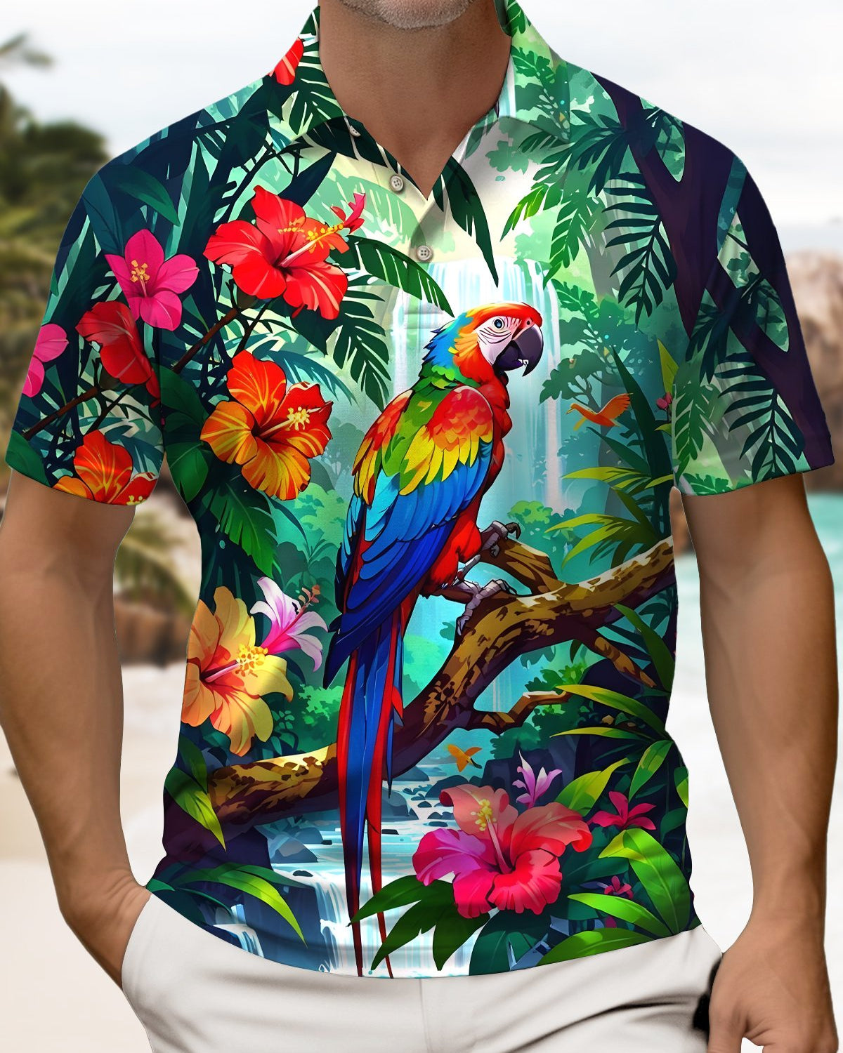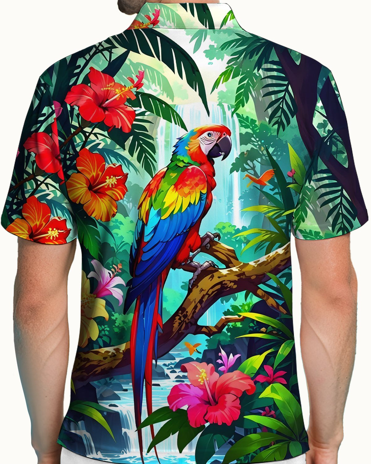 Alohadaddy® Hawaiian Leaf Pocket Button Stretch Men's Short Sleeve Shirt Big & Tall