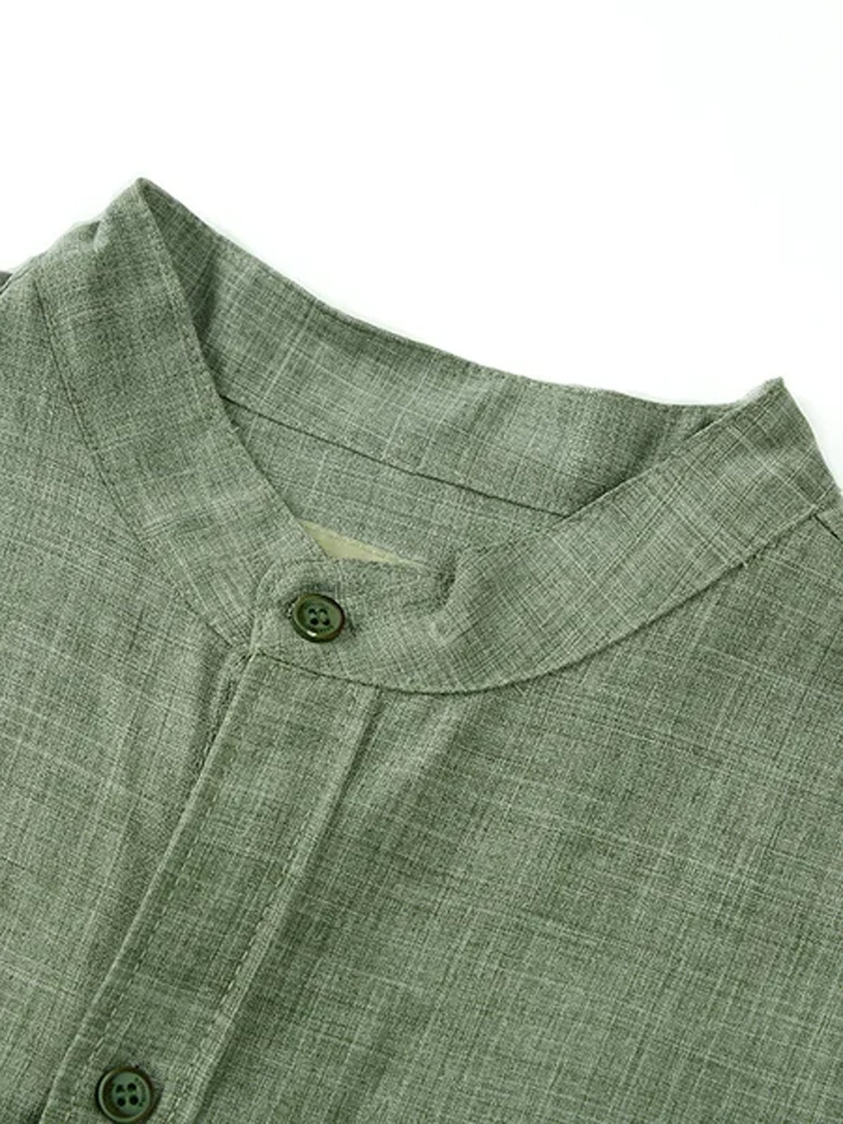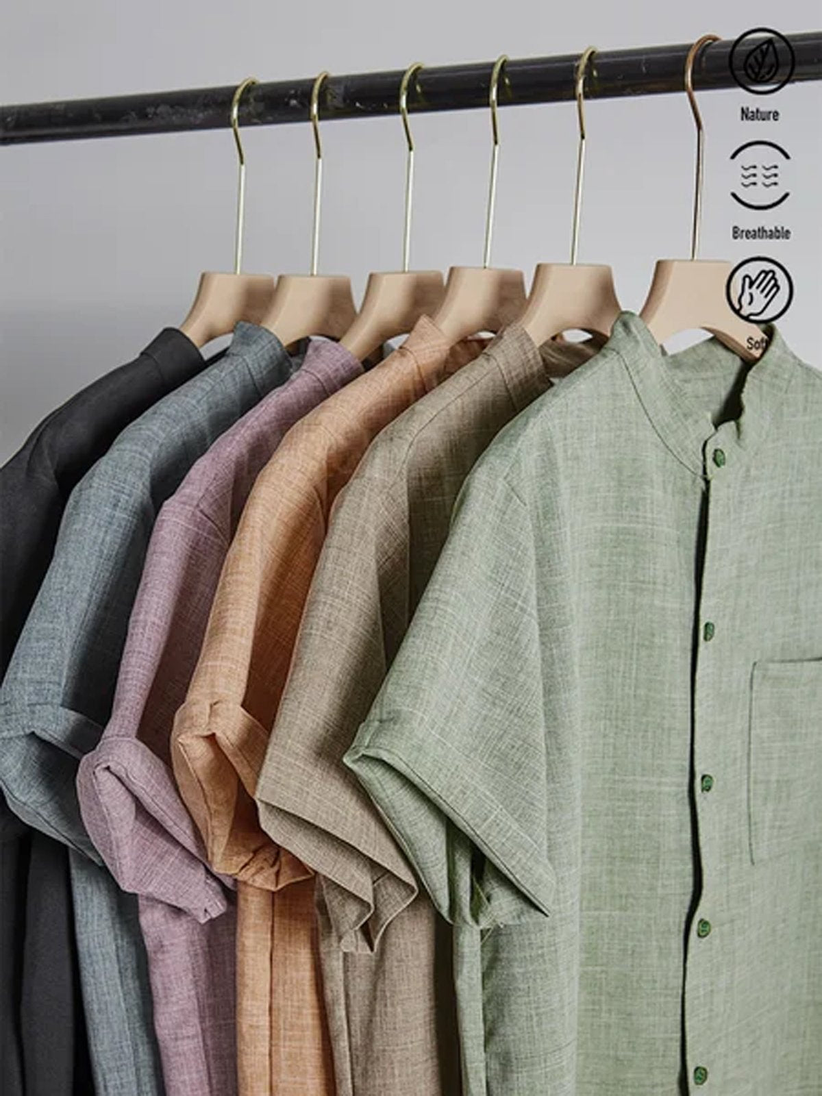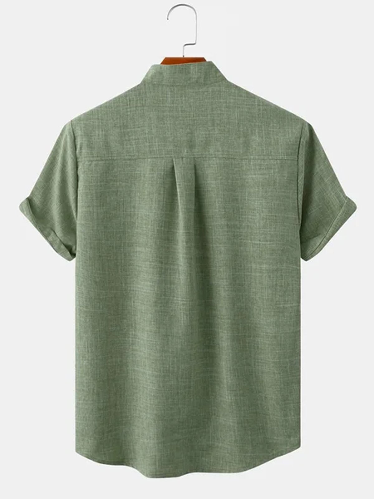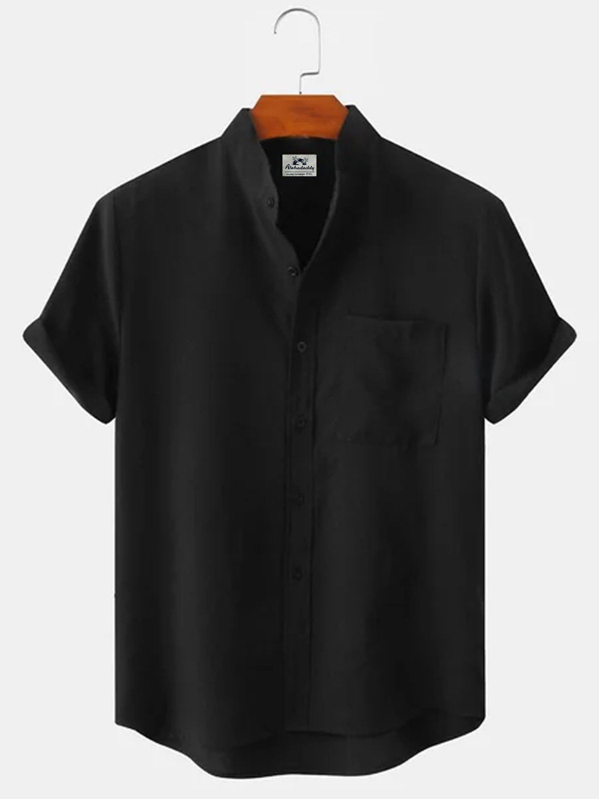 Alohadaddy Basic Solid Color Stand Collar Short Sleeve Shirt