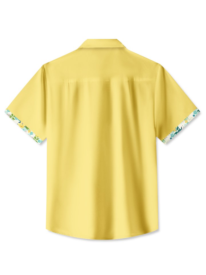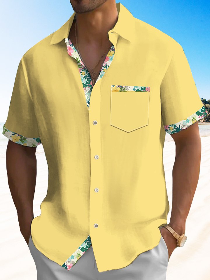 Alohadaddy Basic Solid Color Summer Hawaiian Flower Color Block Shirt