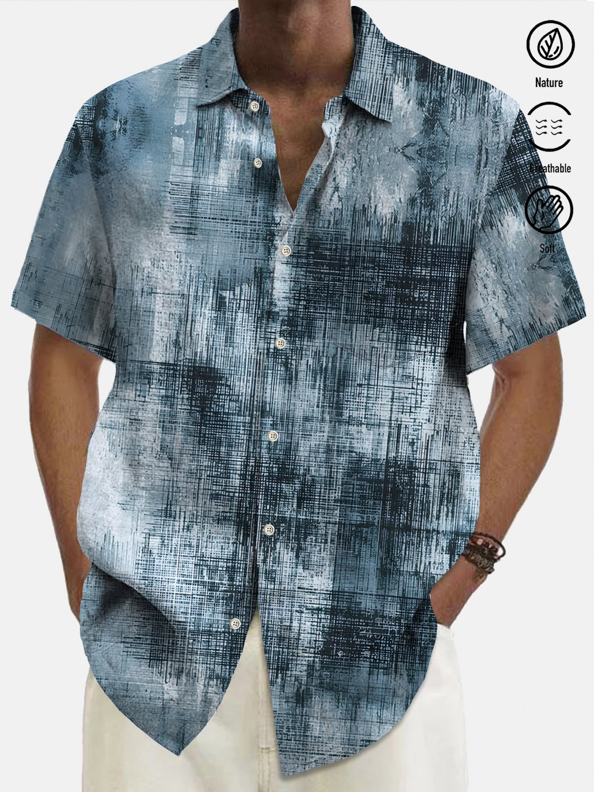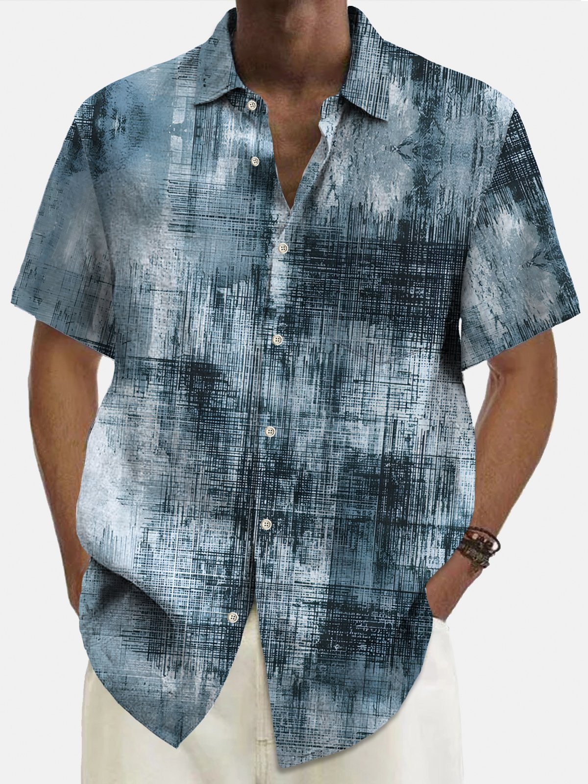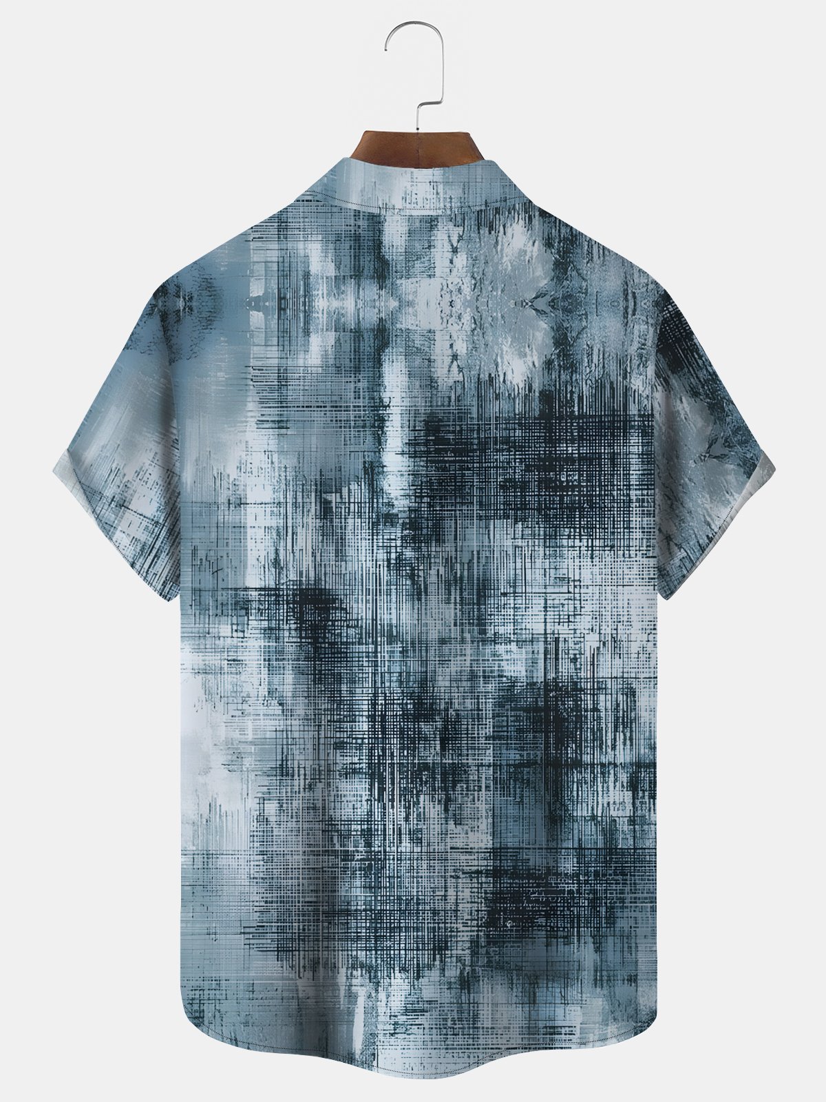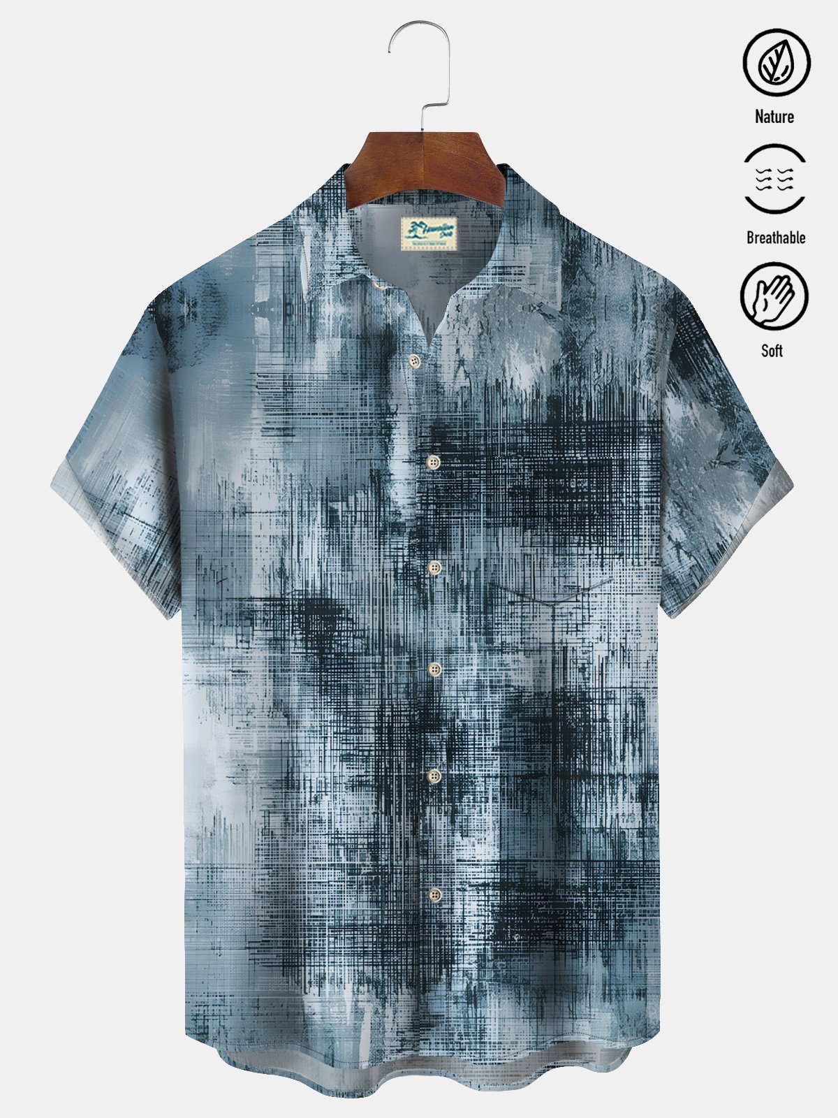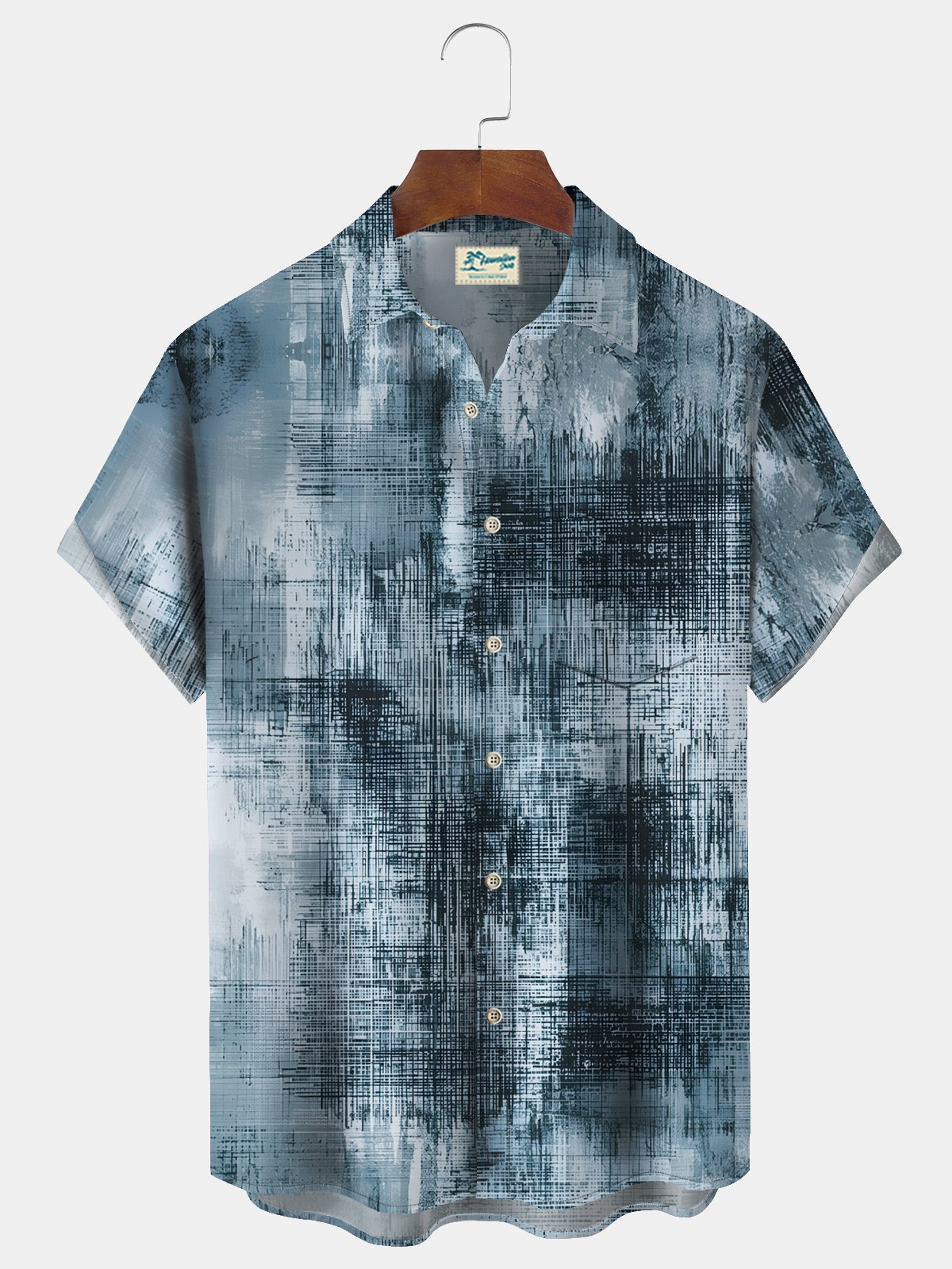 Alohadaddy Beach Vacation Light Blue Men's Hawaiian Shirts Vintage Textured Stretch Easy Care Pocket Camp Shirts Big Tall