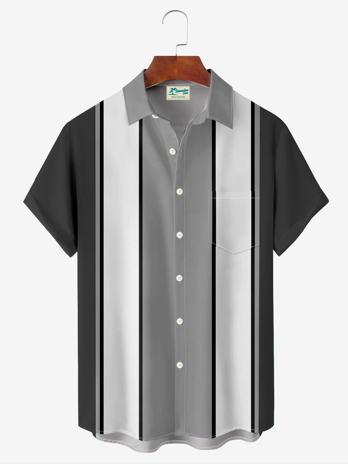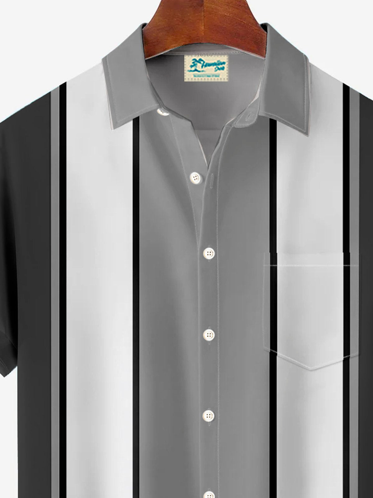 Alohadaddy Retro Bowling Stripe Contrast Color 3D Print Men's Button Pocket Short Sleeve Shirt Big & Tall