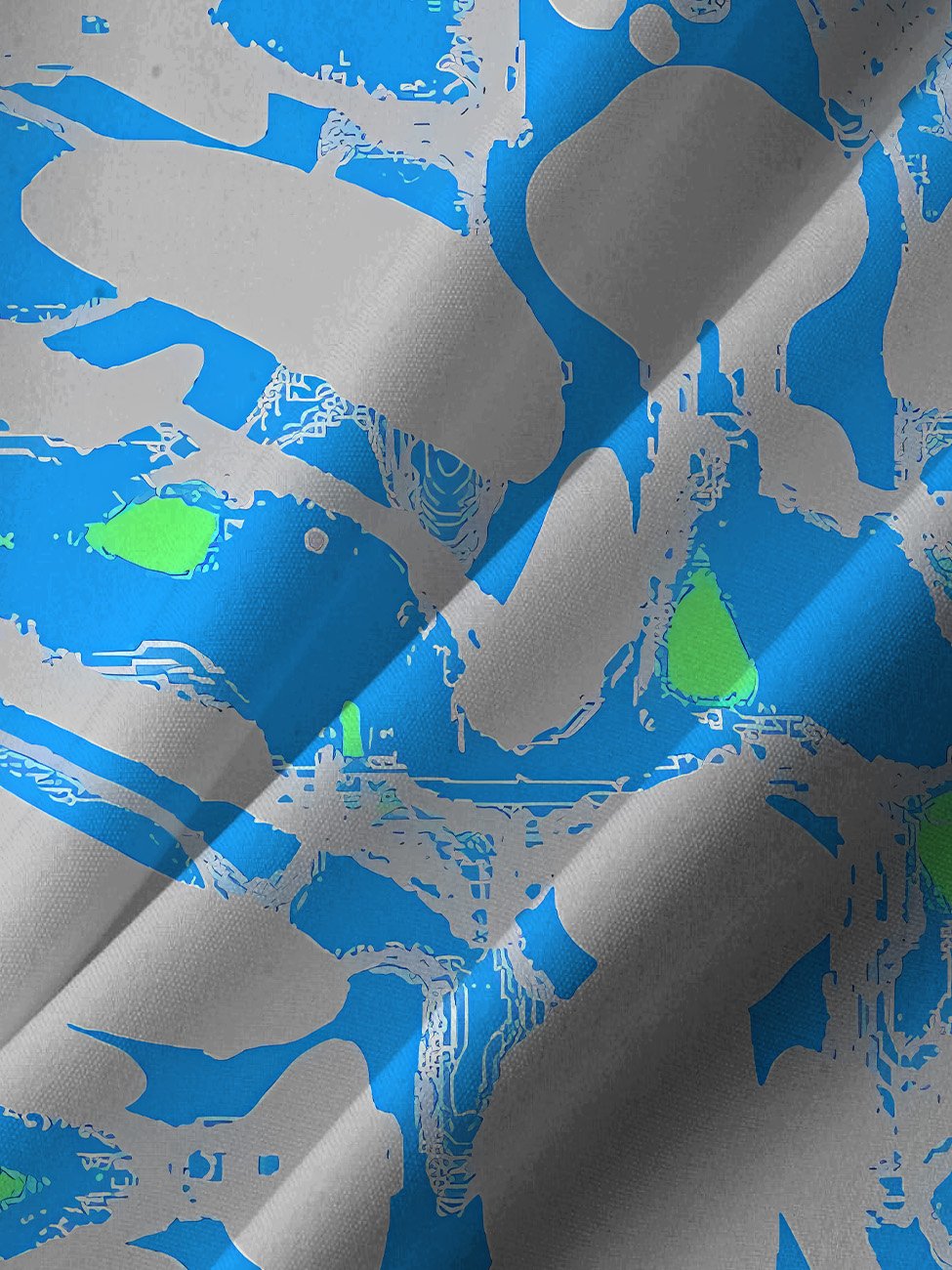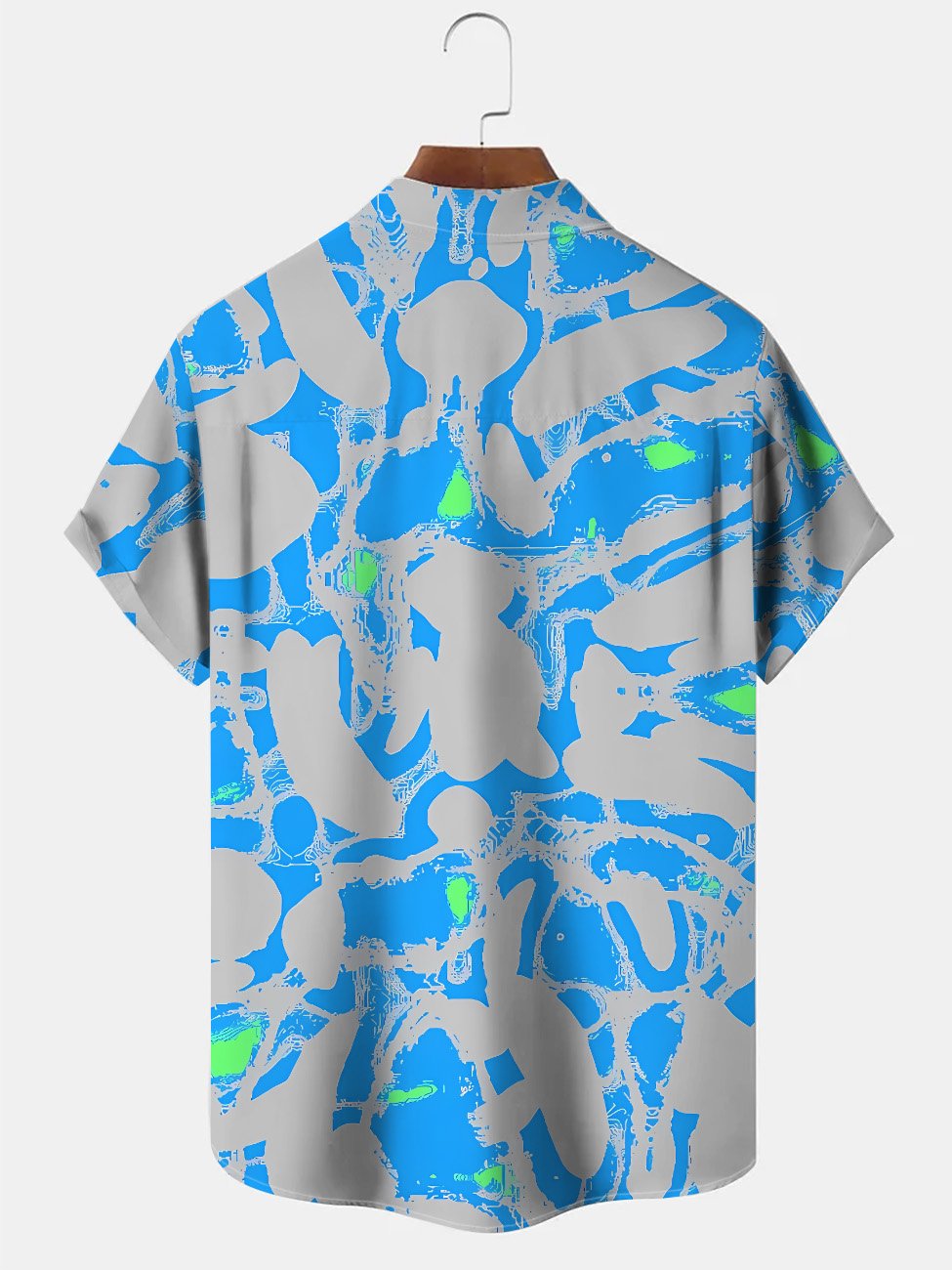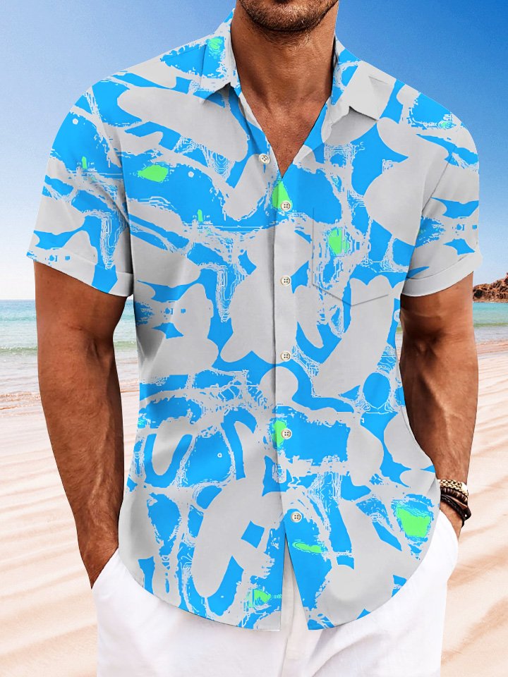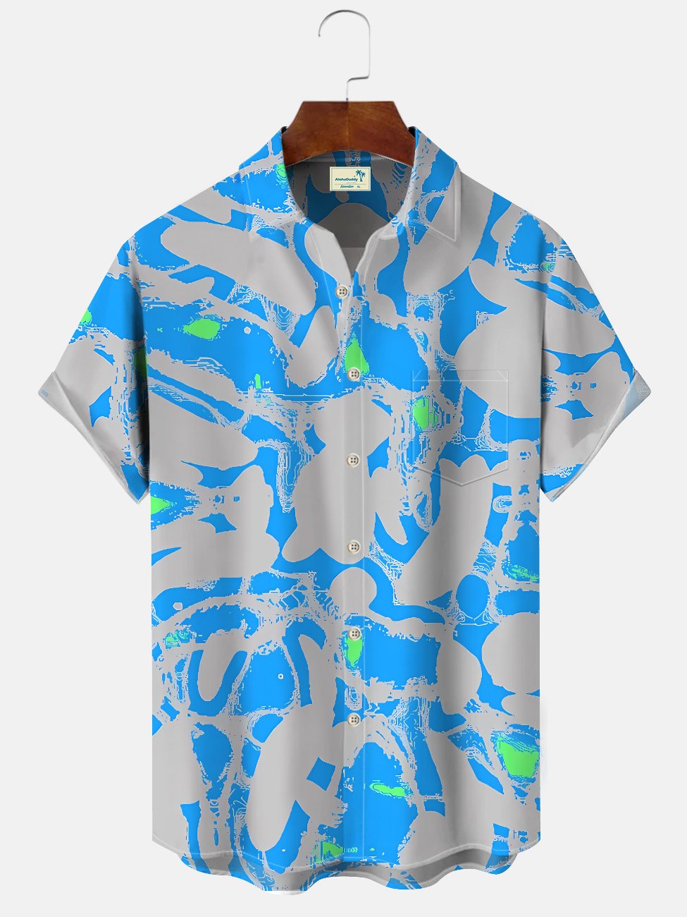 Alohadaddy Summer Geometric Pattern Pocket Button Contrast Color Casual Vacation Men's Short Sleeve Shirt