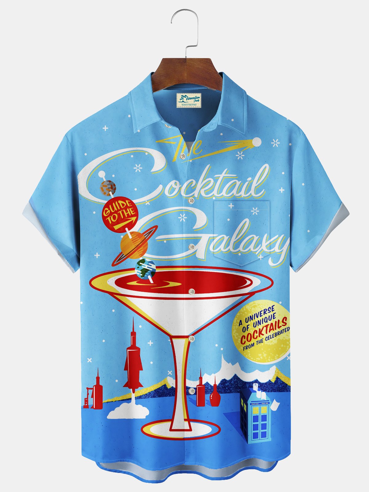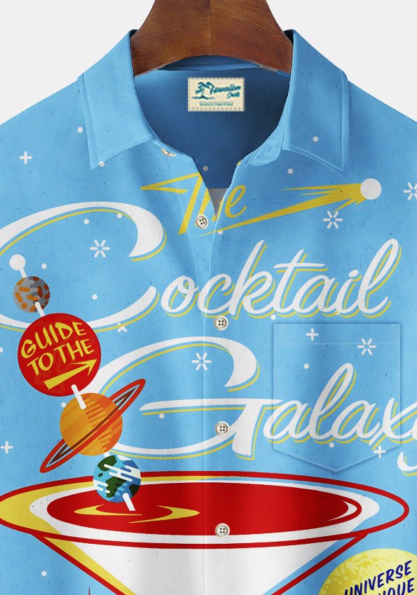 Alohadaddy Vintage Cocktail Art Print Chest Pocket Men's Tall Shirt Big Tall