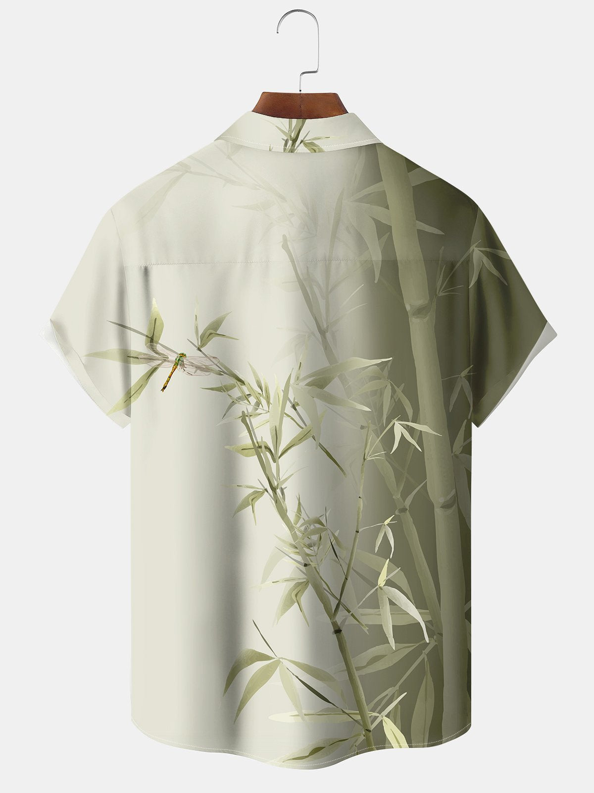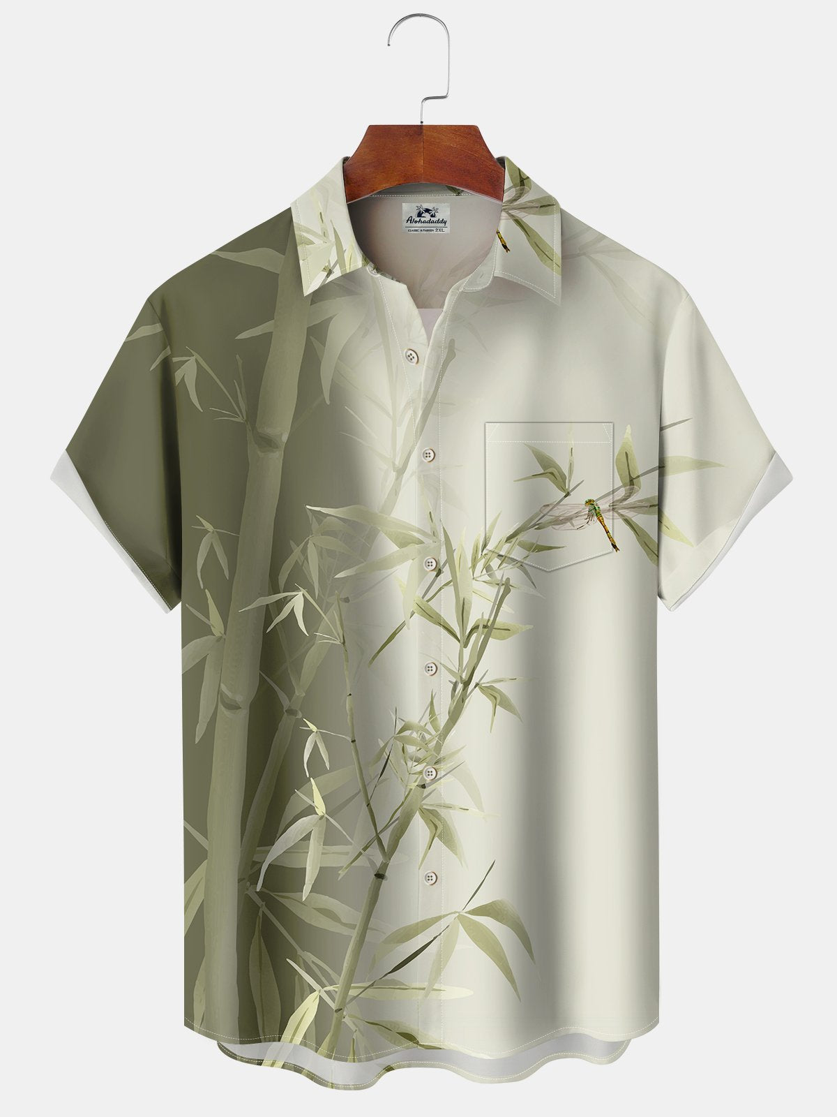 Alohadaddy Vintage Gradient Hawaiian Bamboo Dragonfly Pocket Vacation Shirt