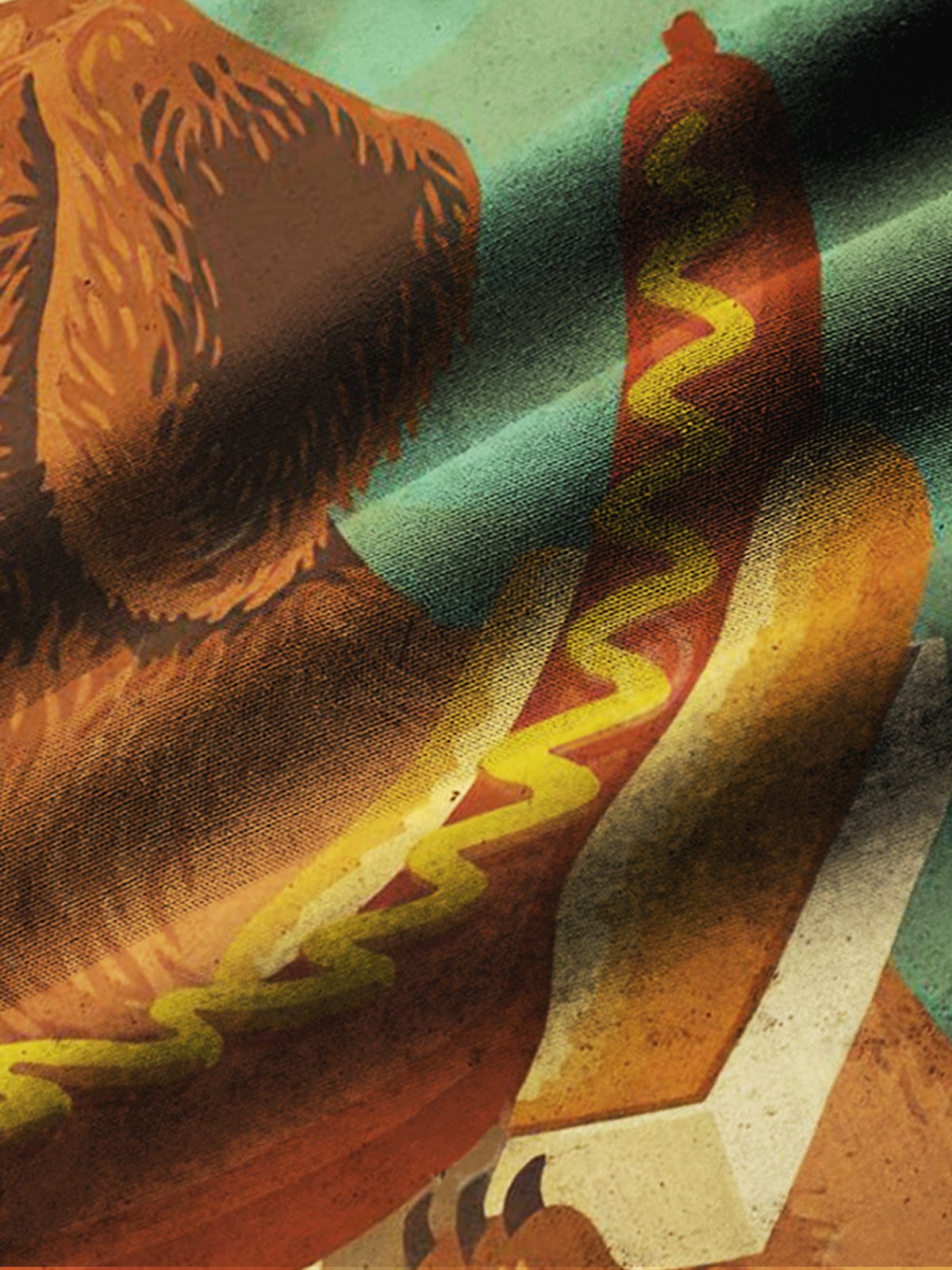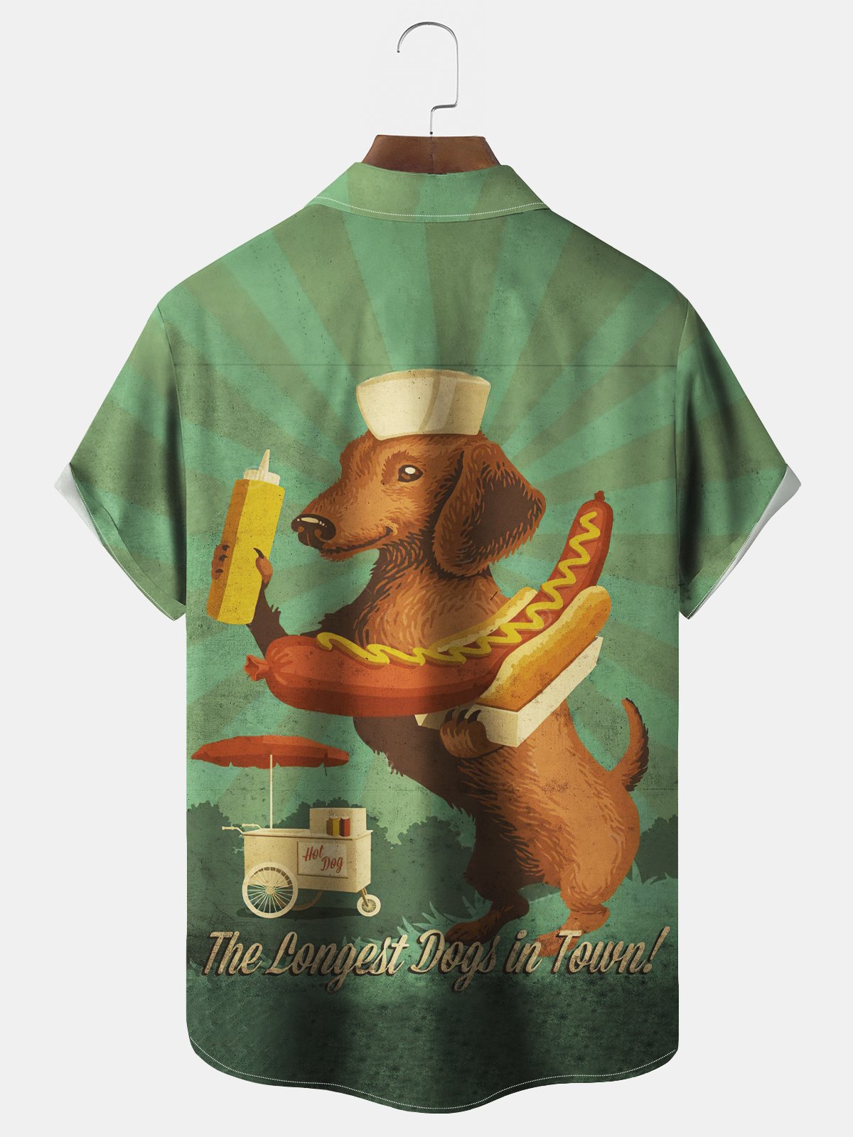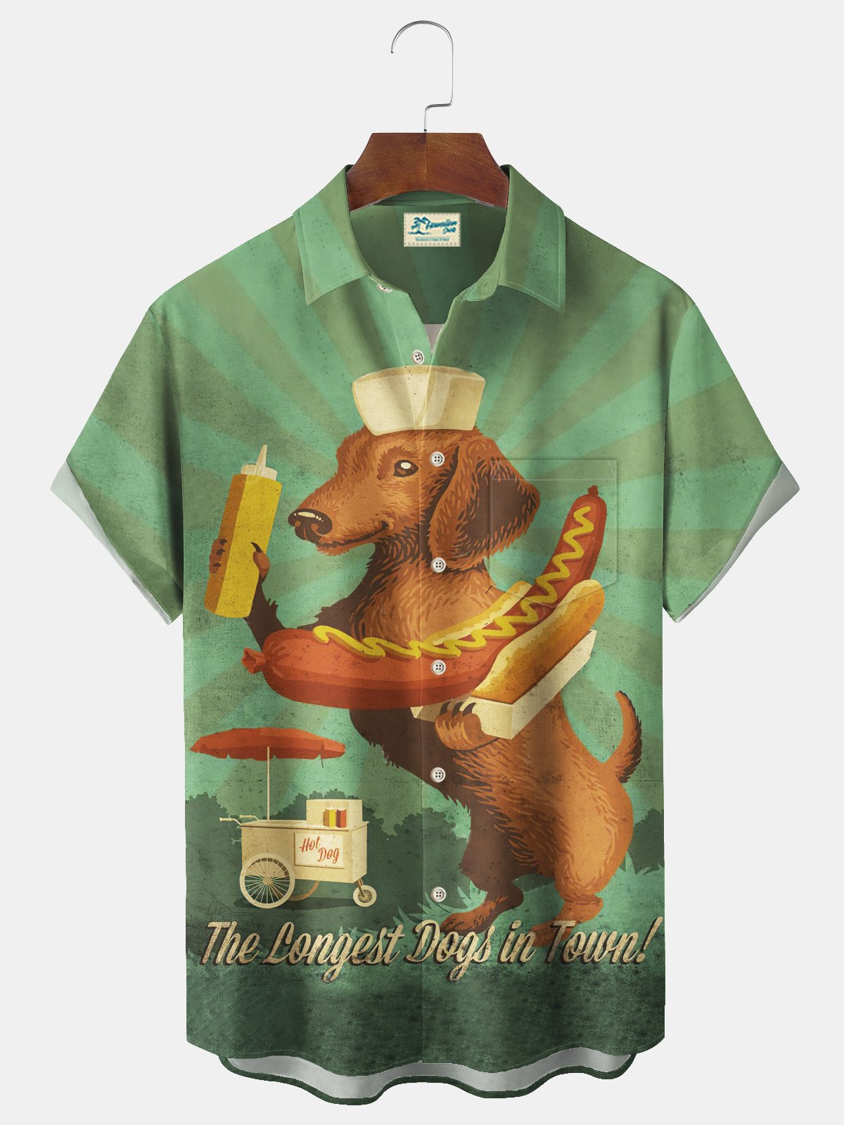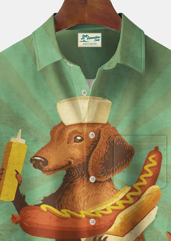 Alohadaddy Vintage Hot Dog Art Print Chest Pocket Men's Tall Shirt Big Tall
