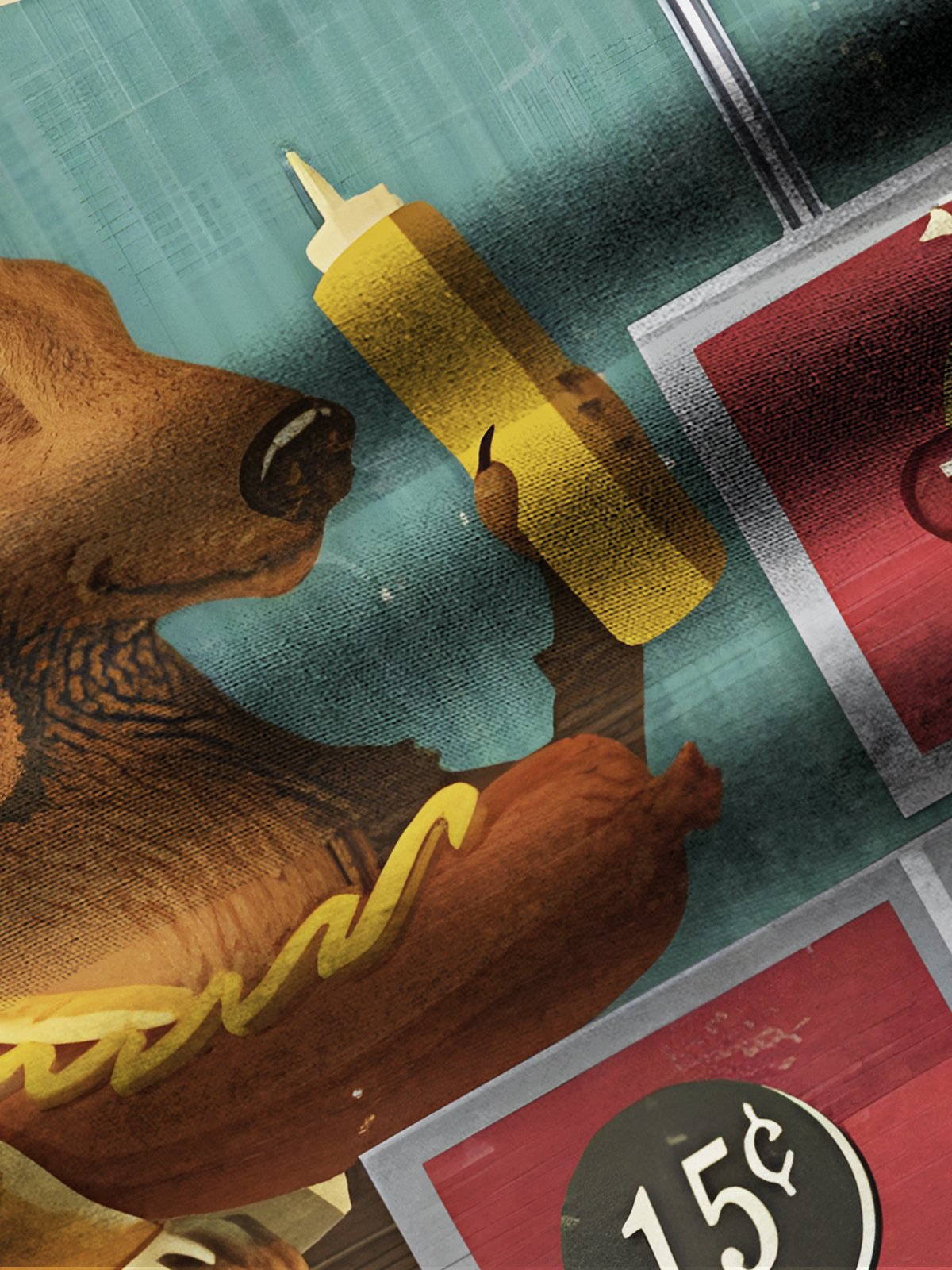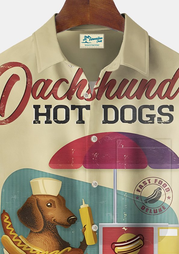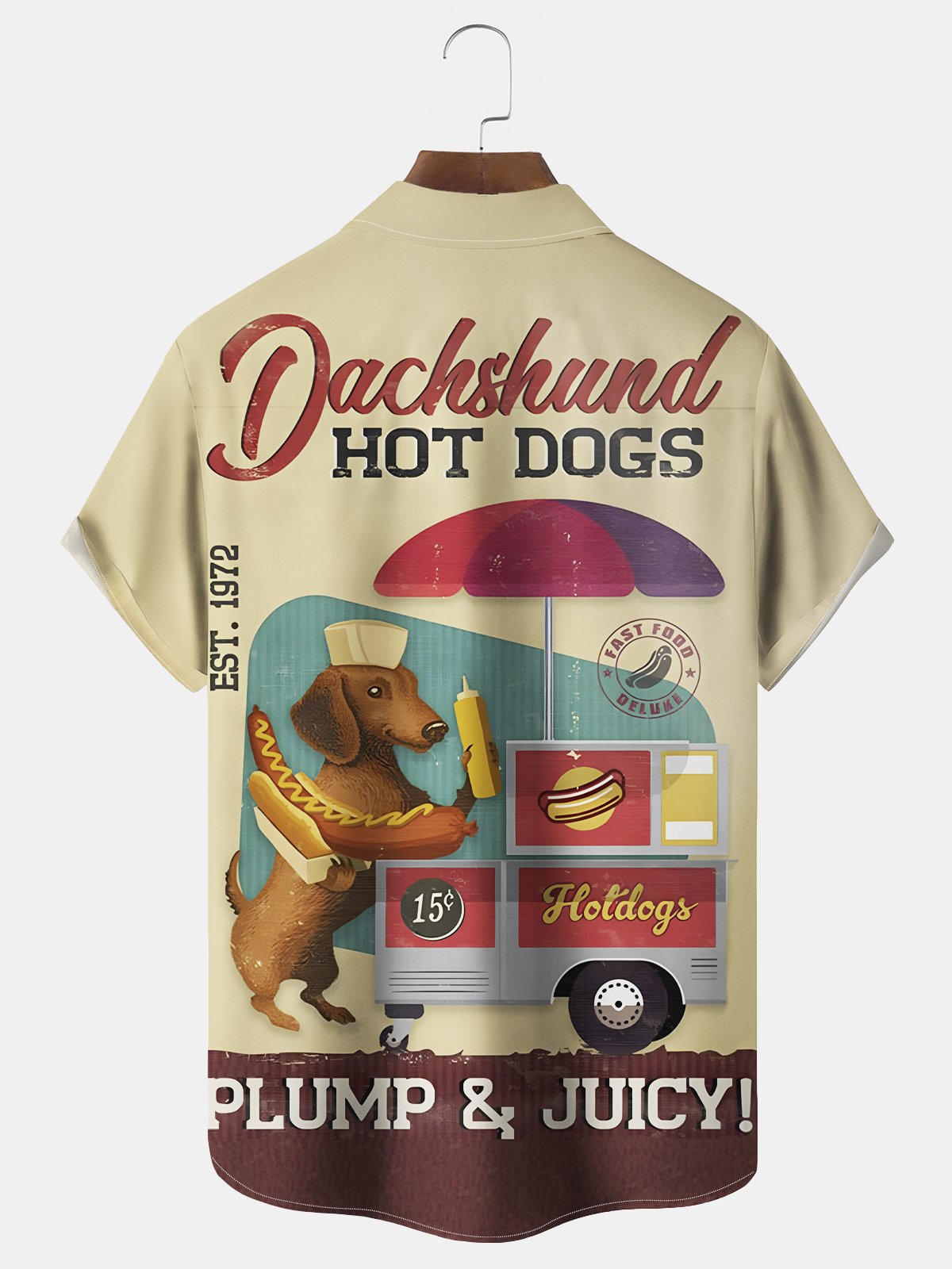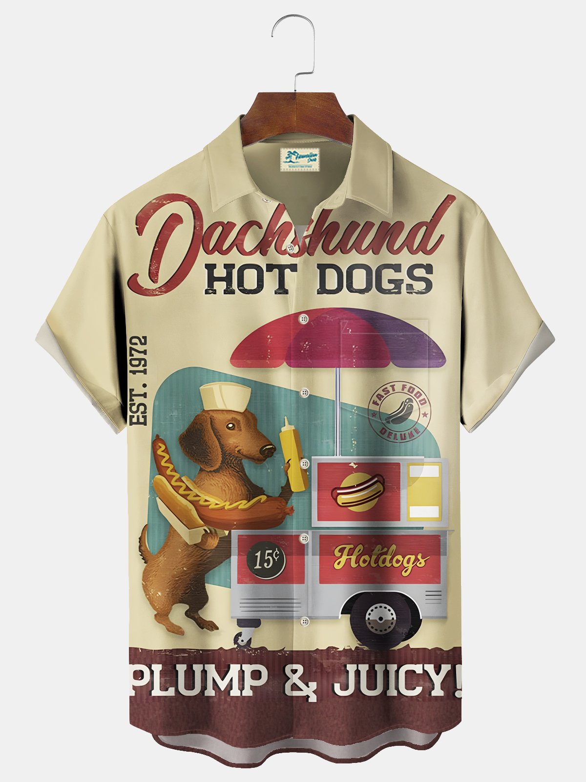 Alohadaddy Vintage Hot Dog Art Print Chest Pocket Men's Tall Shirt Big Tall