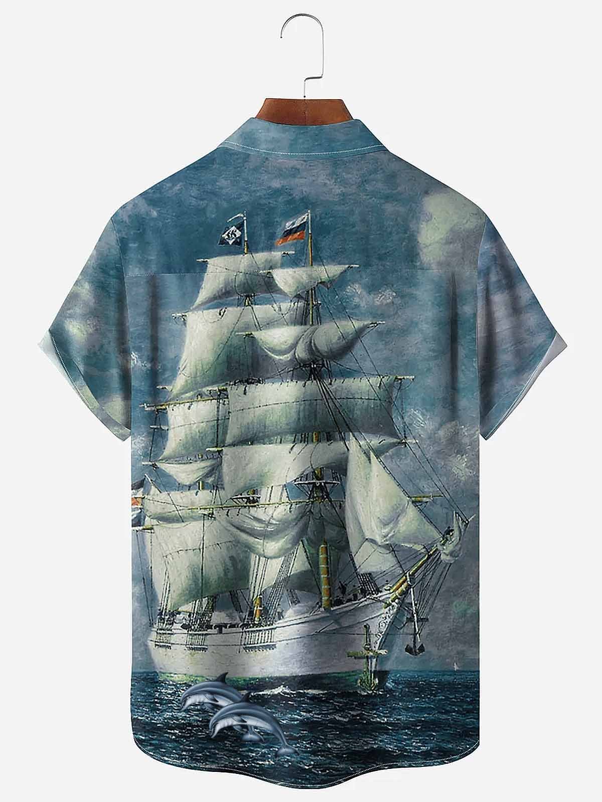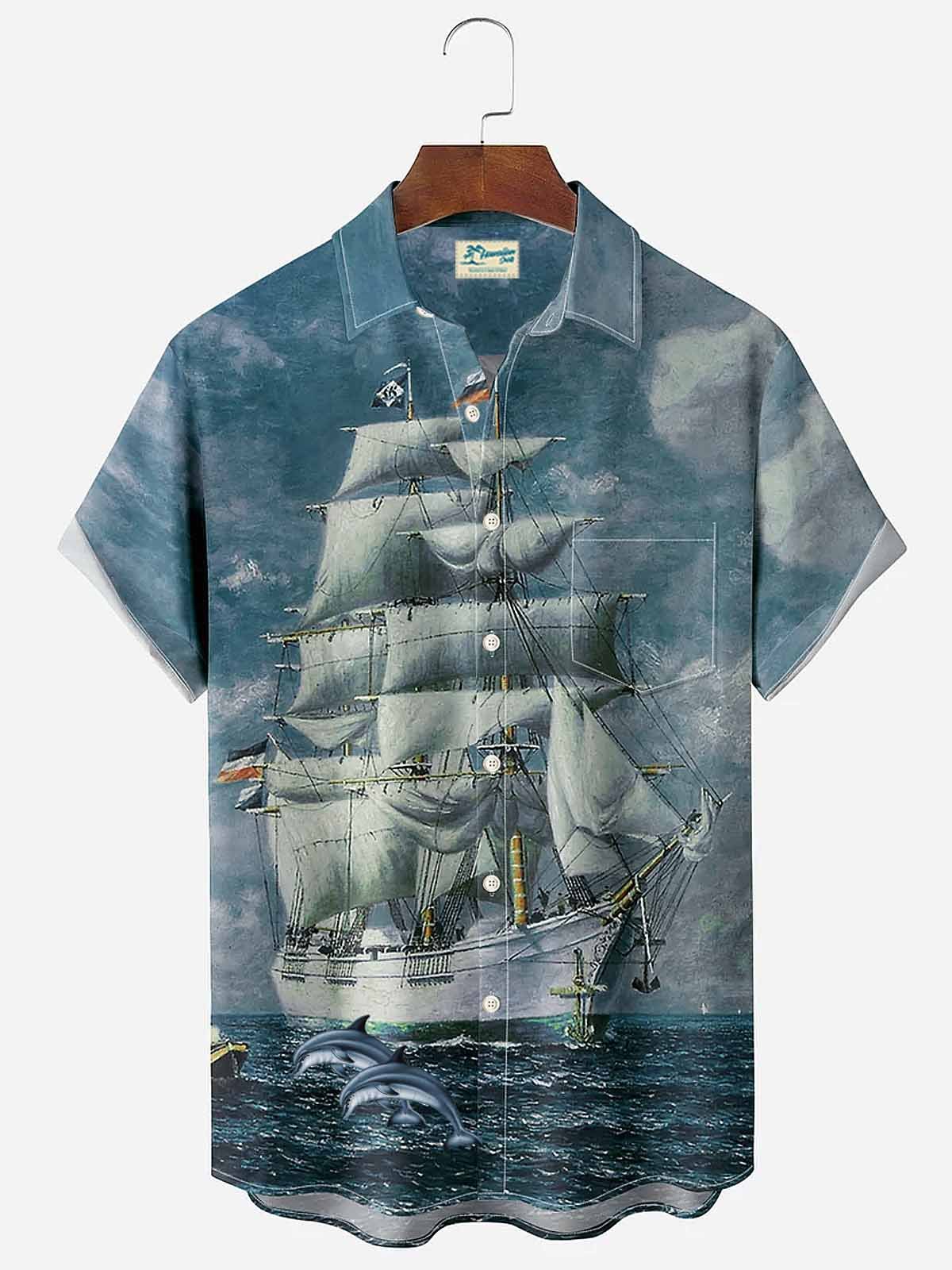 Alohadaddy Vintage Nautical Sailing Men's Button Pocket Shirt