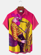 Alohadaddy Cock Musical Saxophone Print Beach Men's Hawaiian Big&Tall Shirt With Pocket