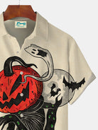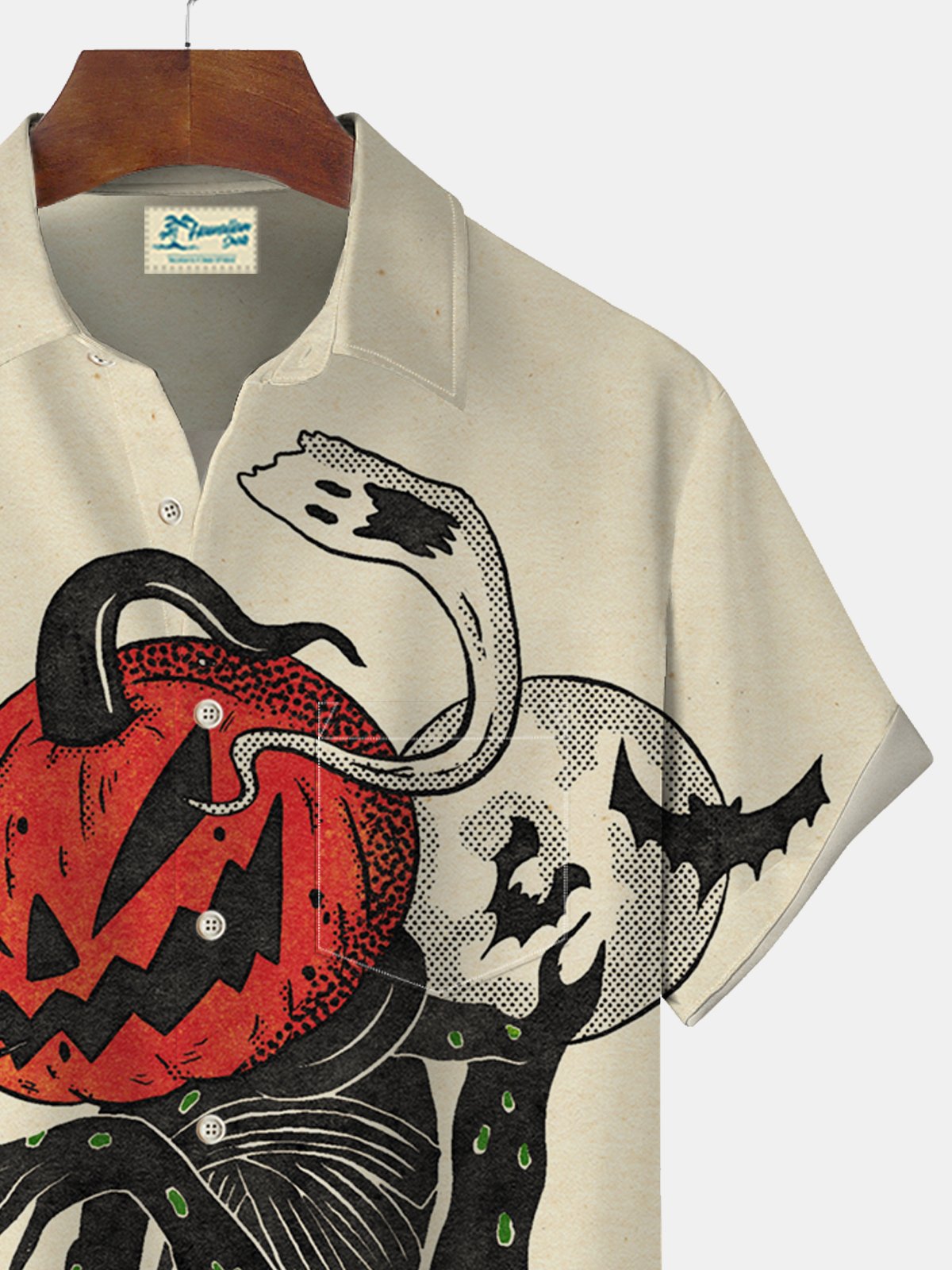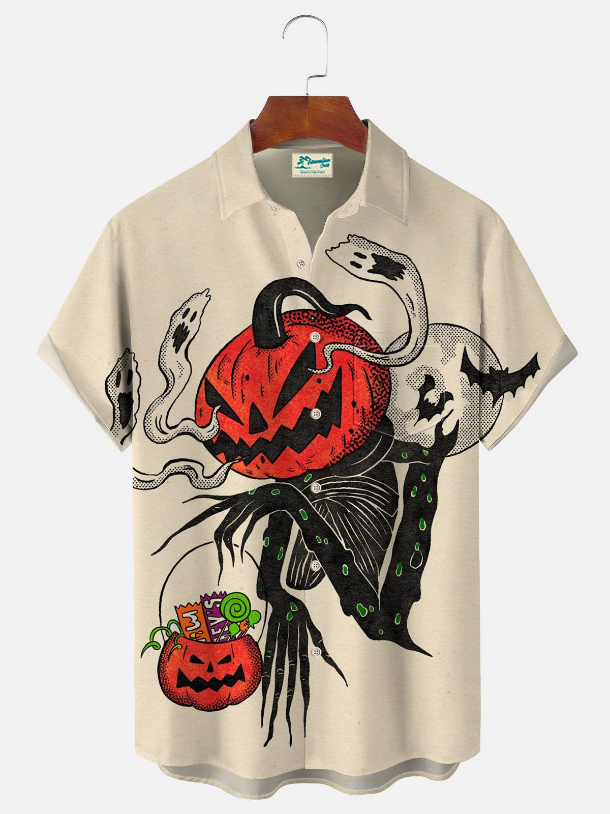 Alohadaddy Halloween Pumpkin Print Beach Men's Hawaiian Oversized Pocket Shirt