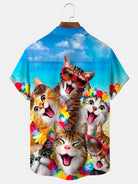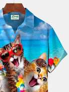 Alohadaddy Vacation Funny Cats Print Beach Men's Hawaiian Oversized Shirt With Pocket