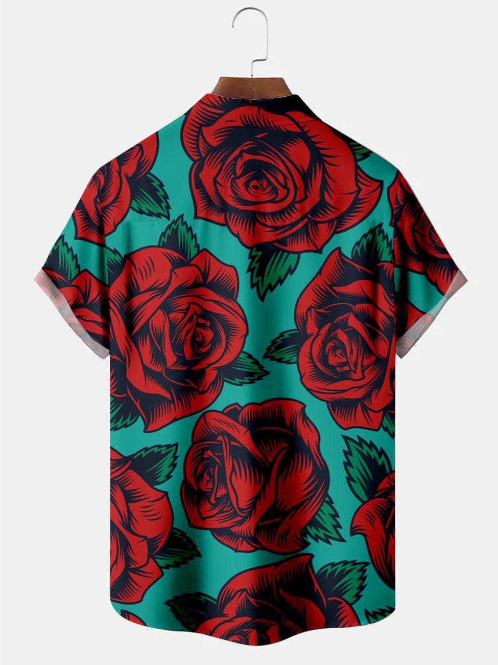 Valentine's Day Rose Casual Short Sleeve Shirt