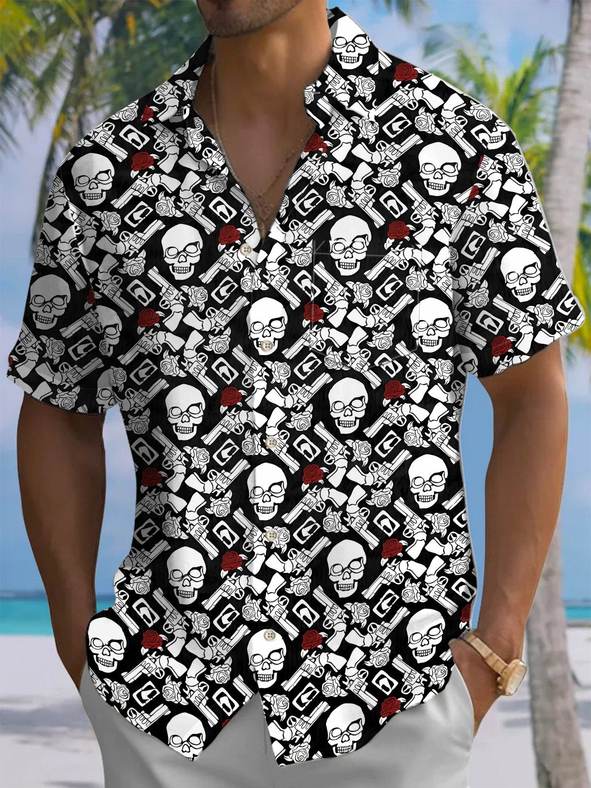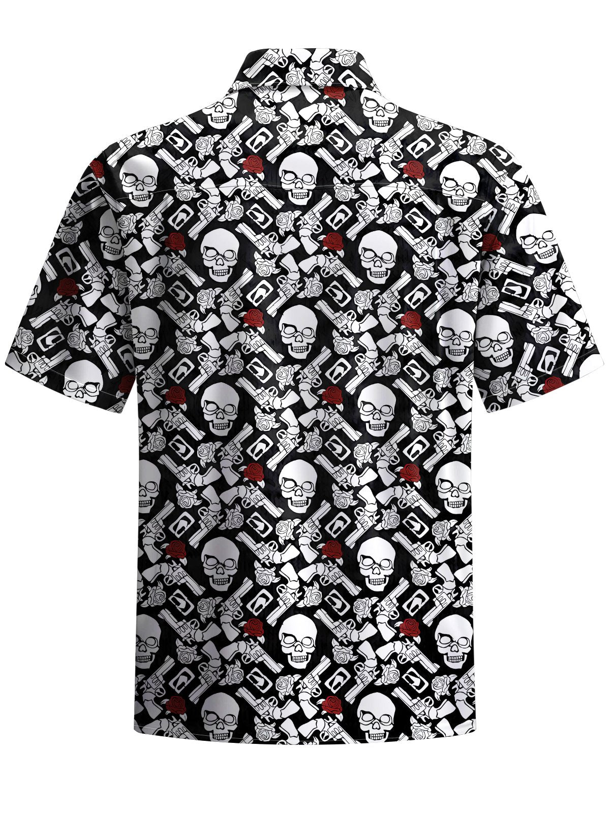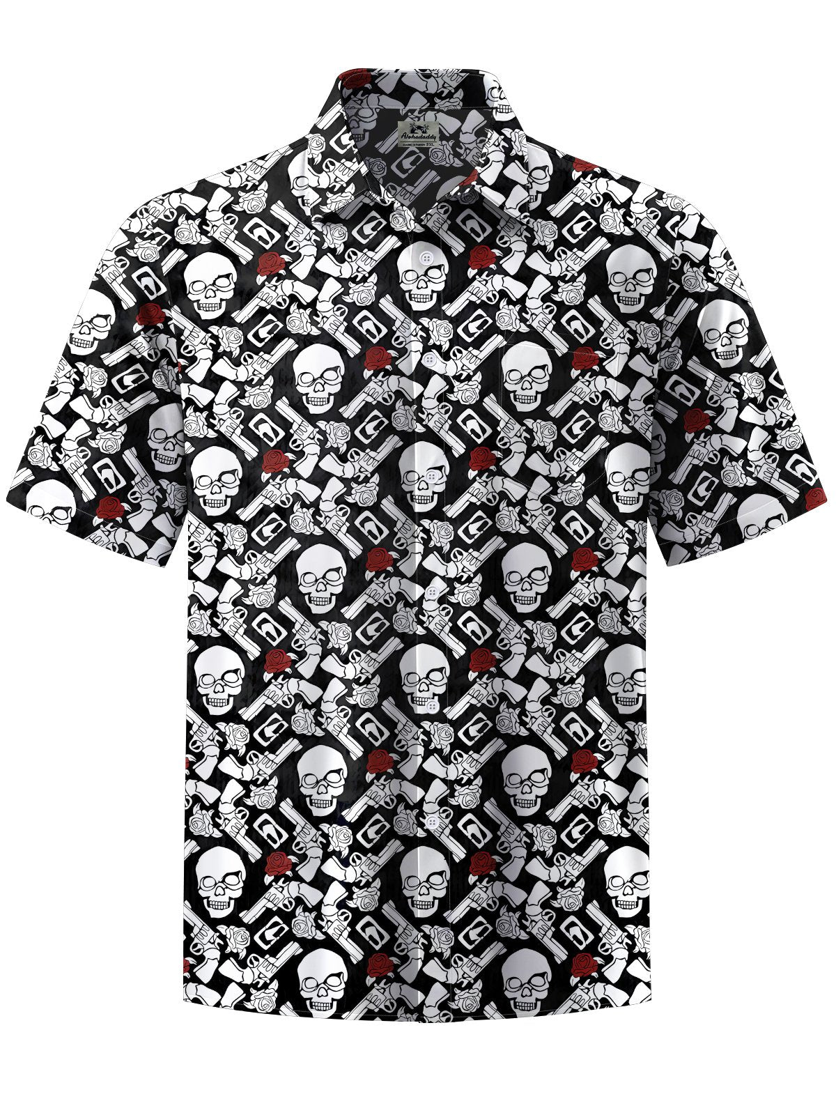 Alohadaddy® Casual Skull Art Print Chest Pocket Men's Short Sleeve Shirt Big & Tall