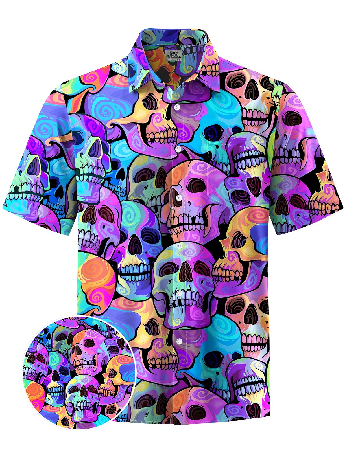 Alohadaddy® Hawaiian Skull Art Print Moisture Wicking Men's Short Sleeve Shirt Big & Tall
