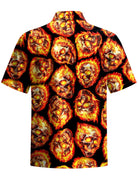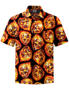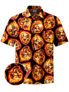 Alohadaddy® Retro Punk Flaming Skull Print Art Chest Pocket Men's Short Sleeve Shirt Big & Tall