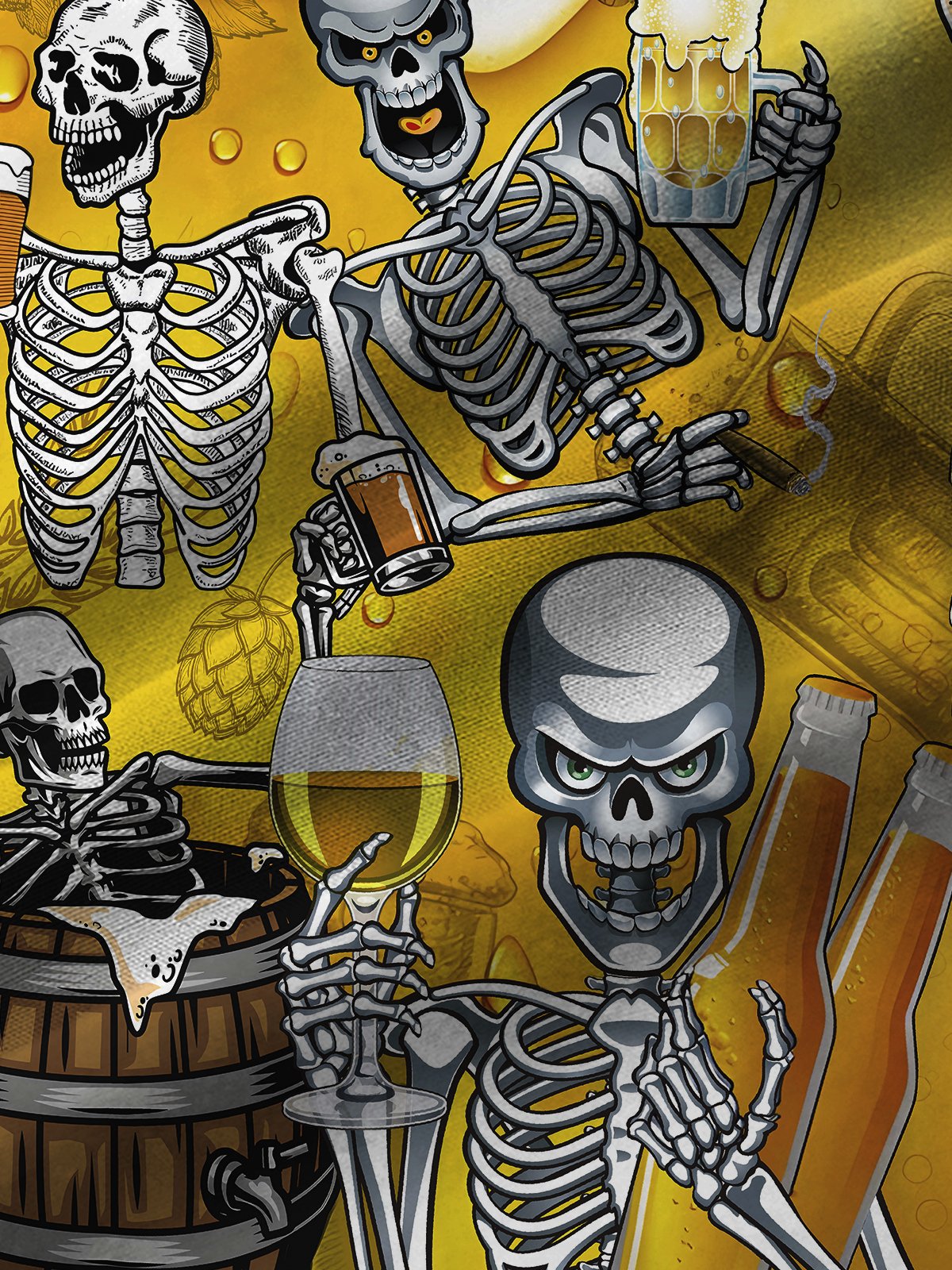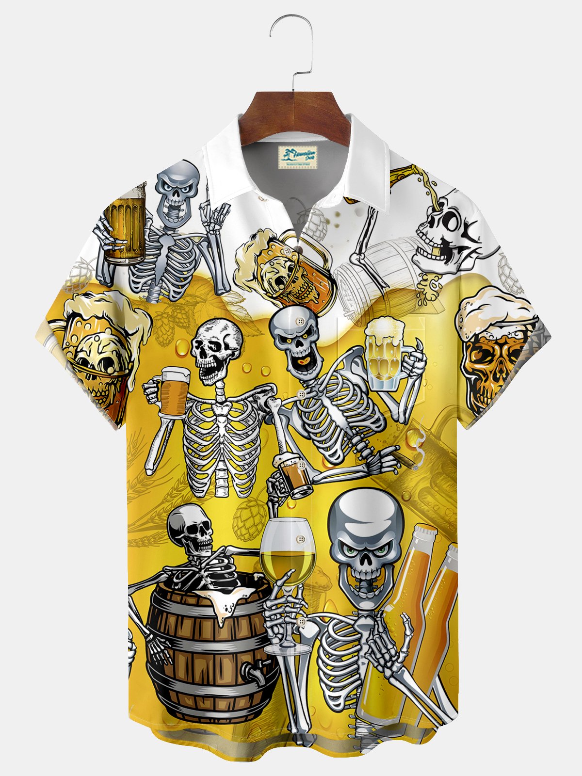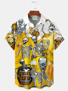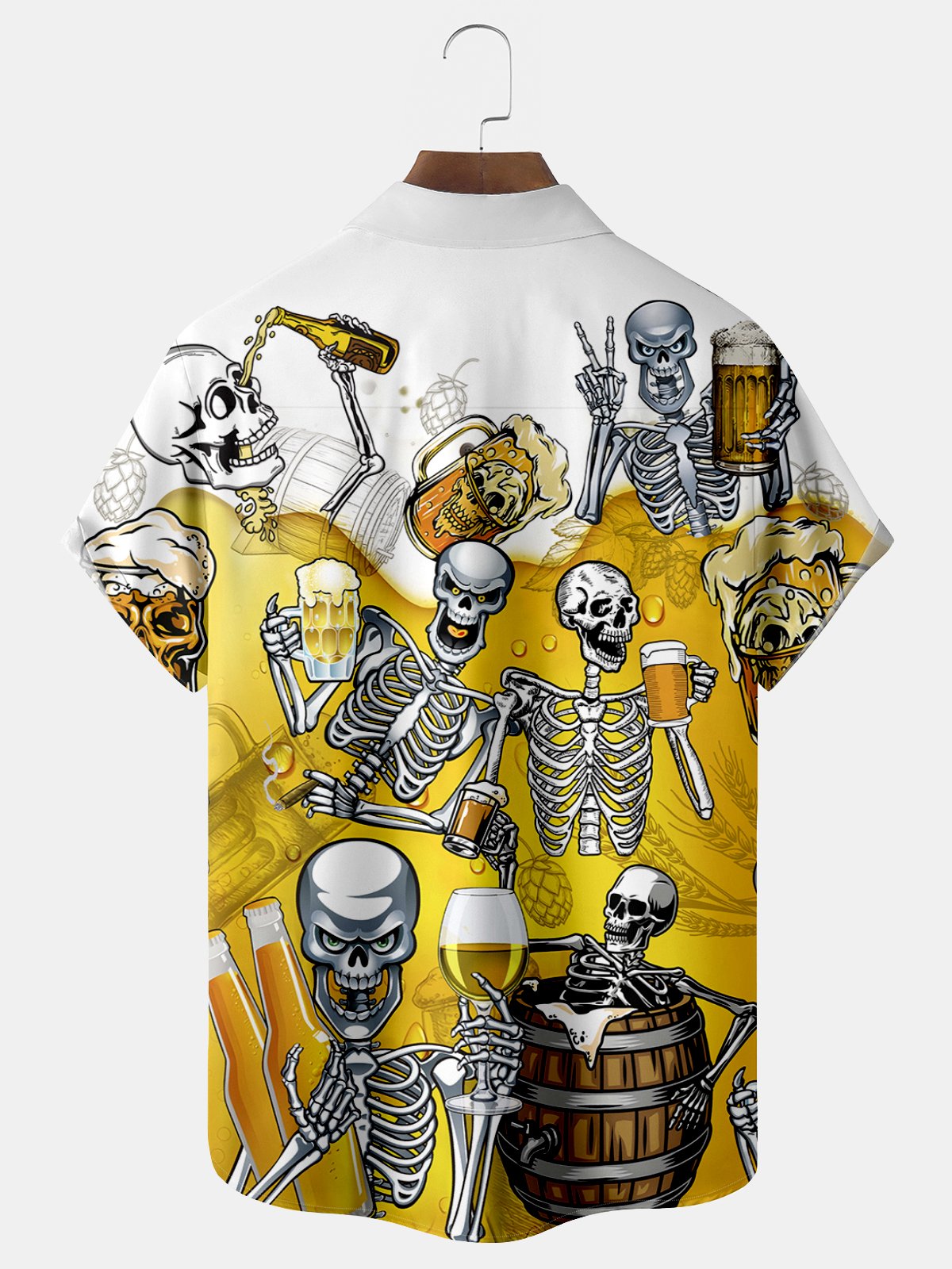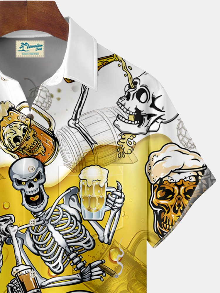 Alohadaddy Halloween Skull Beer Party Print Men's Hawaiian Oversized Shirt with Pockets