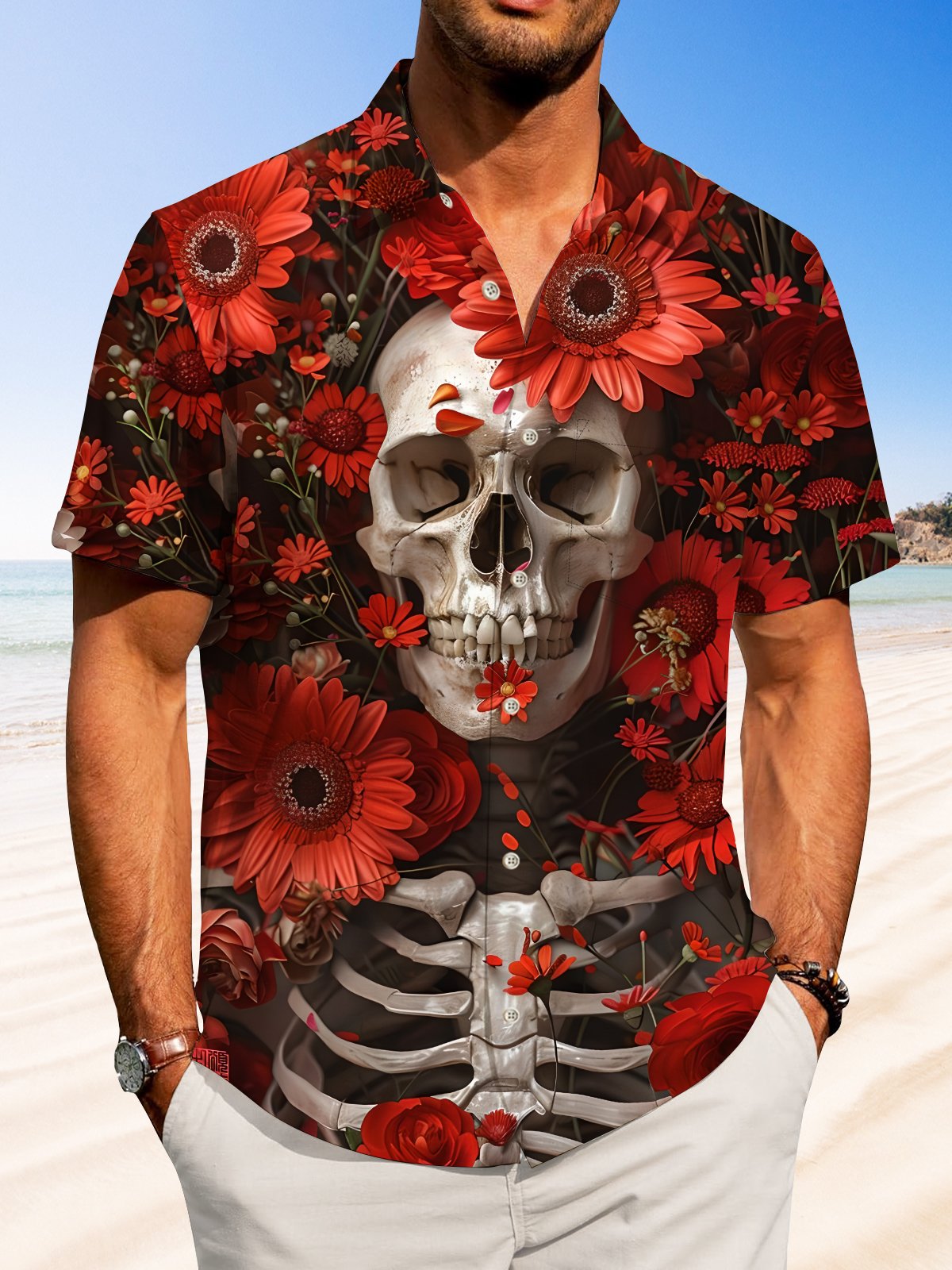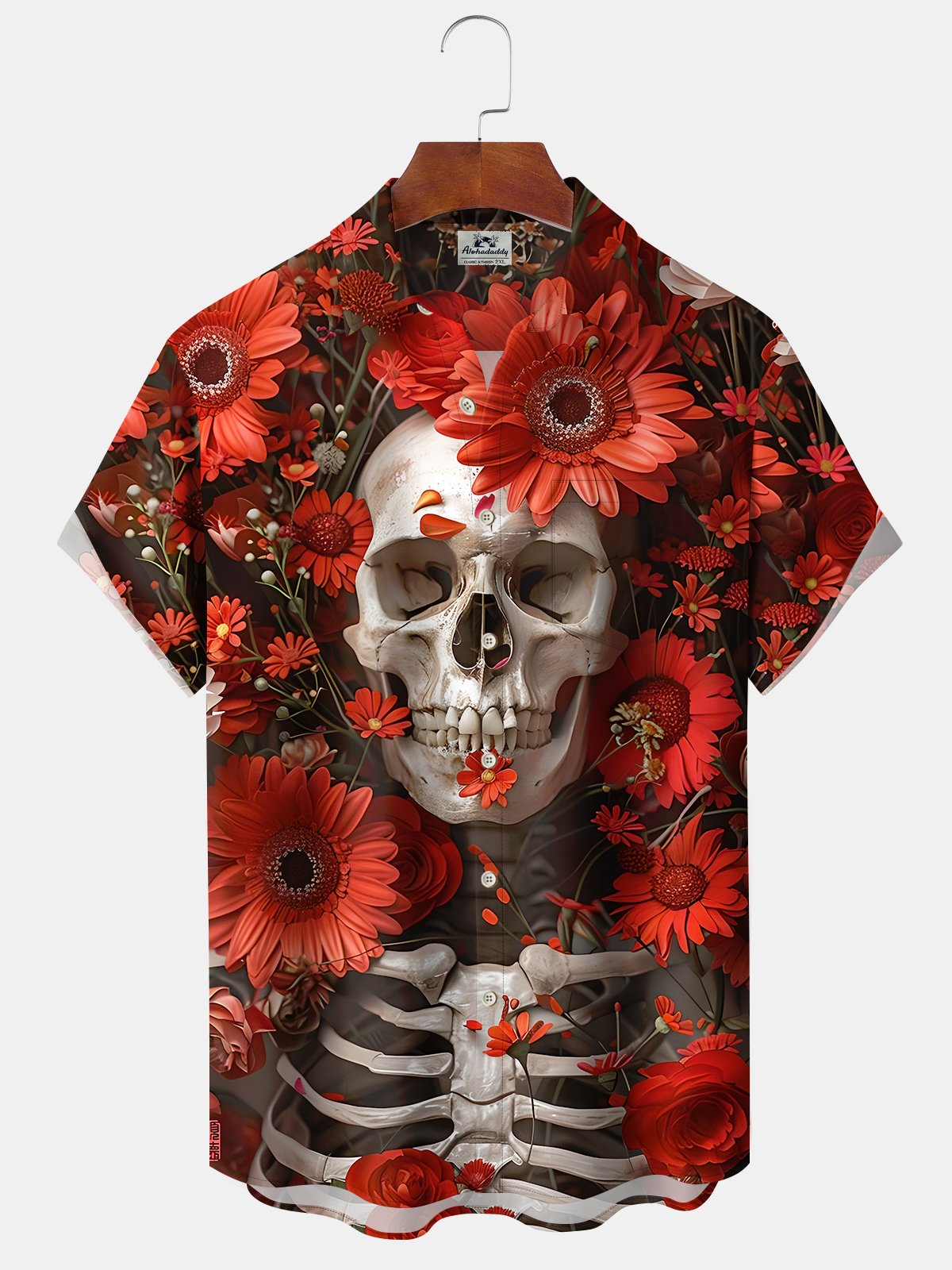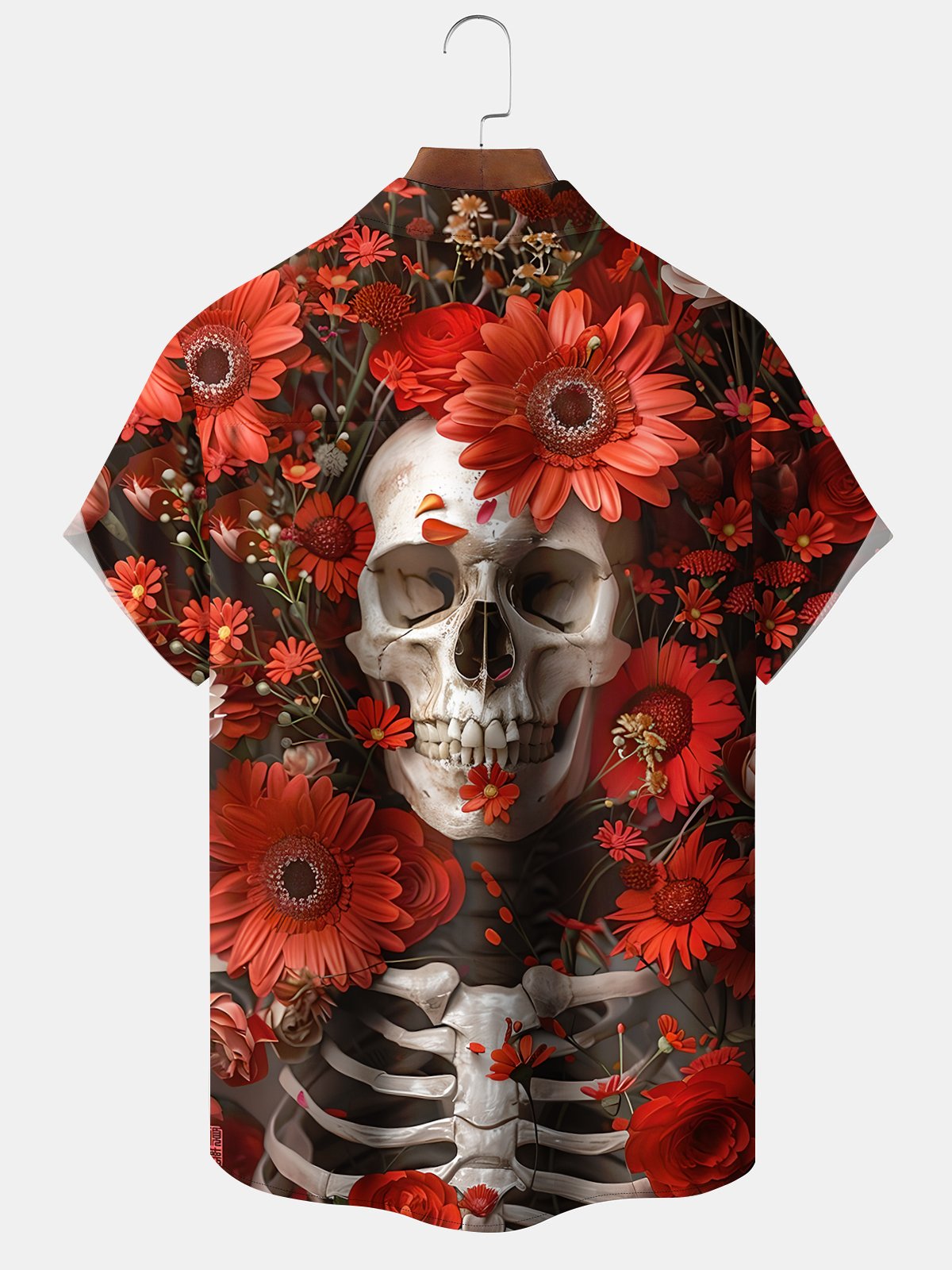 Alohadaddy Hawaiian Casual Flowers Skull Button Cardigan Pockets Stretch Large Size Long Short Sleeve Shirt