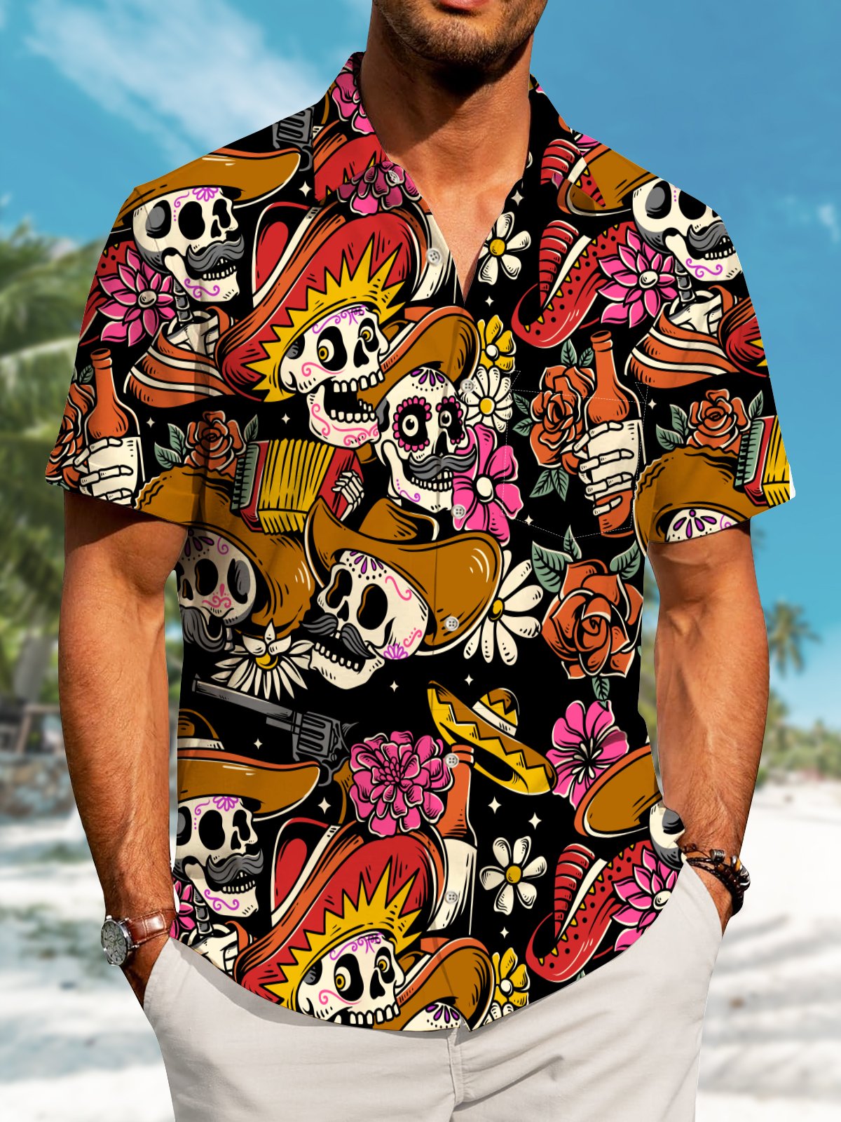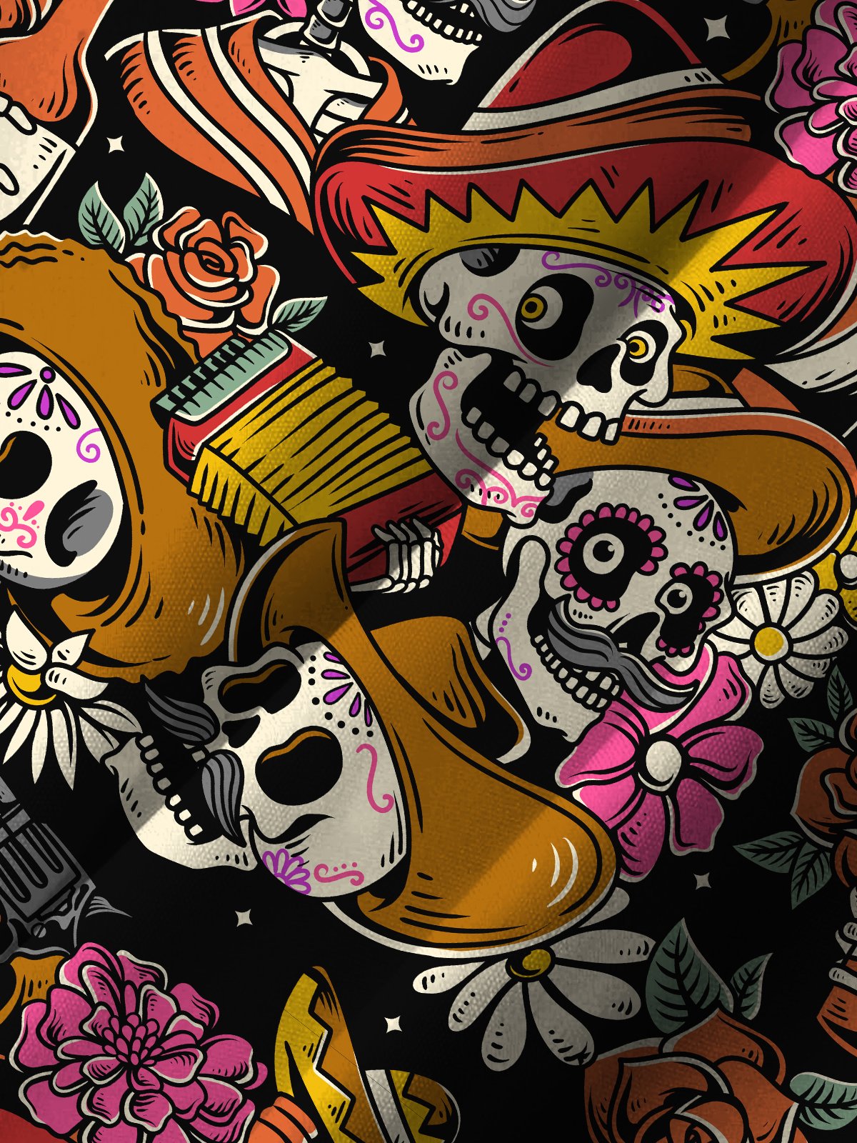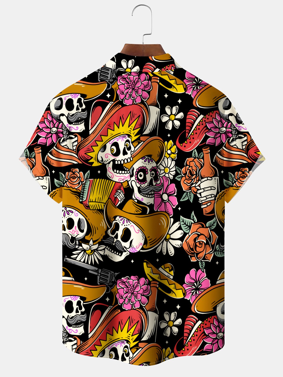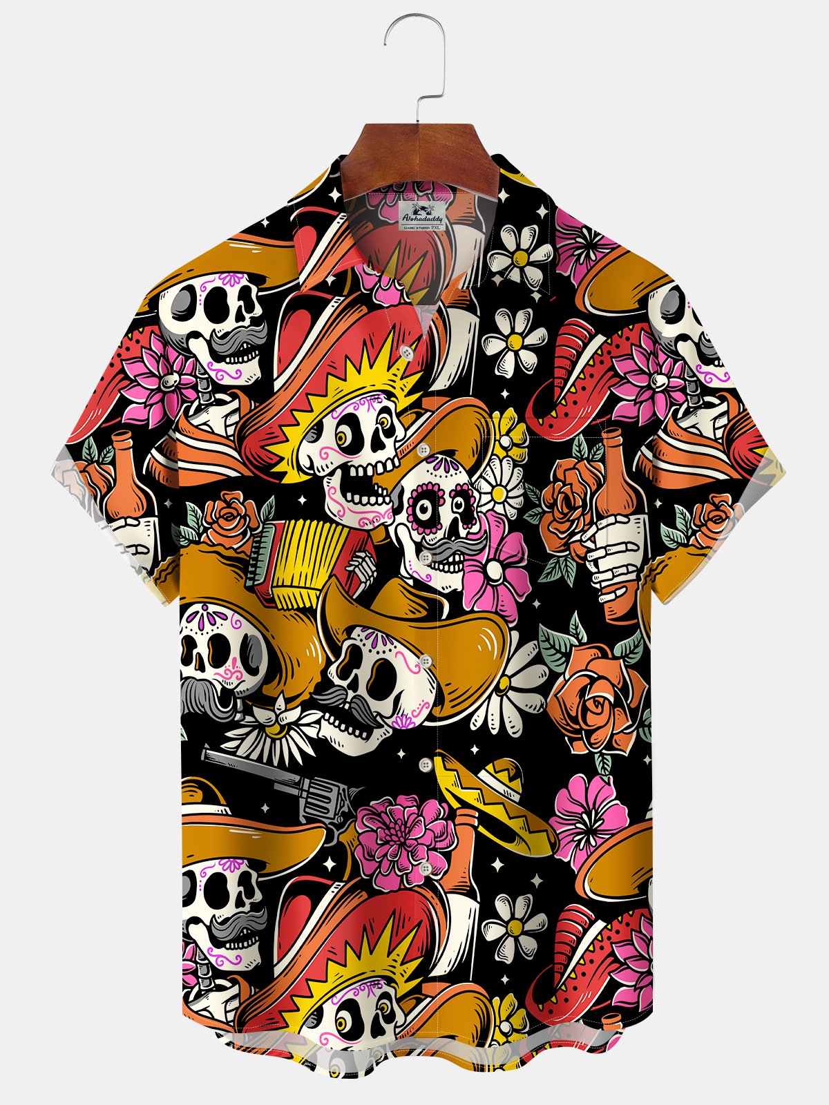 Alohadaddy Holiday Collection Day Of The Dead Skull Art Button Cardigan Pocket Stretch Large Size Long Short Sleeve Shirt