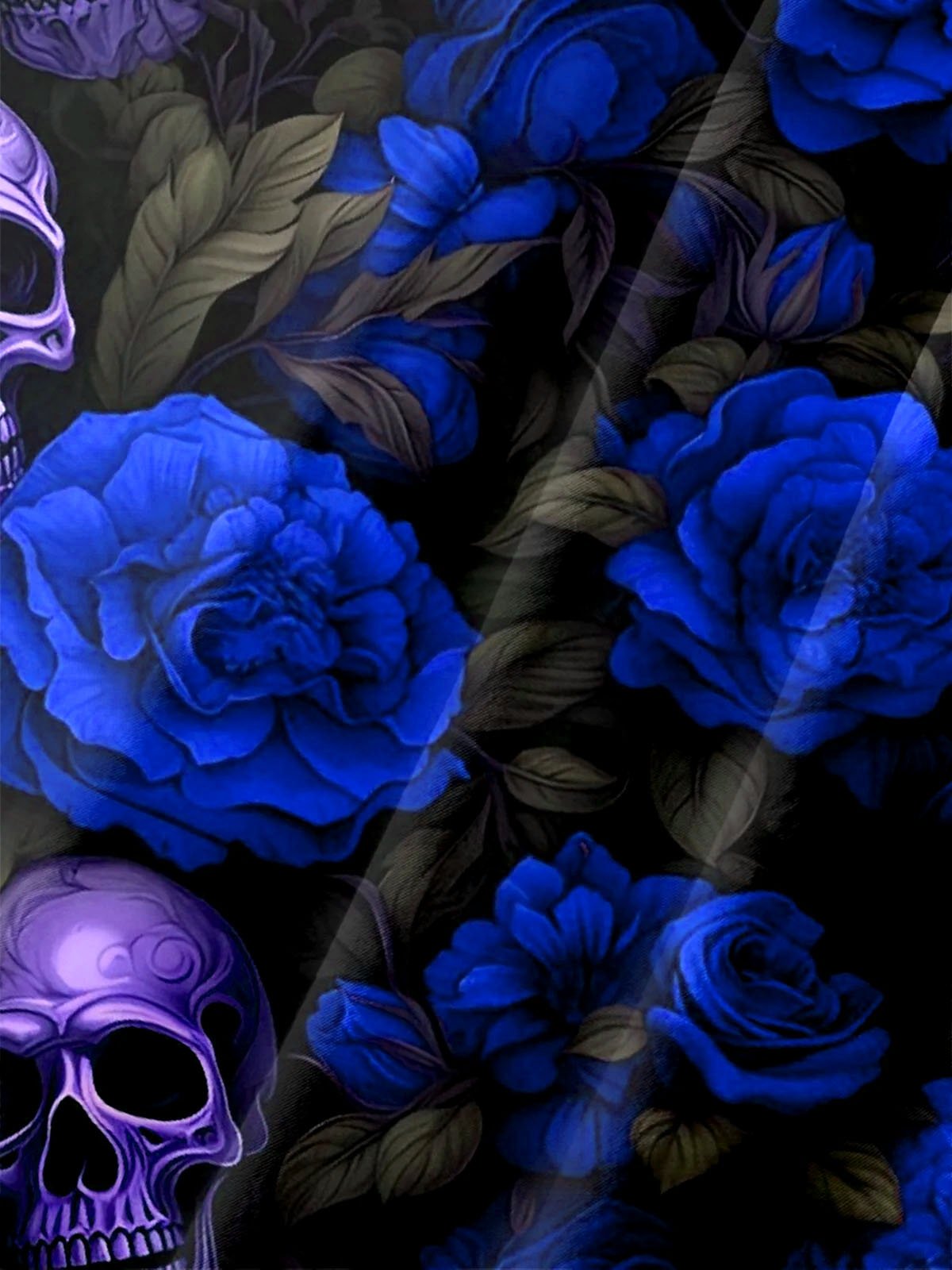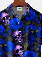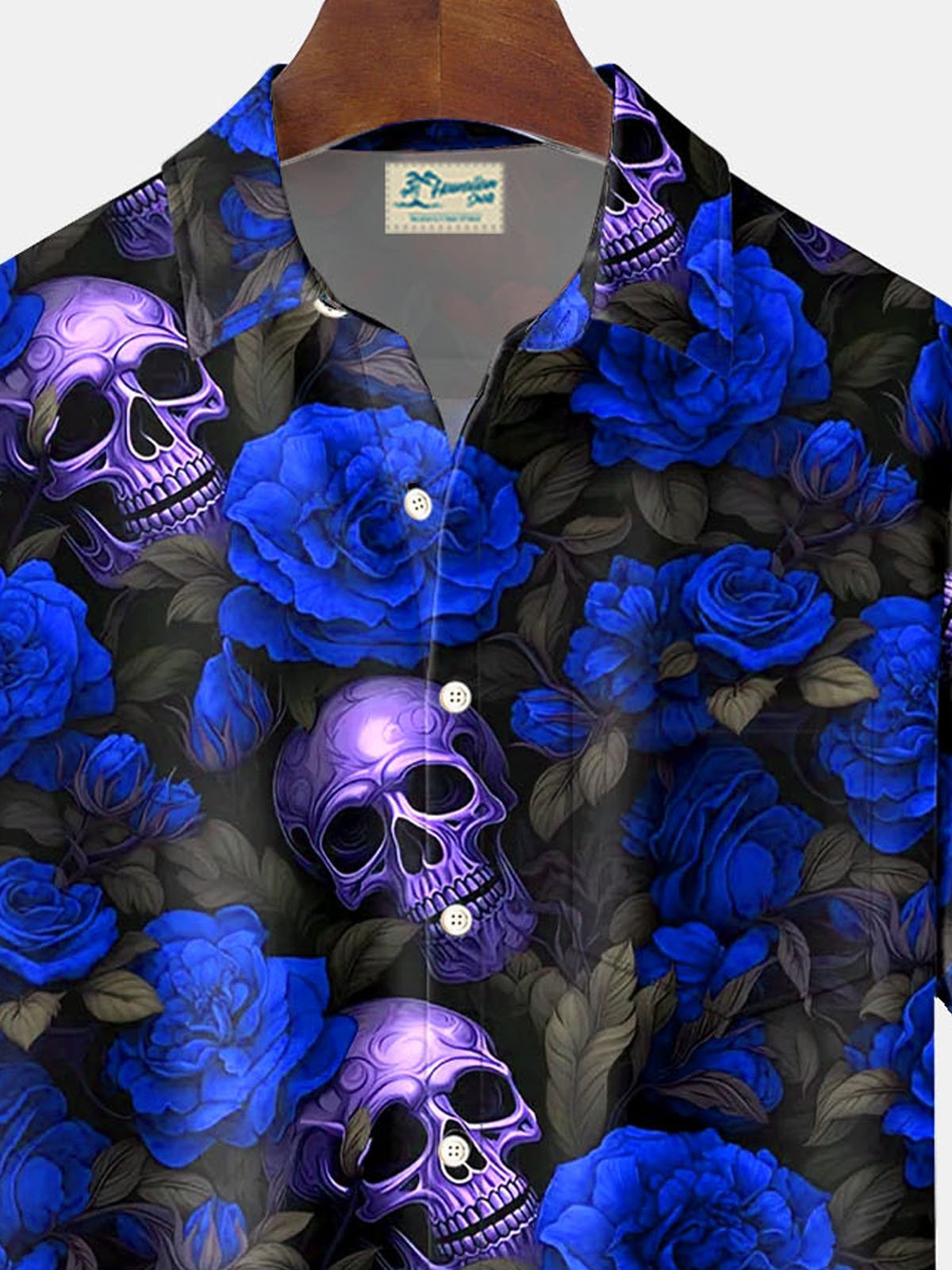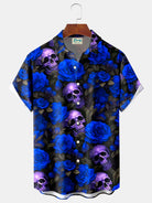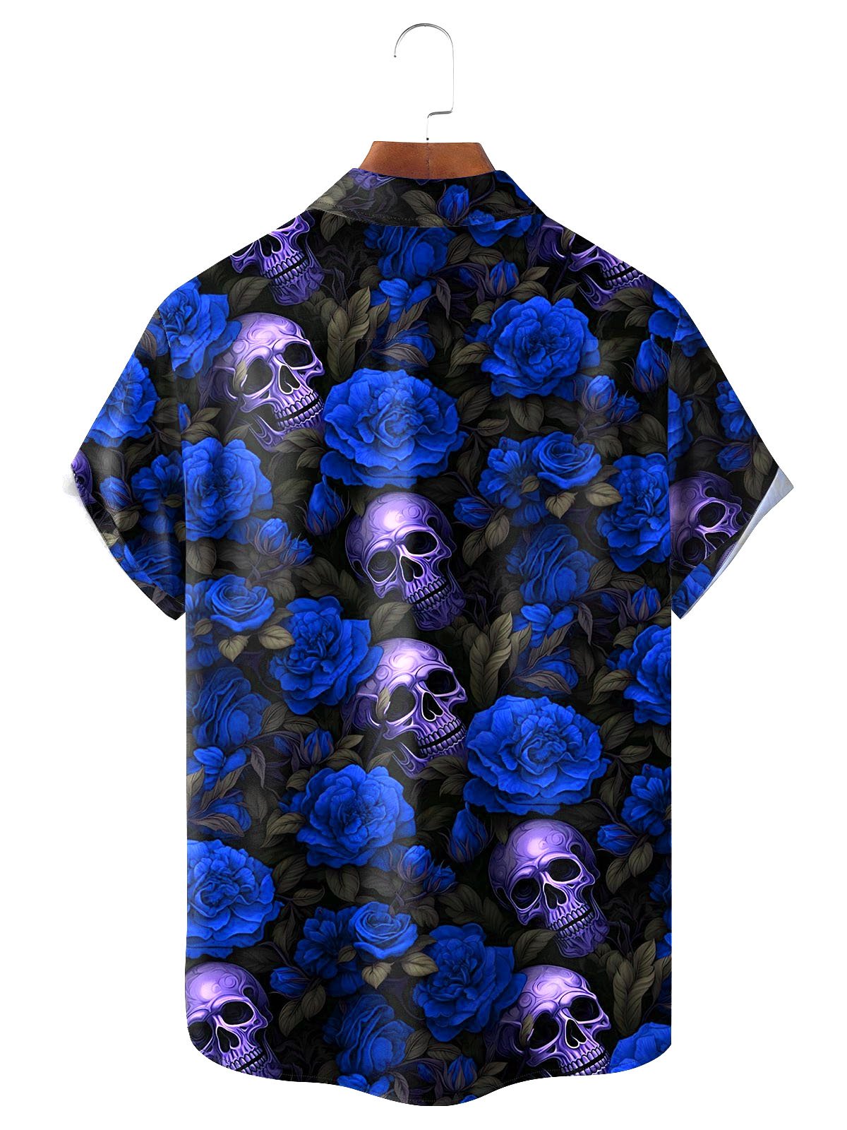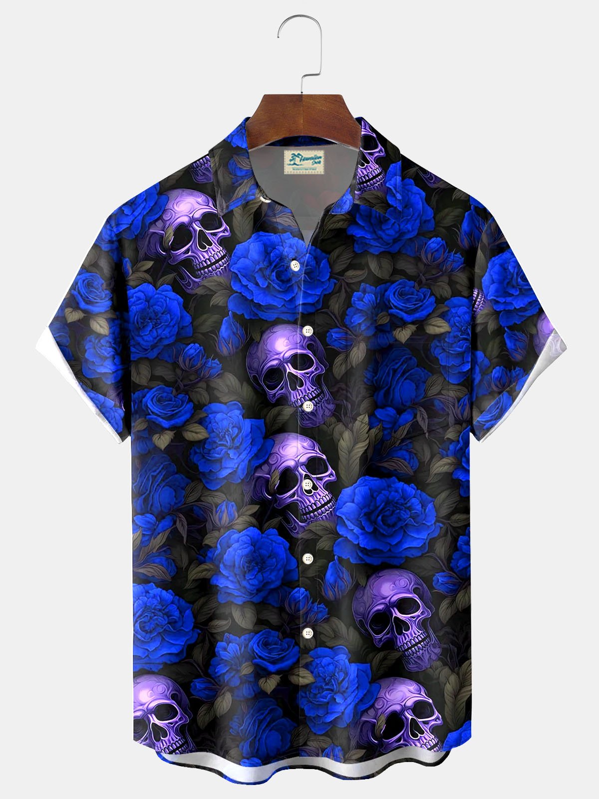Alohadaddy Retro Skull Flower 3D Digital Print Men's Button Pocket Short Sleeve Shirt Big & Tall